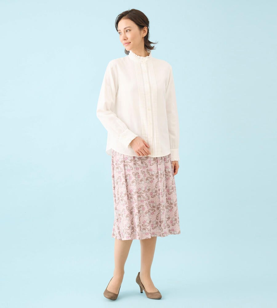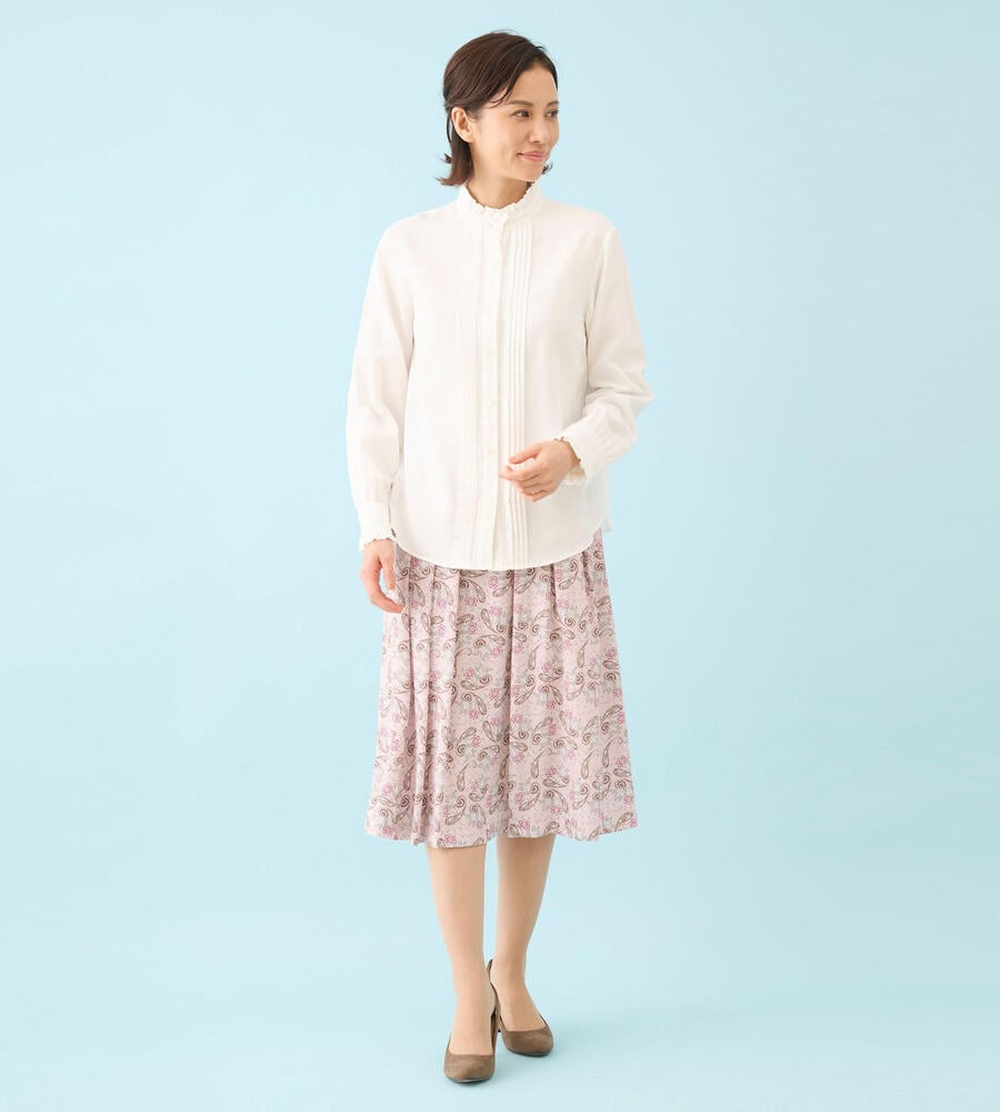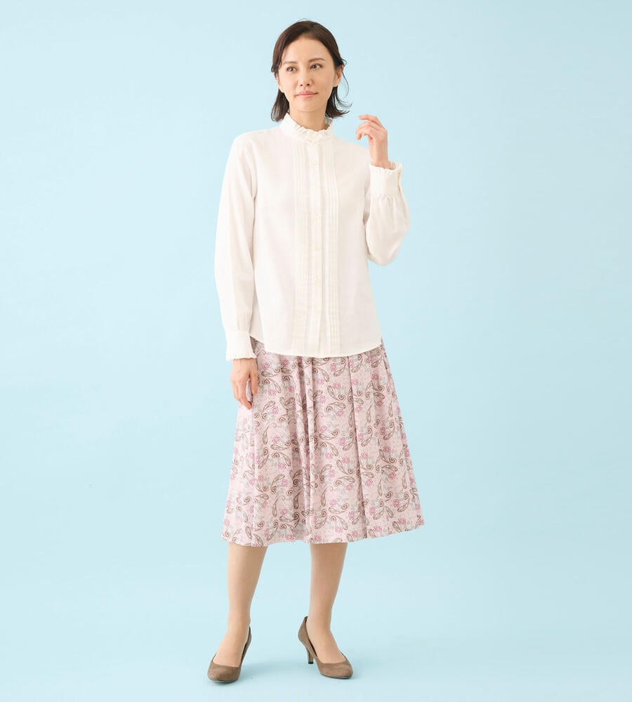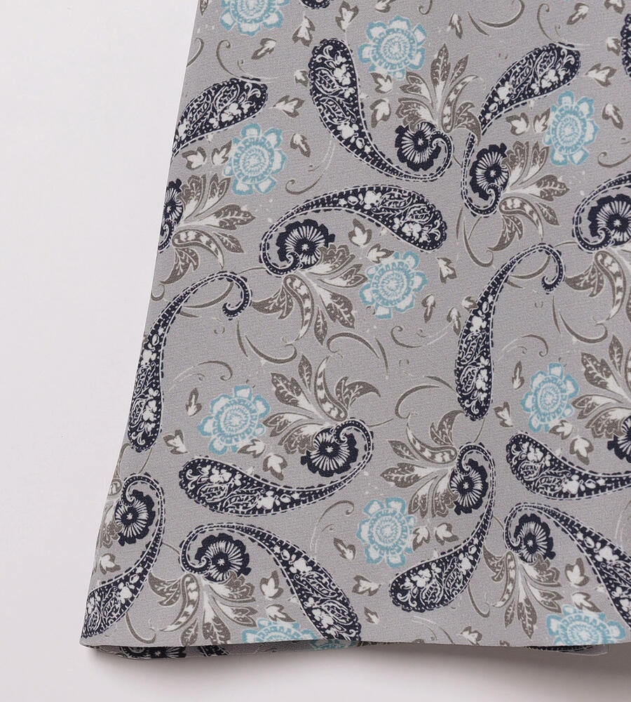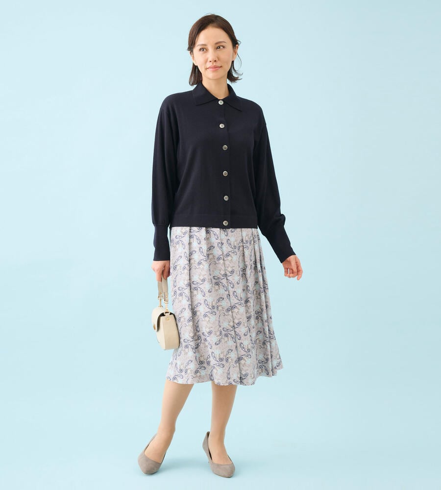 オリエンタルなペイズリープリントを全身に纏ったフレアスカート。まるでフラワーモチーフのようにも見えるプリントが、着こなしをフェミニンに彩ります。膝が隠れる程度の着丈と、ゆったりと広がるフレアシルエットは優美でエレガント。足元にロングブーツなどを合わせると、今年らしいコーディネートが完成します。