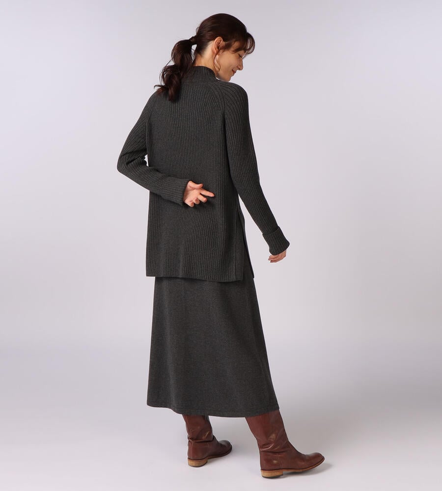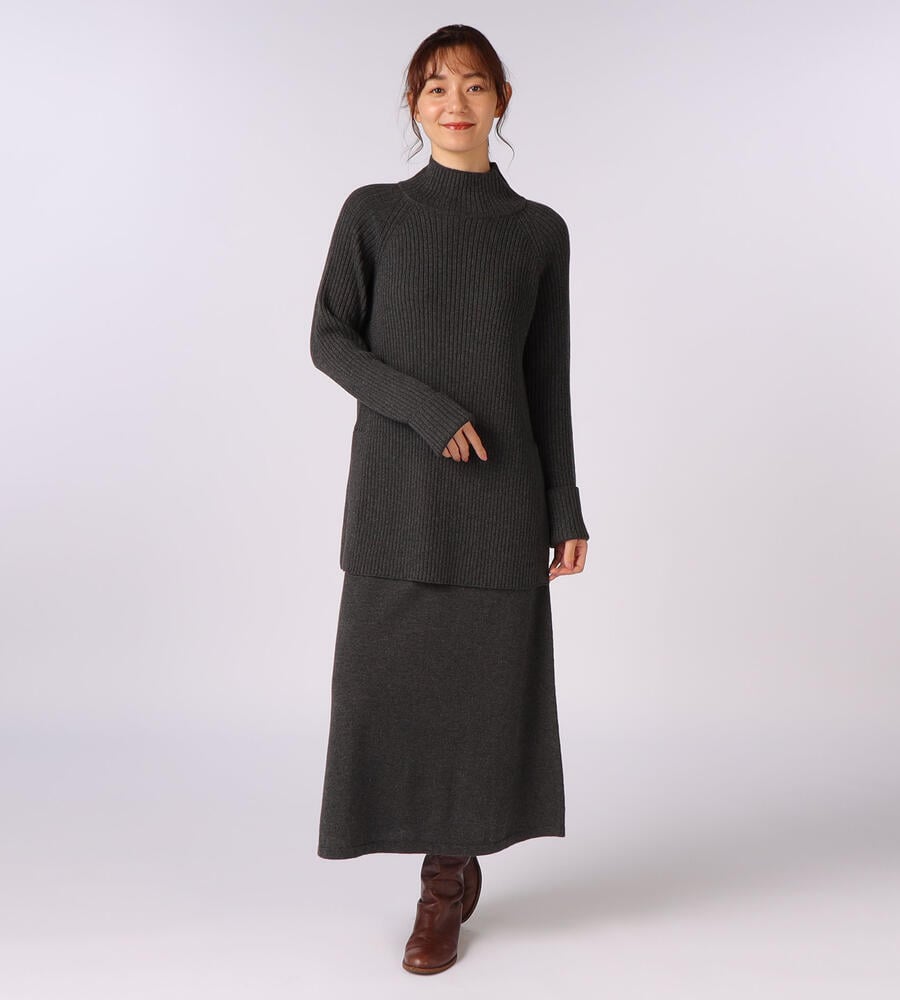ゆったりとした着丈でコンフォートな雰囲気を醸したリブ編みタートルネックニット。ラグランスリーブ切り替え、袖先は折り返しのデザイン。裾サイドには深めのスリットをあしらい、腰まわりにゆとりをプラスしています。シンプルな中にもこだわりを感じる洗練されたデザインに仕上がっています。
