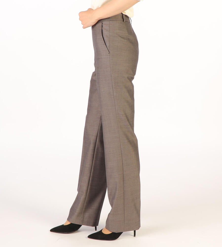 風合いとハリ感のあるウールシャンブレー生地で仕立てた、シックな雰囲気のパンツ。自然で適度な光沢感がエレガントなムードを演出。センタープレス入りで、キレイ目な印象の着こなしに。トレンドレスで着こなせるシンプルなデザインで、お手持ちのトップスと合わせてエレガントなスタイルが実現するアイテムです。