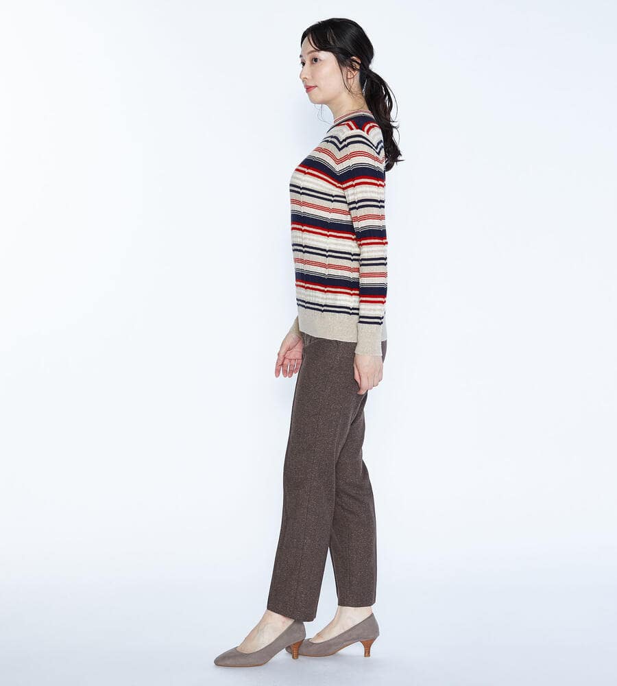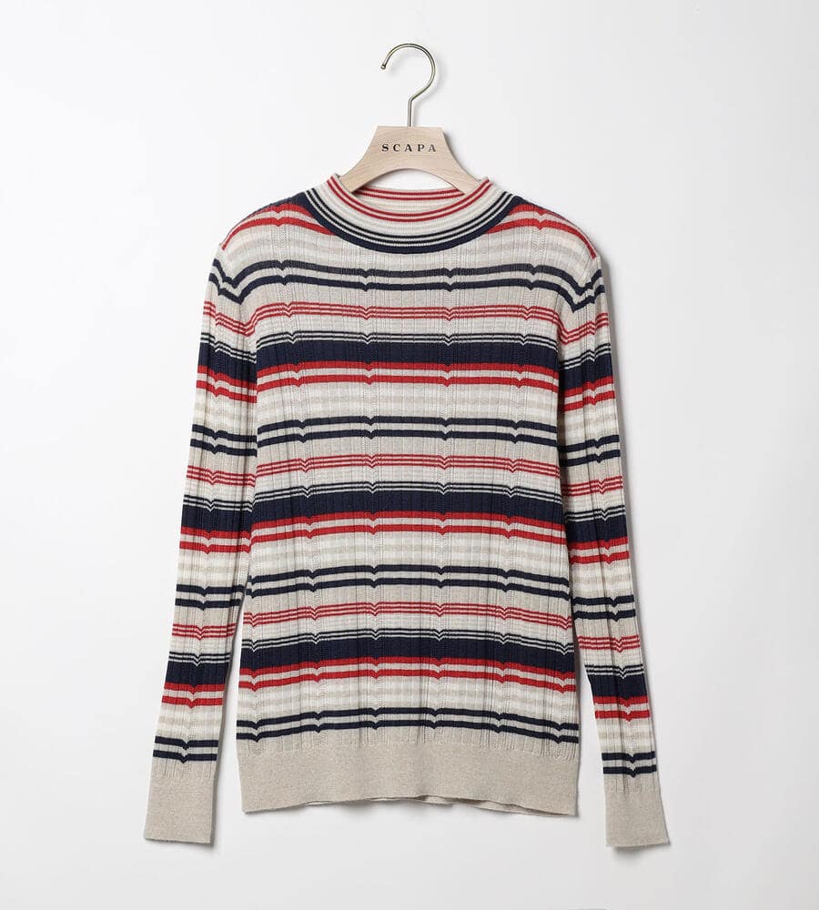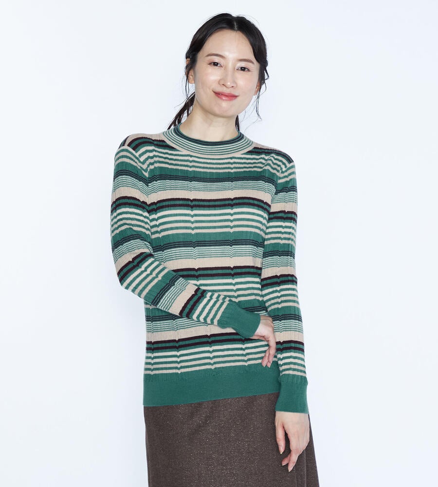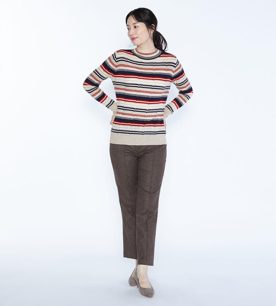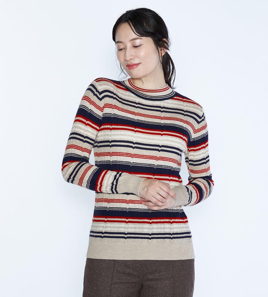 肌触りなめらかでやわらかなカシウール100%の素材で仕立てた長袖ニット。着こなしのアクセントになるグラフィカルなマルチボーダー柄。引き続きトレンドのリブ編みで身体に適度にフィットし、すっきりとしたシルエットで着こなせます。華やかかつスタイリッシュなコーディネートが実現するアイテムです。