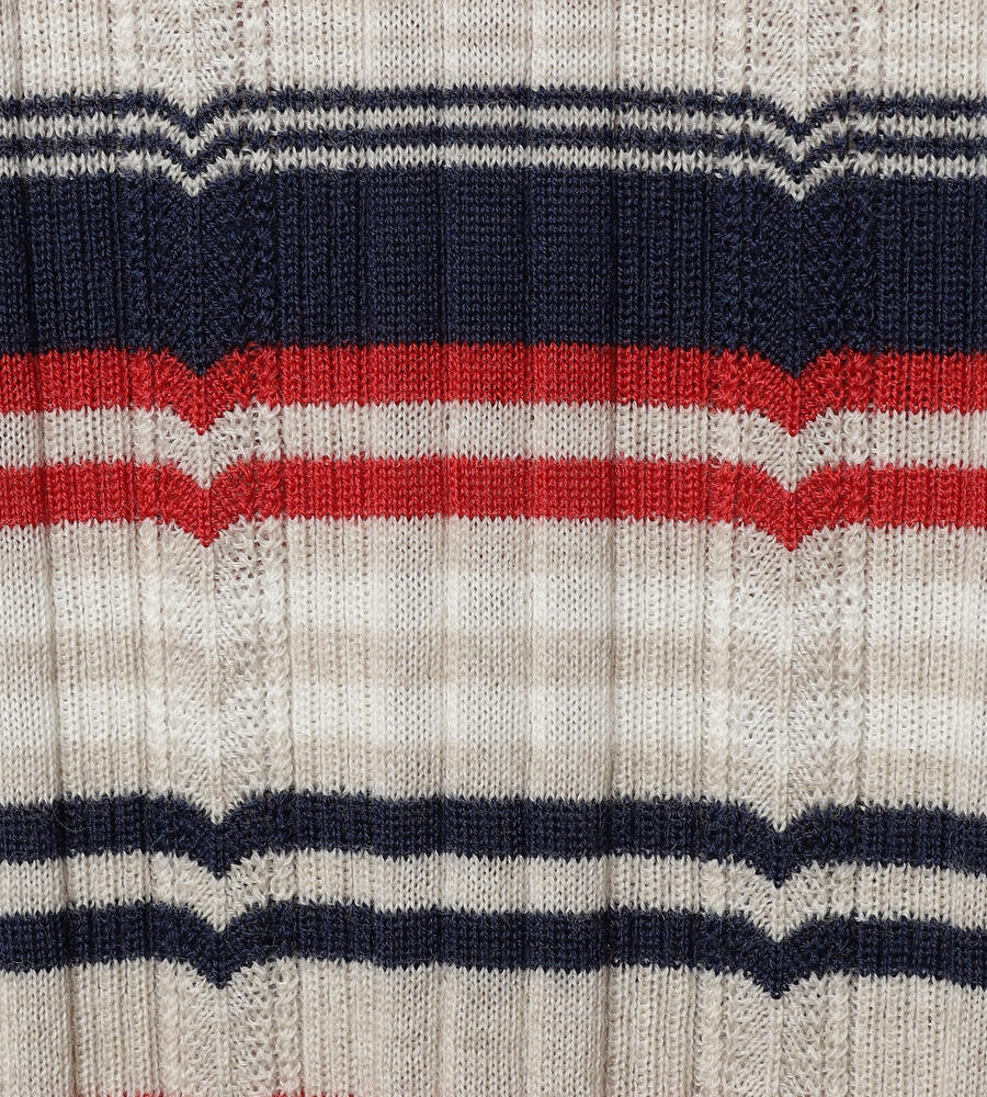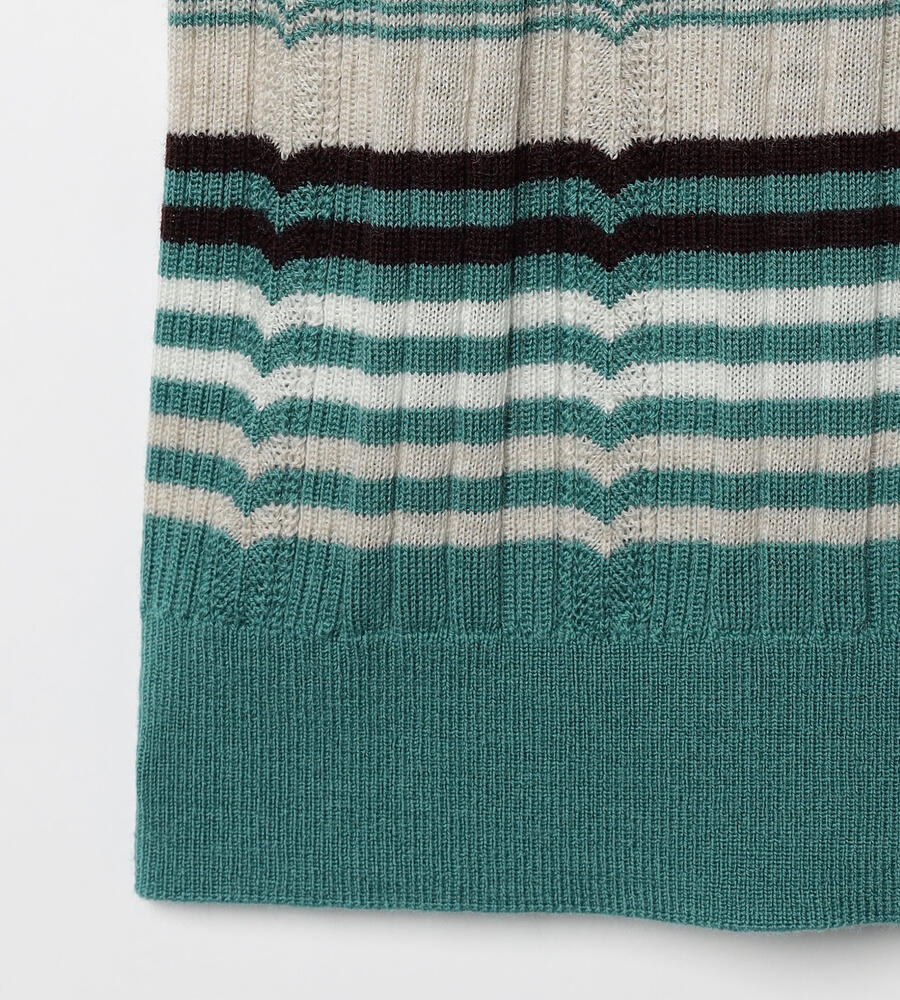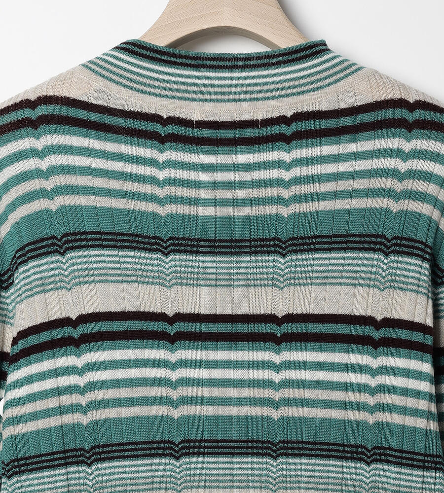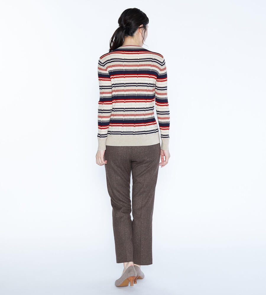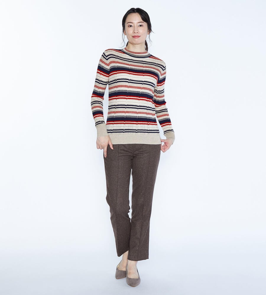 肌触りなめらかでやわらかなカシウール100%の素材で仕立てた長袖ニット。着こなしのアクセントになるグラフィカルなマルチボーダー柄。引き続きトレンドのリブ編みで身体に適度にフィットし、すっきりとしたシルエットで着こなせます。華やかかつスタイリッシュなコーディネートが実現するアイテムです。
