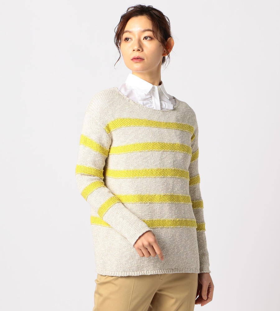 マリンなムード漂うボーダー柄のクルーネックニットプルオーバー。コットンと麻をブレンドした素材でざっくりと編み上げ、スプリングシーズンにふさわしい軽やかな表情に仕上げています。ゆったりとしたシルエットが心地良く、インにシャツを合わせたレイヤードスタイルもおすすめです。