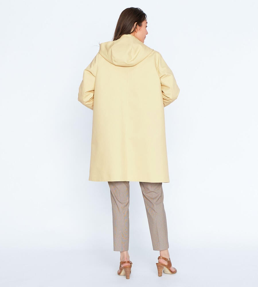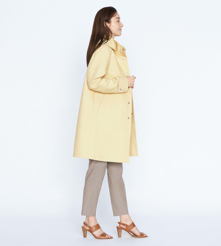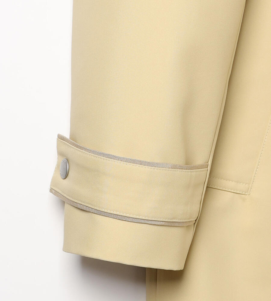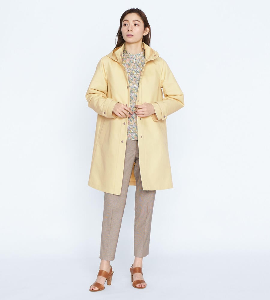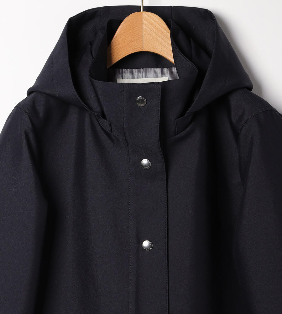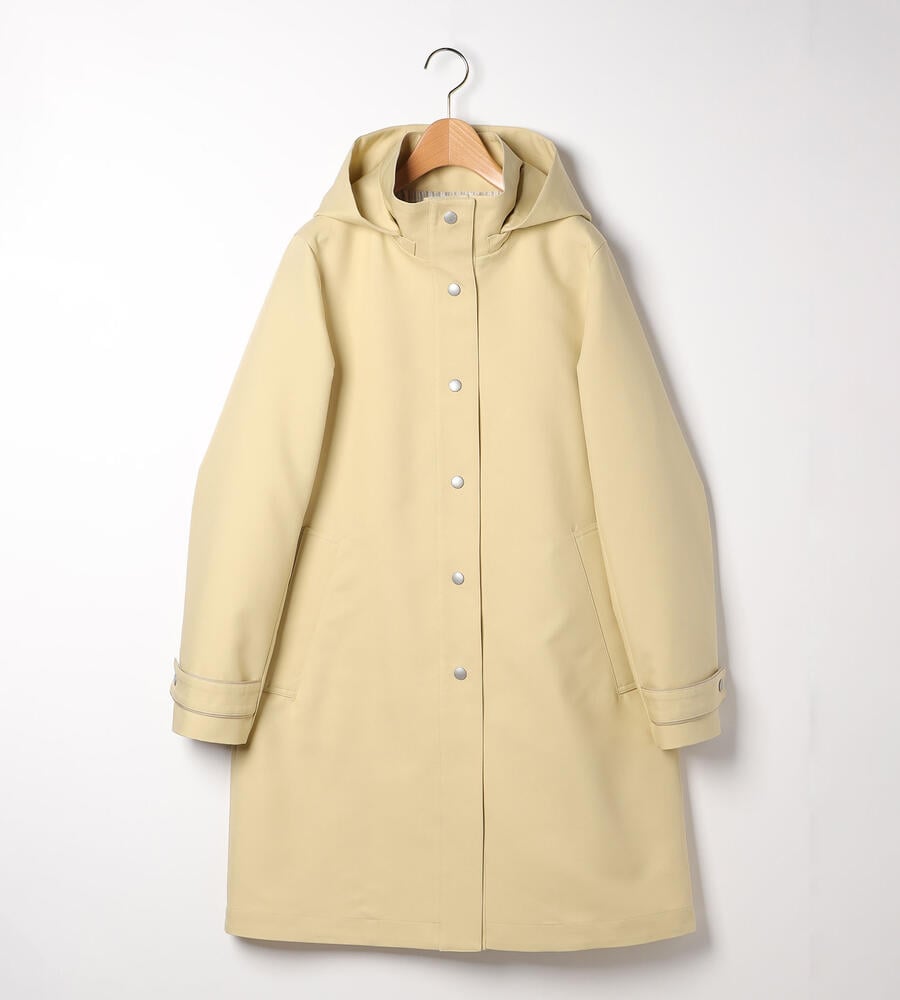 シンプルで洗練されたデザインがベーシックに活躍するコットンダブルコート。左右のポケットや袖先のベルトにあしらったパイピングディテール、スナップボタンにさりげなく添えた上品なブランドロゴがポイントに。フードはお好みでオン、オフのアレンジが可能になっています。