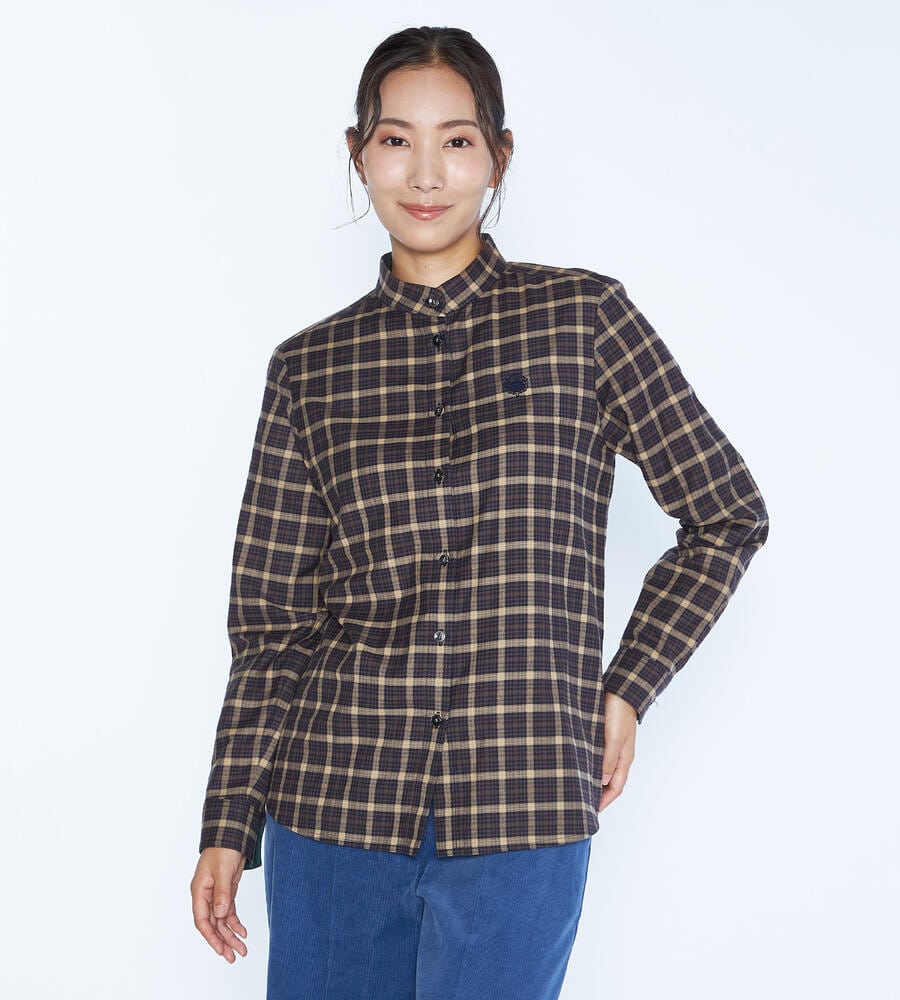 優しい風合いを持つコットンのネル風素材を用いたブラウス。クラシカルなチェック柄を載せて、素朴な温もりがあふれる空気感に仕上げています。幅の広いバンドカラーを採用することで、カジュアルながらもきれいめな印象に。ロングスカートなどを合わせると、より今年らしい着こなしを楽しめます。