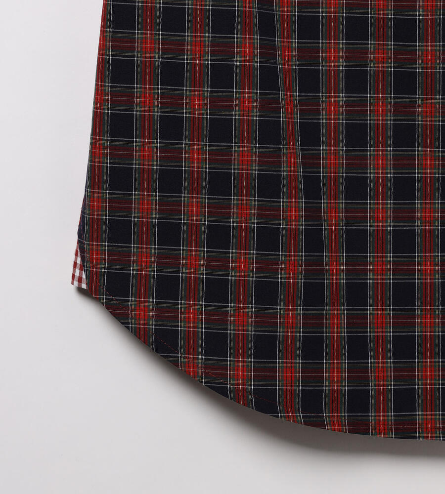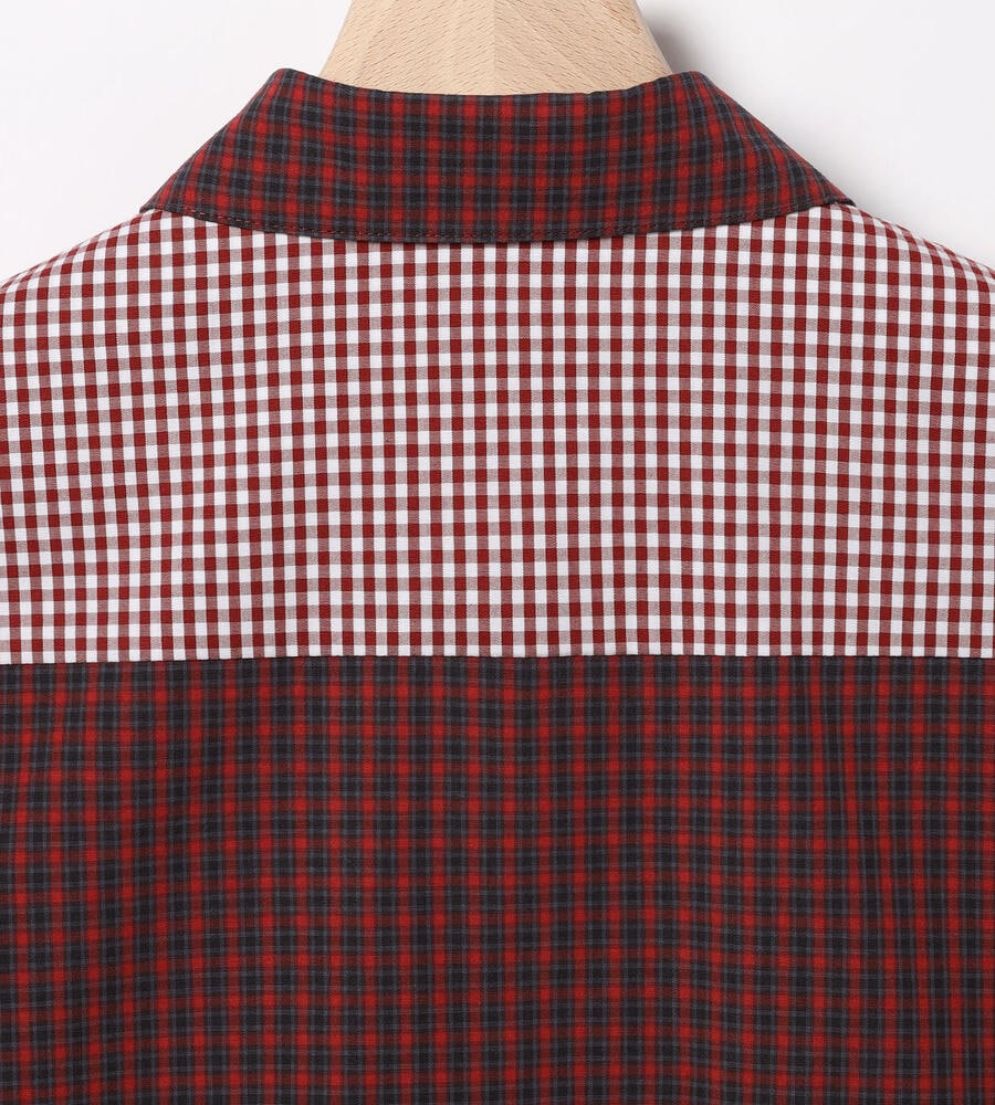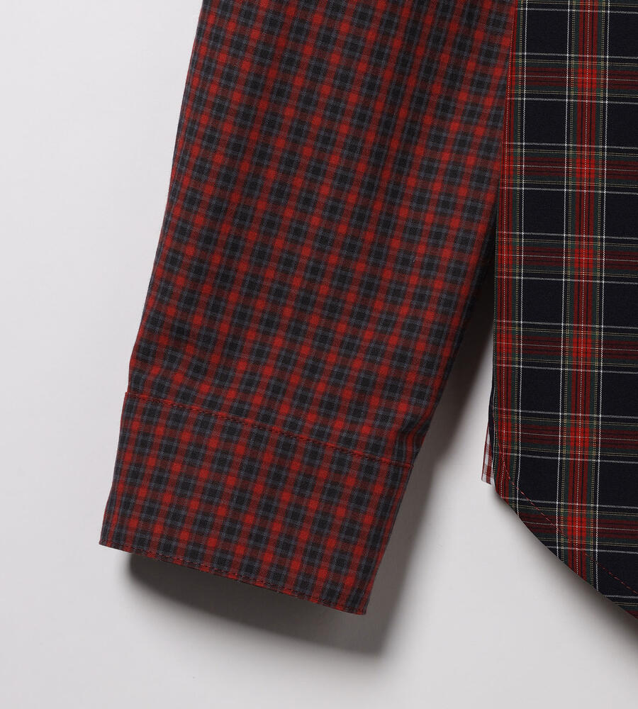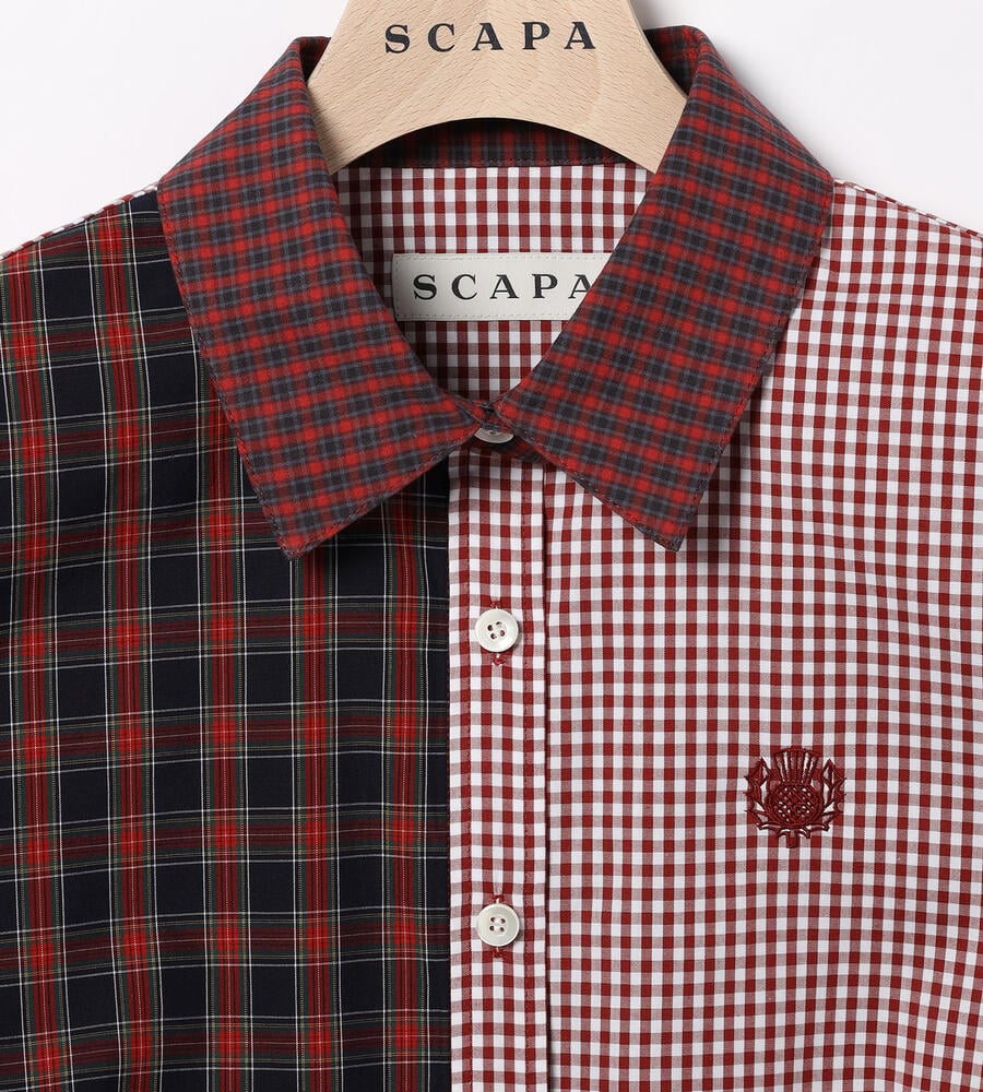 軽やかなコットン素材で、ロングシーズン着回しのきく長袖シャツ。さまざまな種類のチェック柄を組み合わせた、クレイジーパターンのパッチワークデザインです。前身頃のダーツで女性らしい自然なシルエットをメイクし、プラケットフロントで立体感をプラス。左胸には、トラッドなクレスト刺繍が施されています。爽やかなホワイトパンツや、紺ブレザーとのコンビがおすすめです。