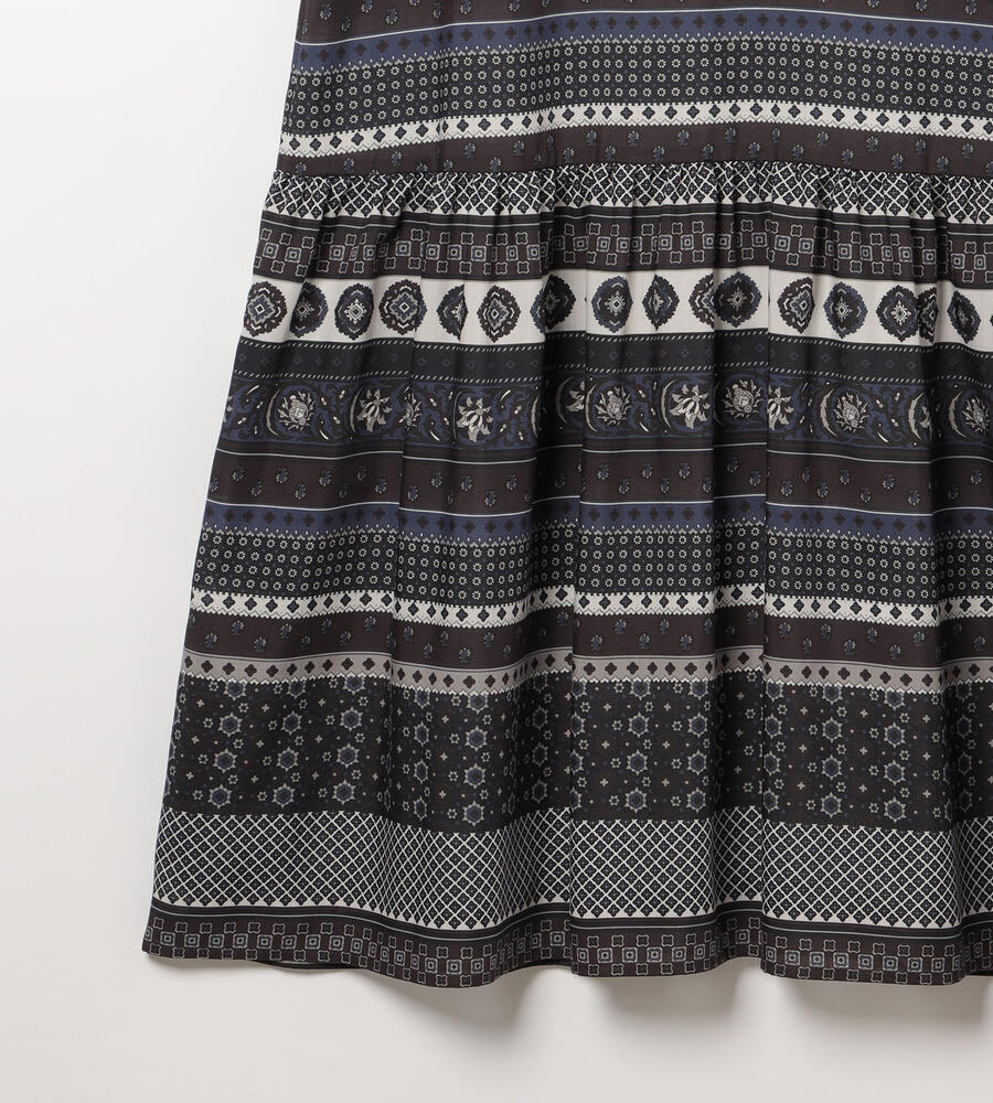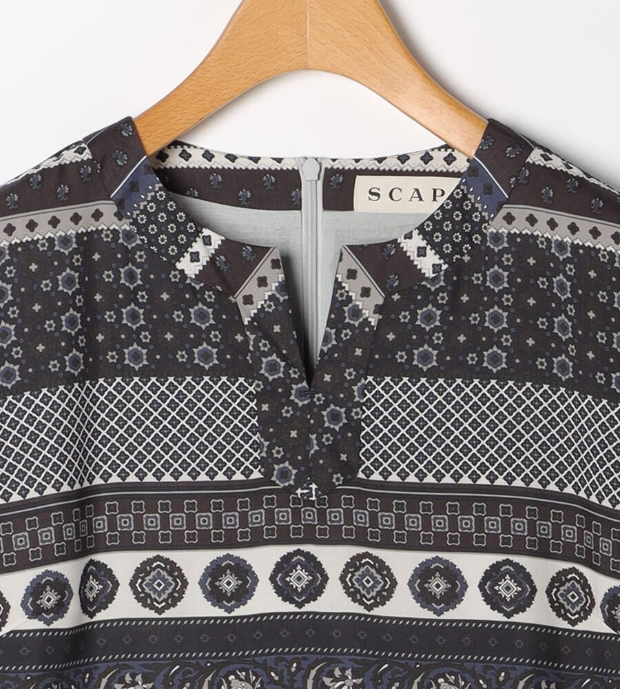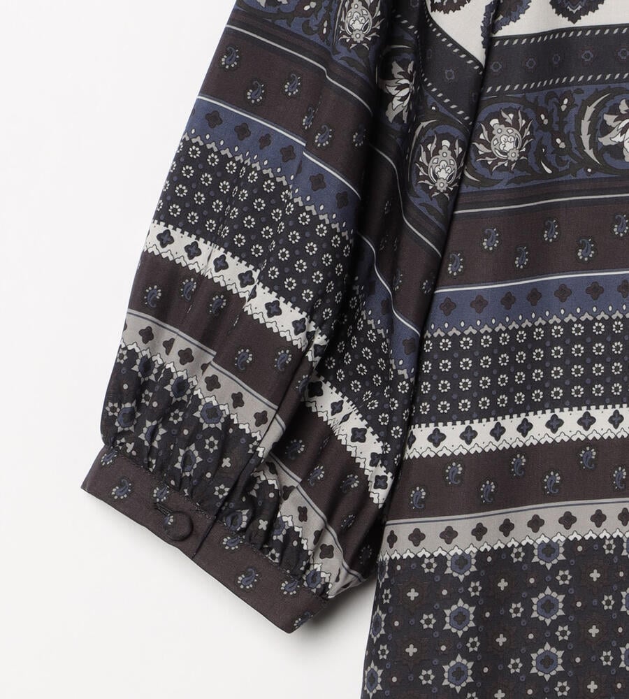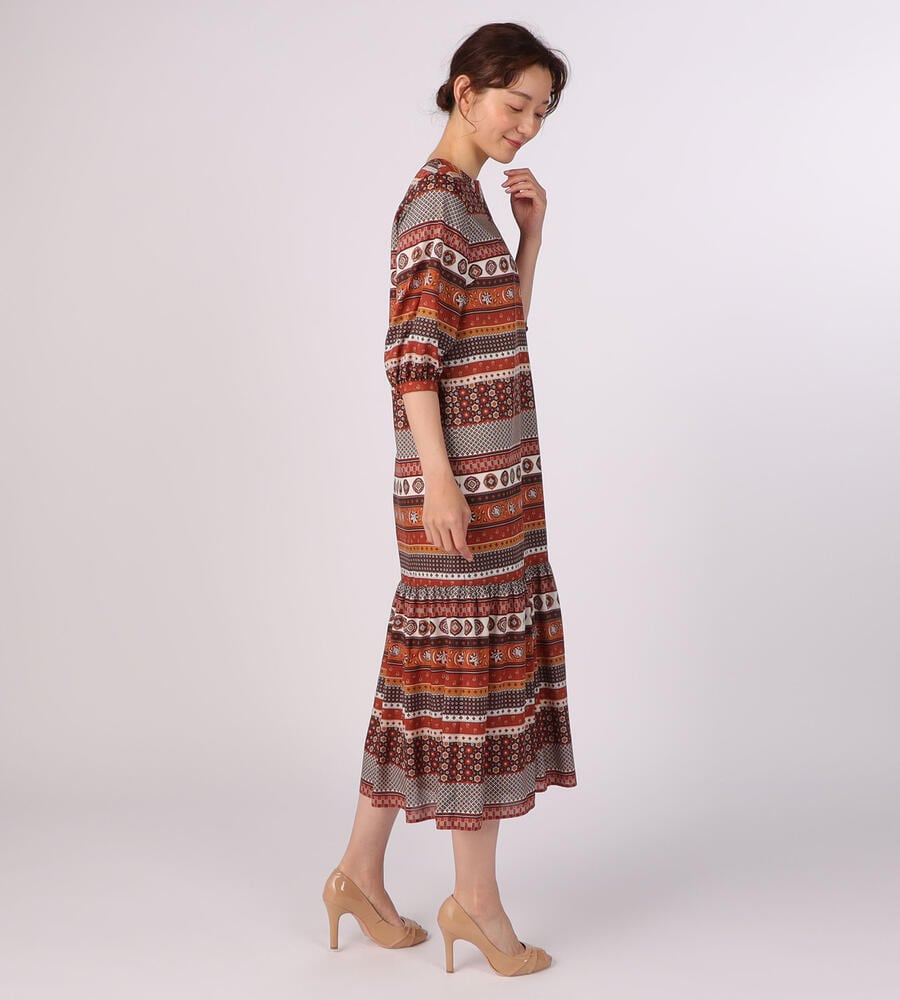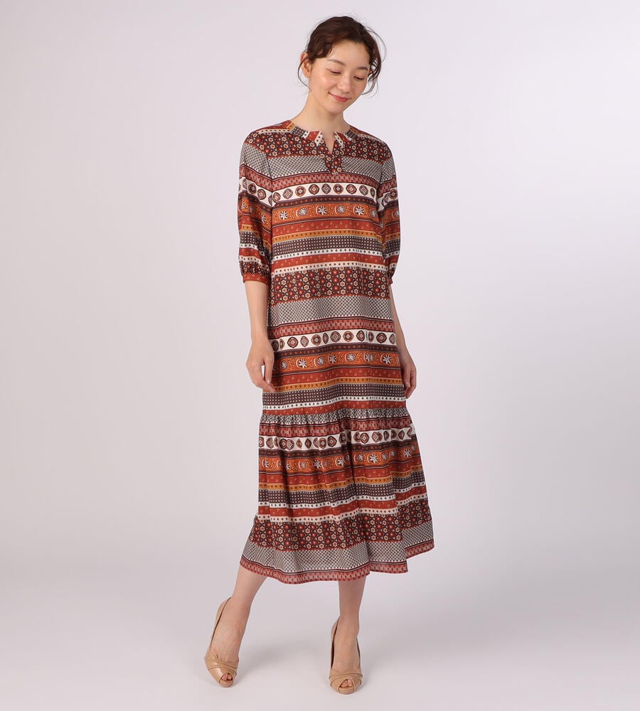 個性的な小紋柄をボーダーに並べた、存在感たっぷりの被りワンピース。女性らしさたっぷりの長め丈は、動くたびに花びらのように揺れ動くシルエットが魅力です。ボリュームを感じる裾広がりのラインとすっきりとしたネックラインで、バランスの取れた1枚に仕上がりました。