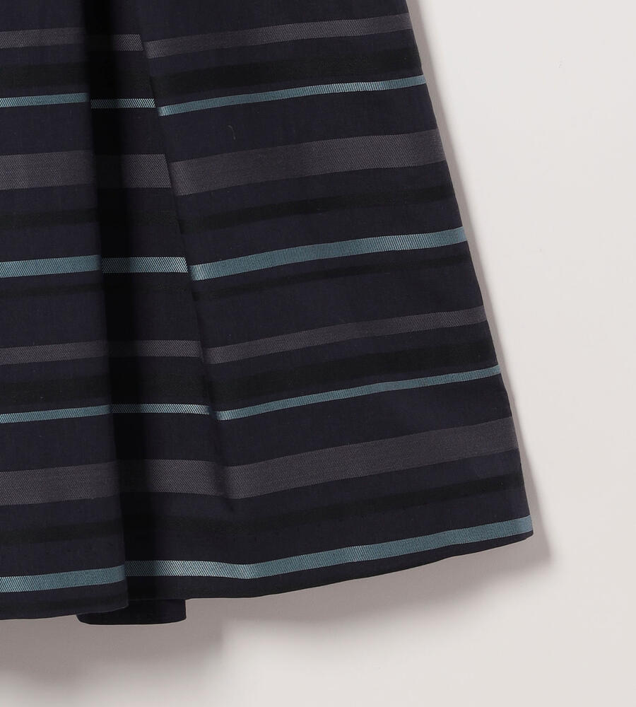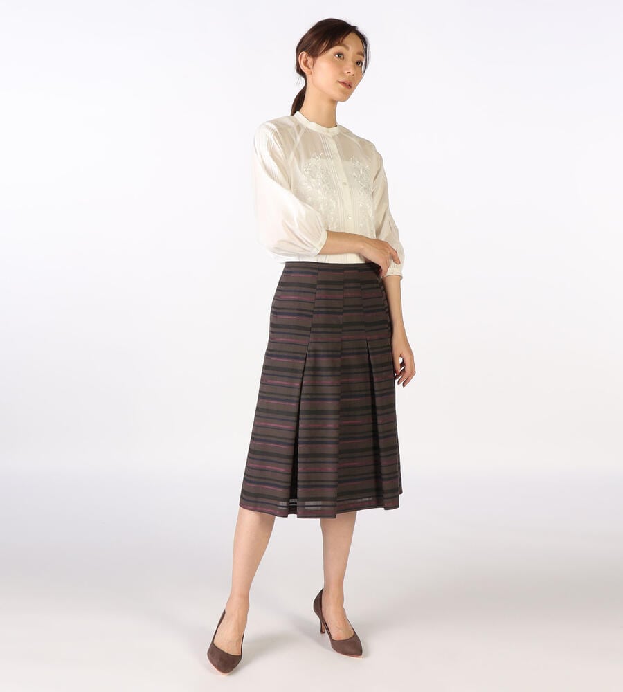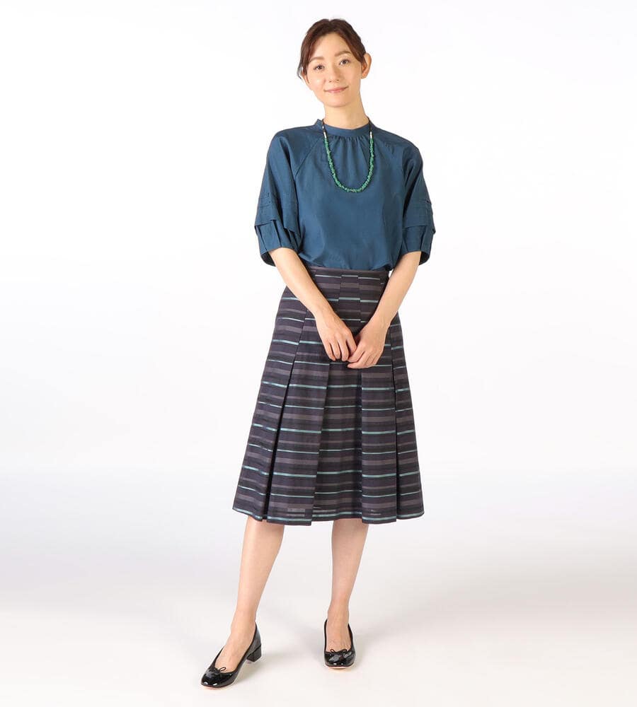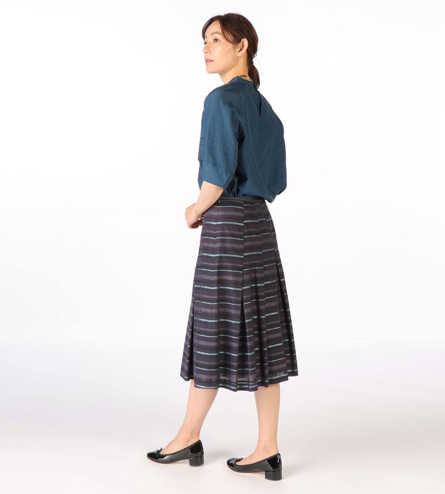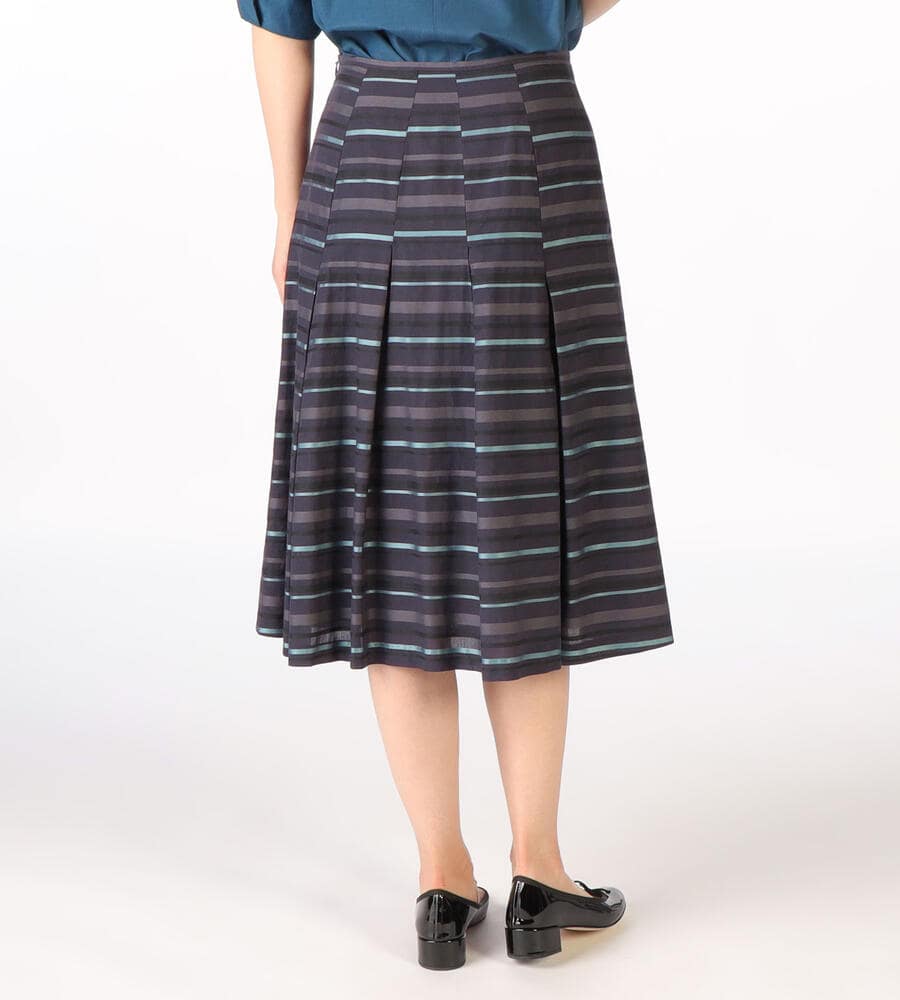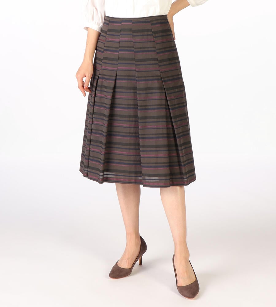マルチボーダーの爽やかなタックスカートです。シアーな素材を使うことで、春夏らしい軽やかさを演出しています。膝が隠れる安心の着丈は、大人の女性にぴったり。きれいめジャケットやシャツに合わせて、お仕事やお出かけ着に幅広く活躍します。足もとはヒール合わせが好バランスです。