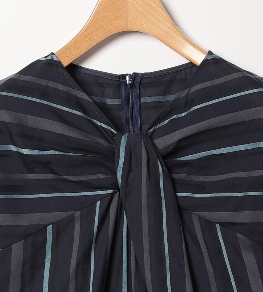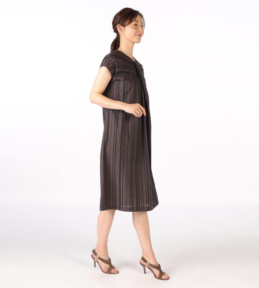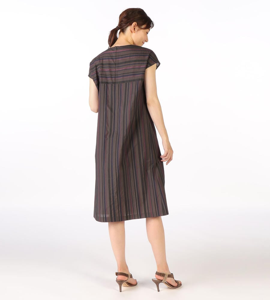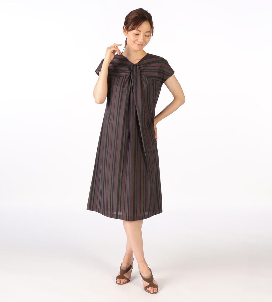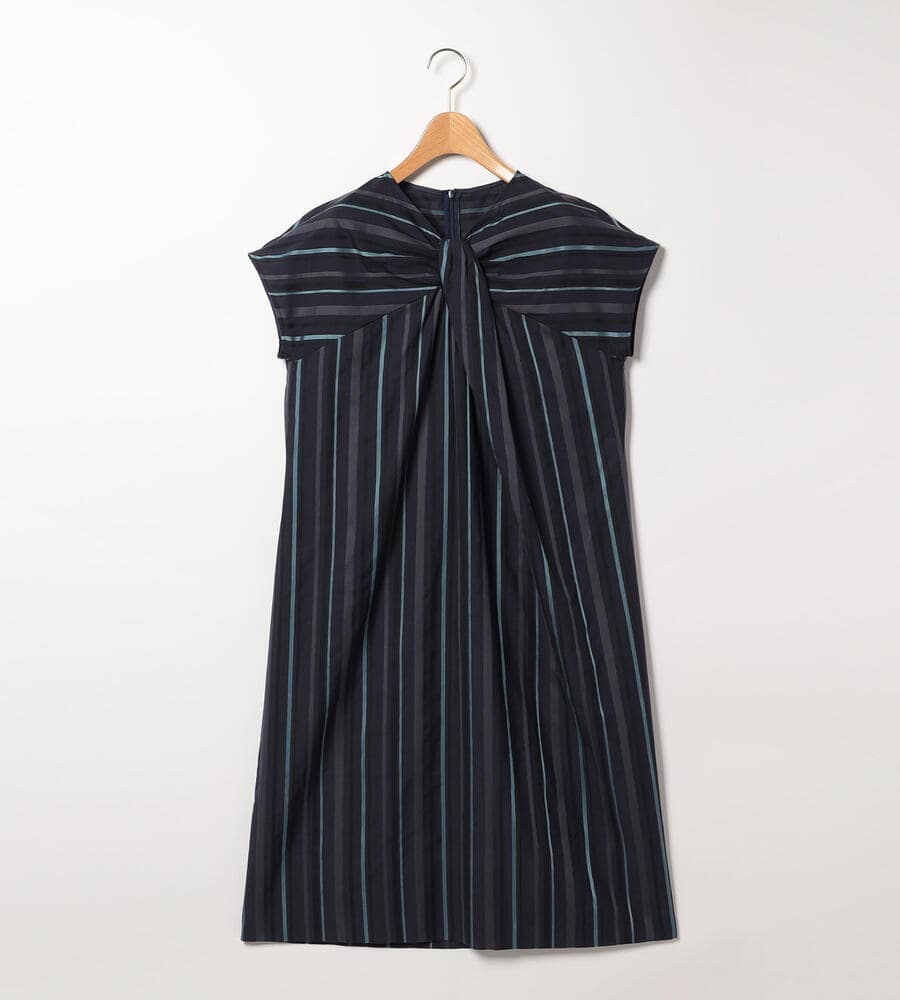 リボンのようなツイストディテールが目を惹く、フレンチスリーブワンピースです。シアーなマルチボーダーの生地を使用し、夏に向けてぴったりの涼やかなアイテムに仕上げました。身頃は締め付けがなく、ゆったりとしたストレスフリーな着心地です。手持ちのベルトでウエストマークをしてもOK。レギンスやパンツに重ねたレイヤードも楽しめます。