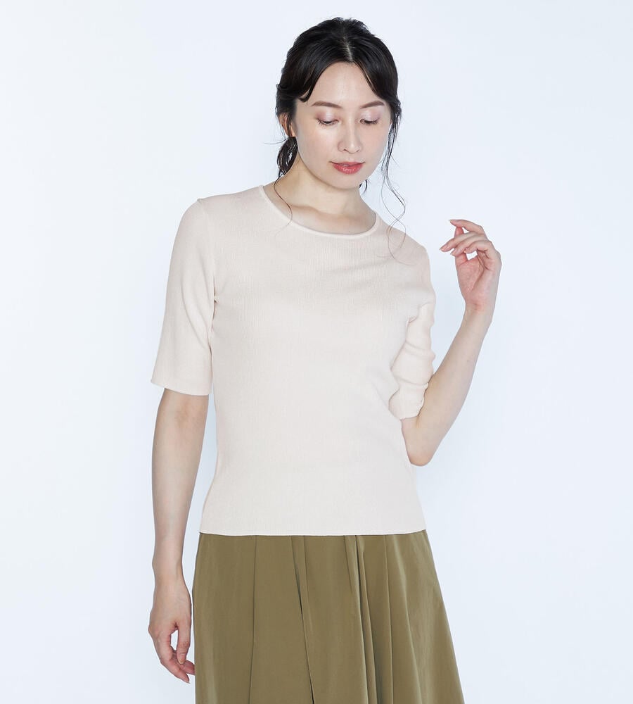 春夏秋と長いシーズンで活躍する、シャンティニット5分袖プルオーバー。引き続きトレンドのリブ編みで、適度に身体にフィットし、すっきりとしたシルエット。シンプルなデザインで様々なスタイリングにマッチします。デイリーからお出かけにはもちろん、オフィスシーンでも活躍する汎用性の高いアイテムです。