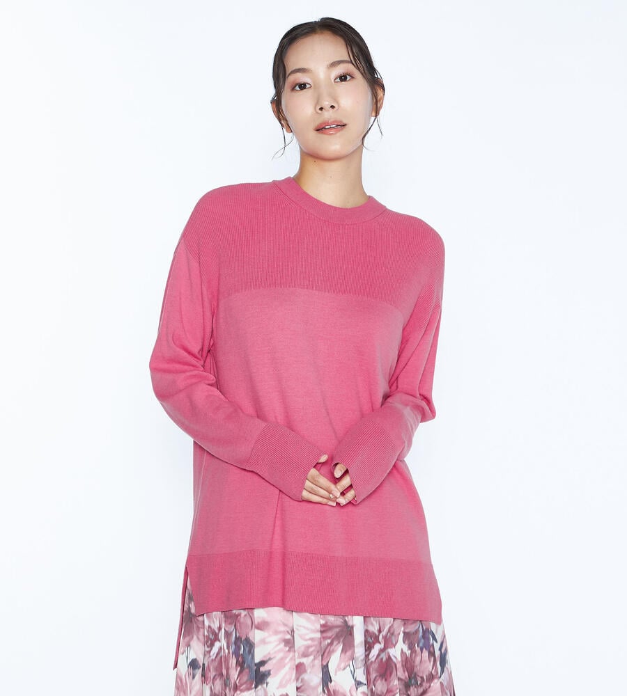 編み地を切り替えることでデザイン性を高めたスノストレッチプルオーバーニット。サイドにはスリットをあしらい、後ろ下りの着丈が腰まわりをカバー。ゆったりとしたシルエットからコンフォートなムードが漂うアイテムです。心地良さを叶えるのにおすすめの1着。