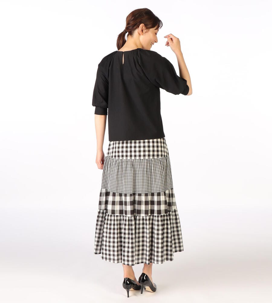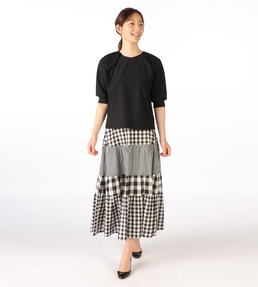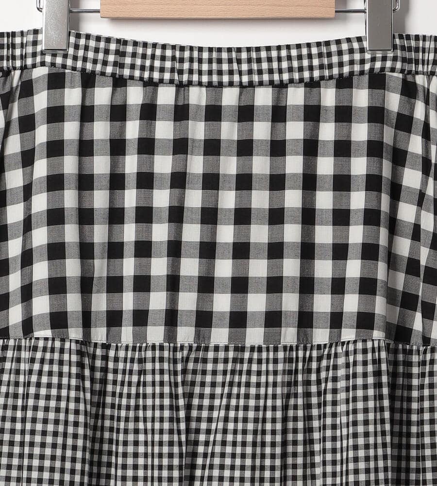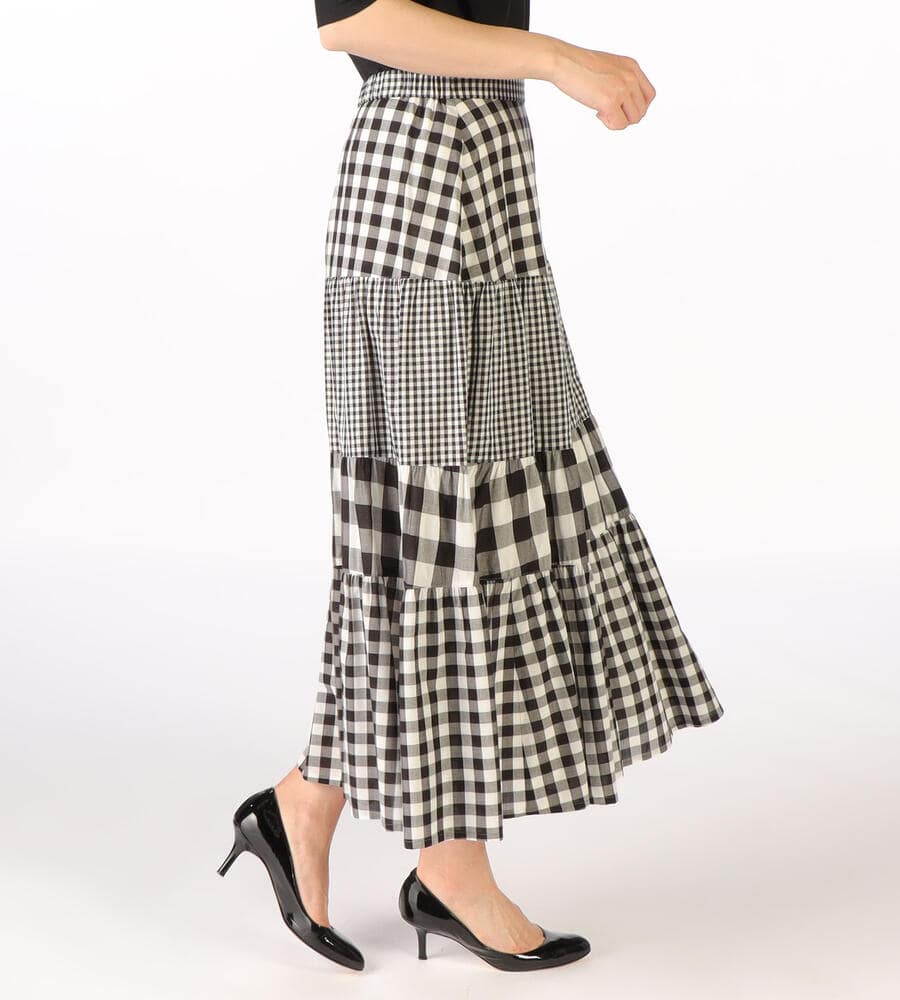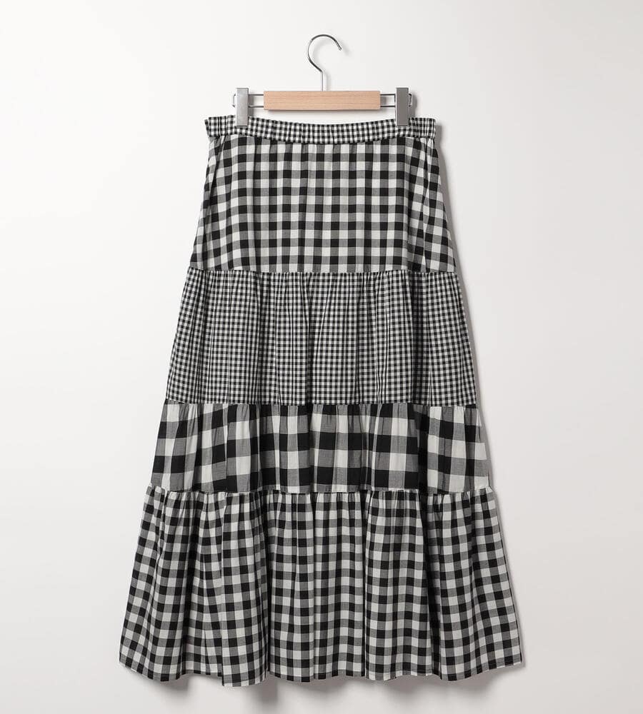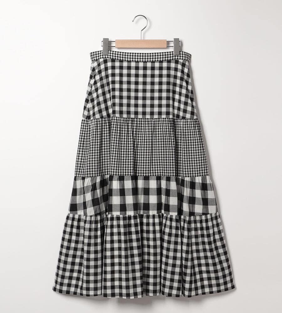 広がりすぎない絶妙なシルエットバランスと安心のロング丈で、大人な表情に仕上げたティアードスカートです。さまざまなパターンのギンガムチェックを切り替えて、存在感あふれる一枚にしました。軽やかなローン素材で涼しく着られ、夏に向けてのシーズンに活躍します。トップスは無地のシンプルなアイテムを合わせるのがおすすめです。