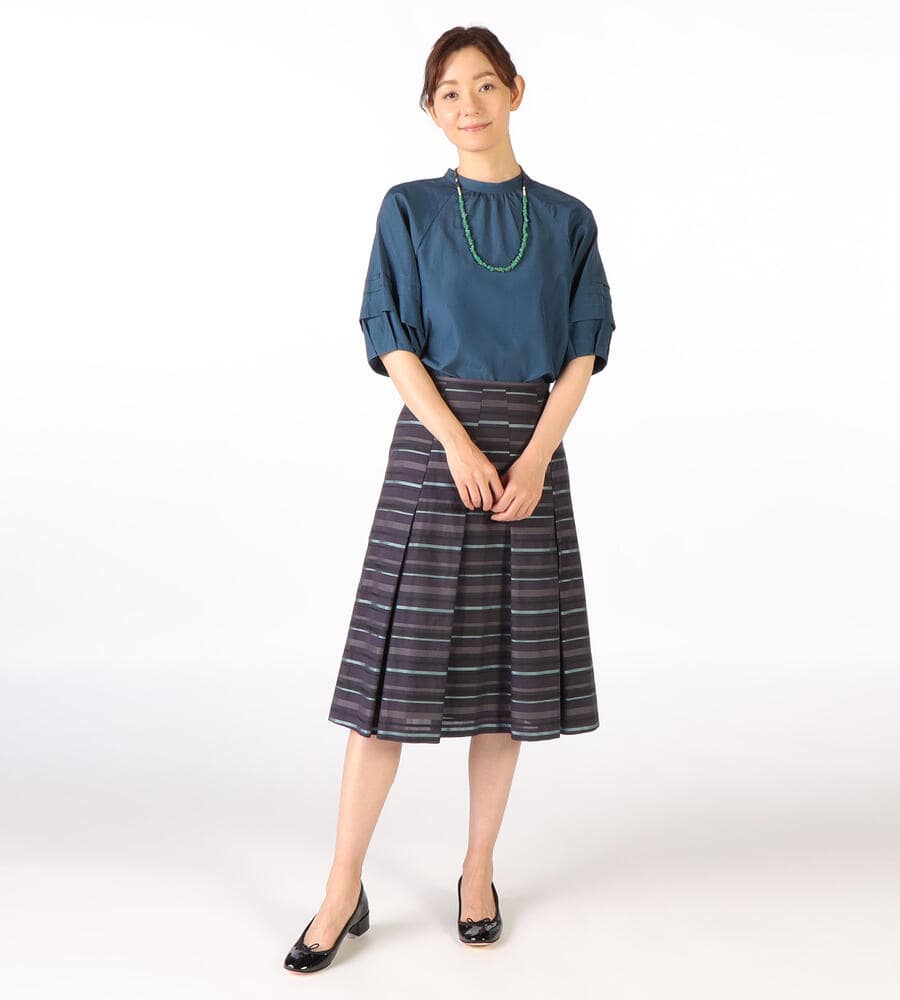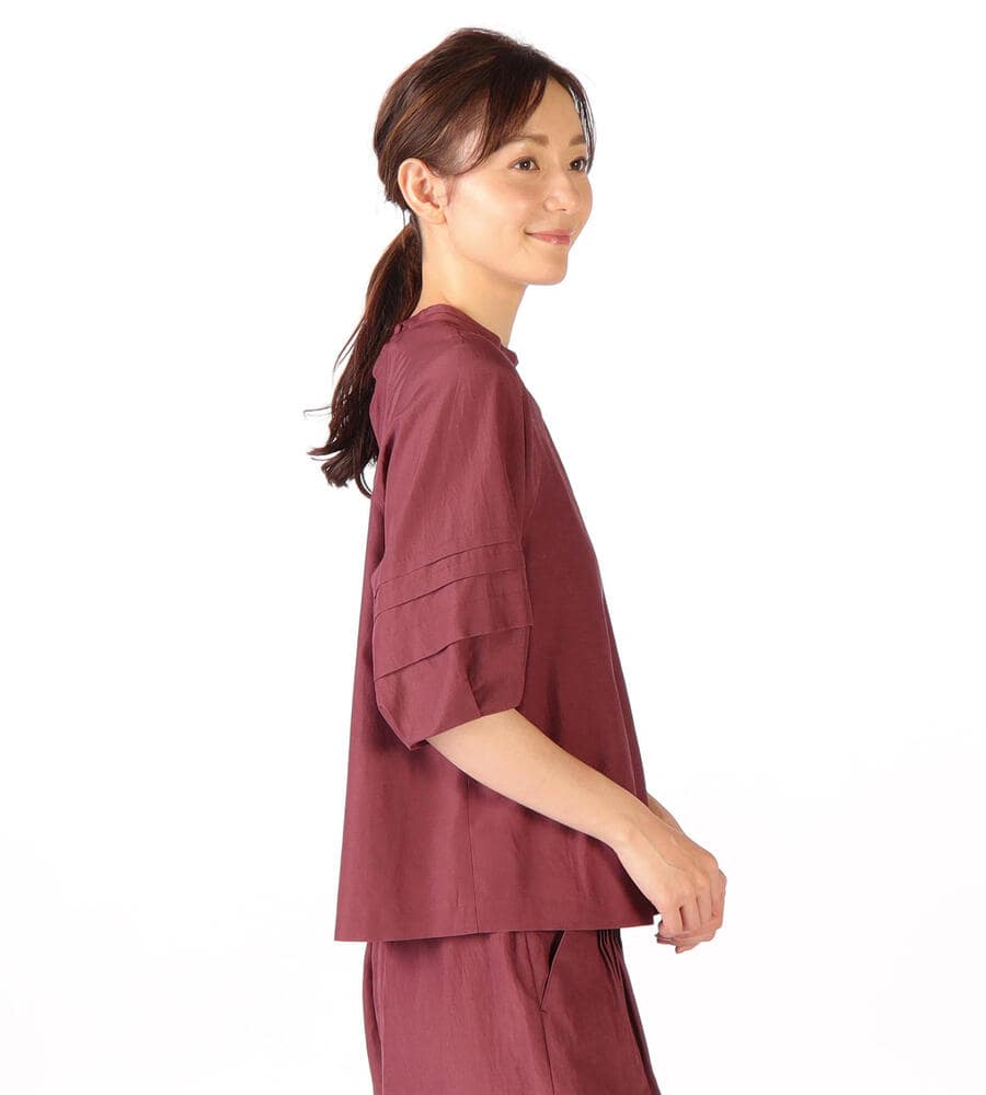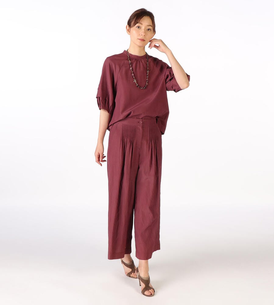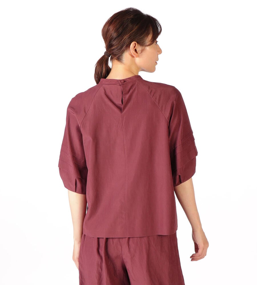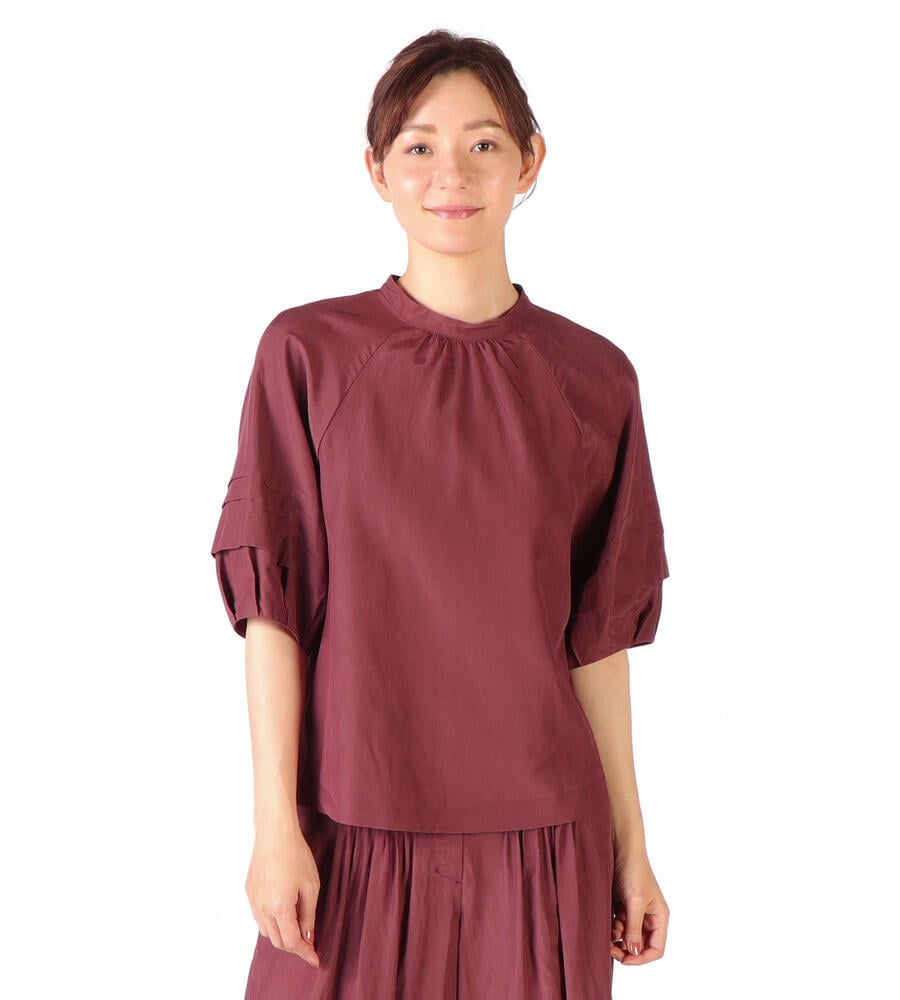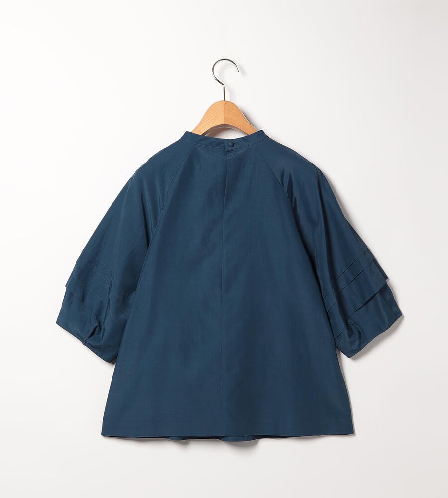 コンパクトなネックまわりで、クラシカルに着こなせるプルオーバーブラウスです。ティアードとタックでボリュームをもたせた、個性豊かなスリーブデザインがポイント。袖の切り替えはラグランスリーブで、肩のラインを滑らかに仕上げます。身頃はシンプルで合わせやすく、柄物ボトムも相性抜群です。