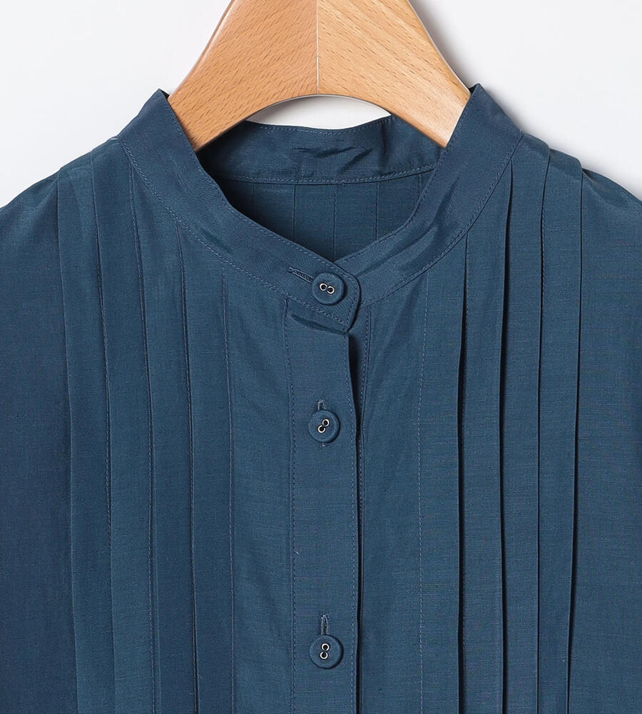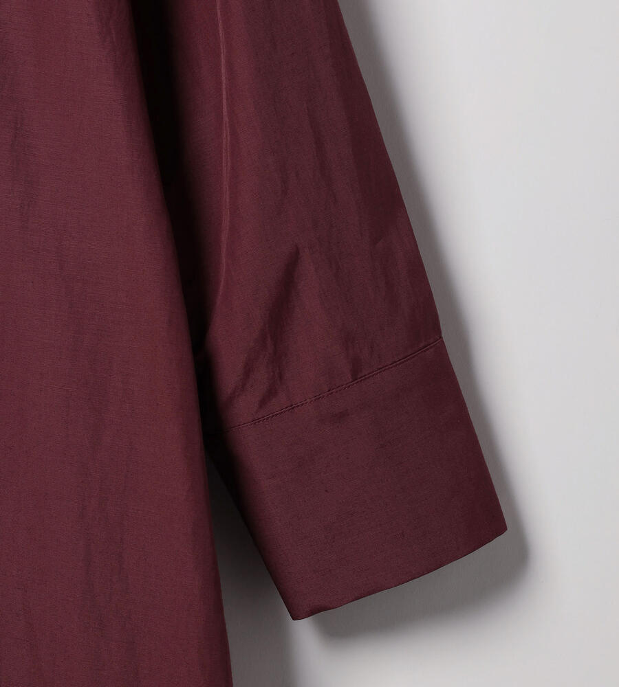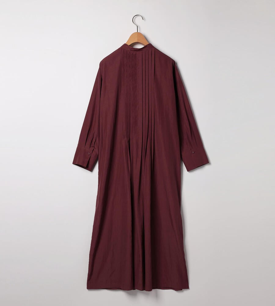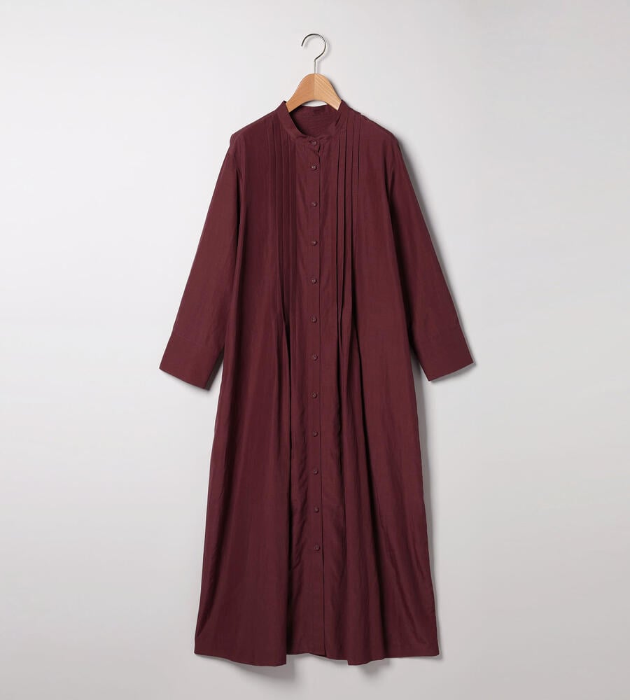 膝が隠れる安心着丈のシャツワンピースです。首まわりのすっきりとするバンドカラーで、袖は軽快な7分丈に設定。締め付けのないゆったりシルエットも、前後の規則正しいタッキングでメリハリのある仕上がりに。ほどよいデザイン性で、シンプルに着こなしても存在感を発揮してくれます。首もとにお気に入りのストールを巻くのもおすすめです。