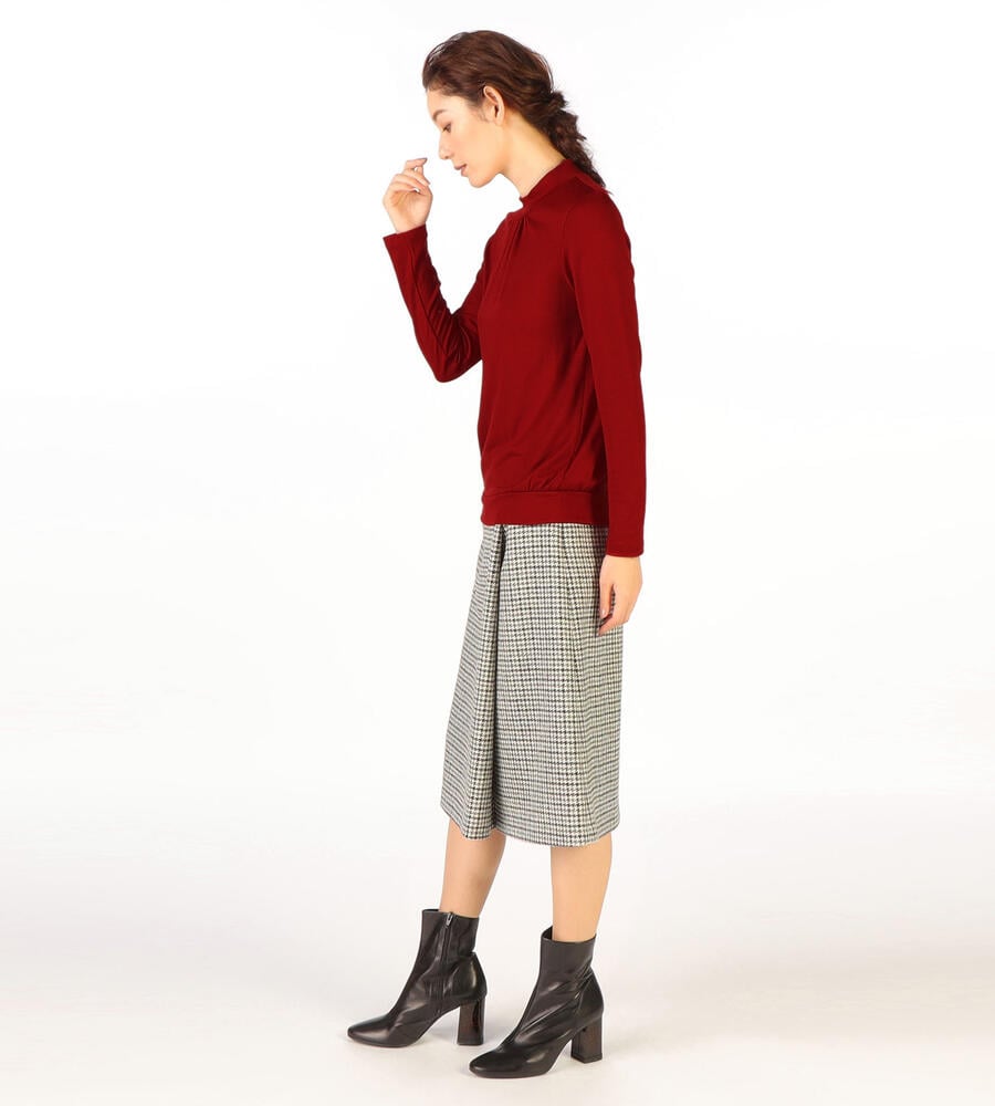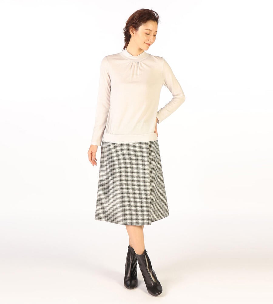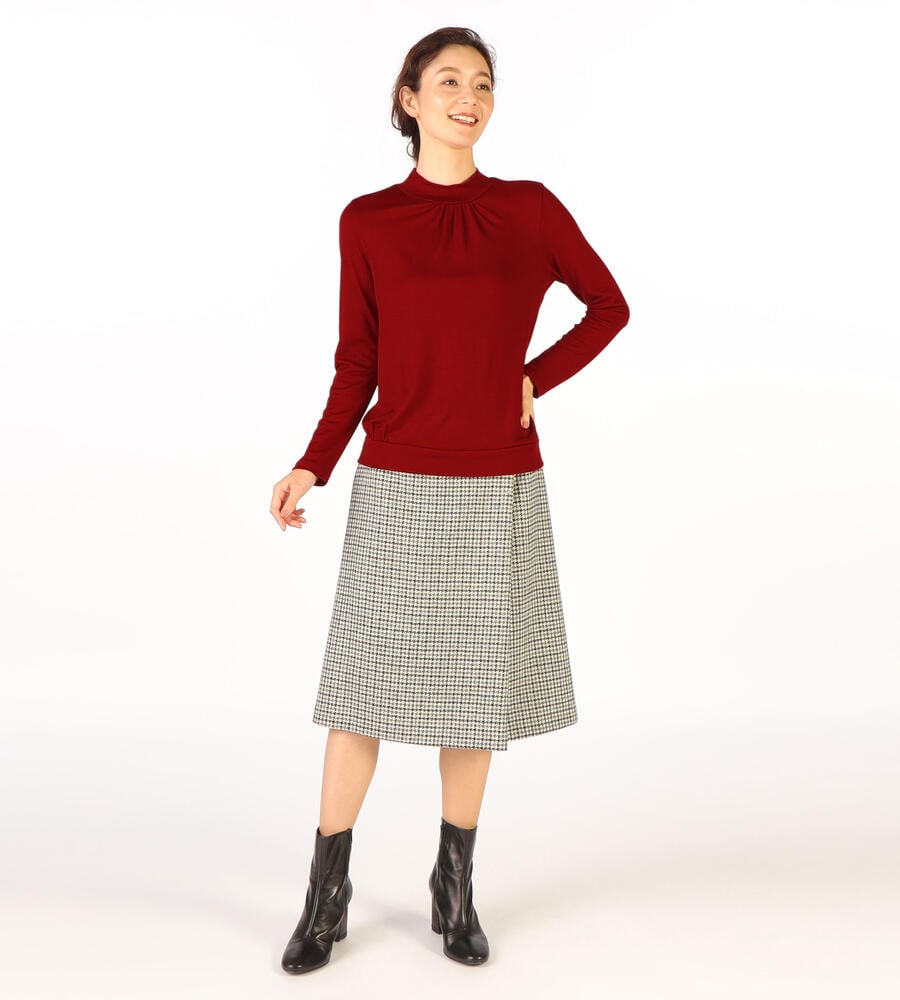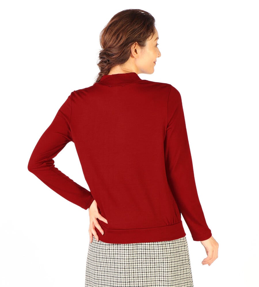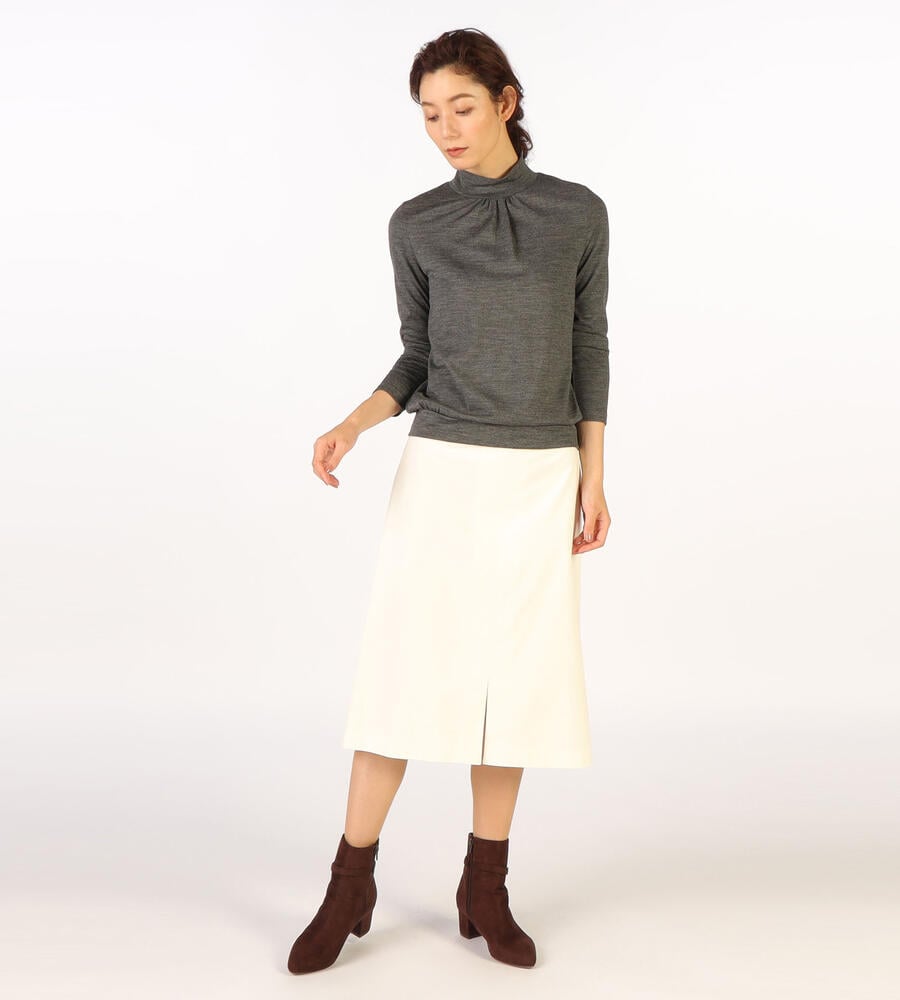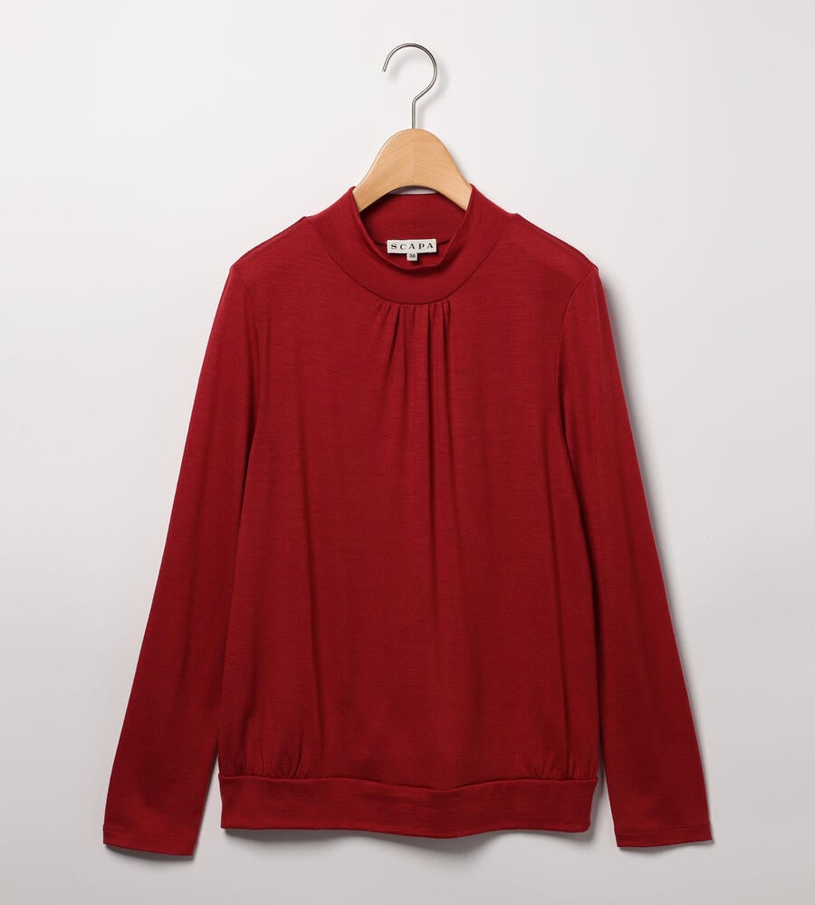 わずかに光沢のある生地でおつくりしたプルオーバー。プチハイネックで上品に仕上げた顔まわりには、控えめにタックをほどこすことで華やかをプラスしました。無地ベースのシンプルなデザインで、合わせるボトムを選ばないのもポイント。トップスとしてはもちろん、ジャケットのインナーとしても相性が良く、カジュアルからオフィスまで幅広くお使いいただけます。