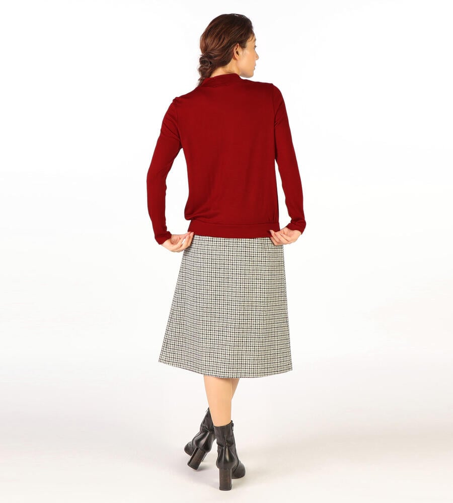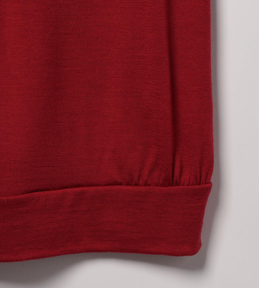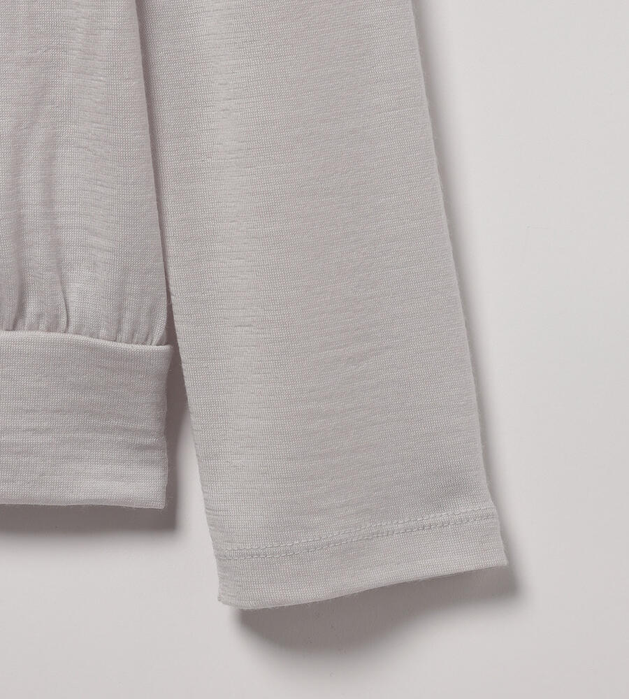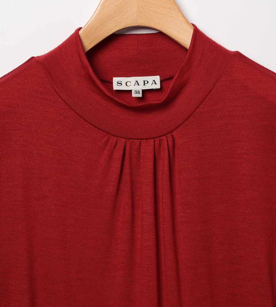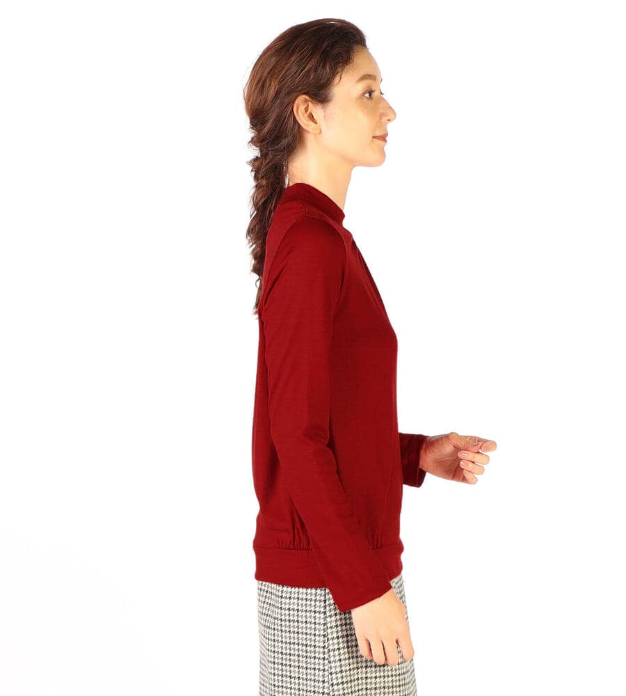わずかに光沢のある生地でおつくりしたプルオーバー。プチハイネックで上品に仕上げた顔まわりには、控えめにタックをほどこすことで華やかをプラスしました。無地ベースのシンプルなデザインで、合わせるボトムを選ばないのもポイント。トップスとしてはもちろん、ジャケットのインナーとしても相性が良く、カジュアルからオフィスまで幅広くお使いいただけます。
