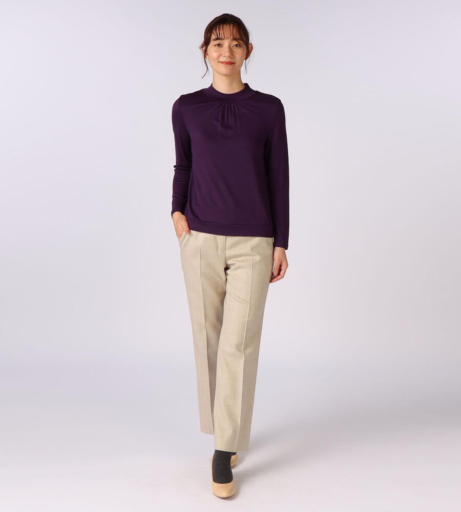 首もとのギャザーがワンポイントになったボトルネックカットソー。シンプルで合わせやすいデザインがスタイリングに活躍。薄手の素材は1枚着としてはもちろん、レイヤードスタイルのインナーとしても使い勝手の良いアイテムです。あたたかな毛100%素材を採用しています。