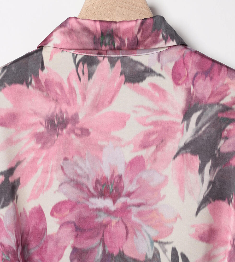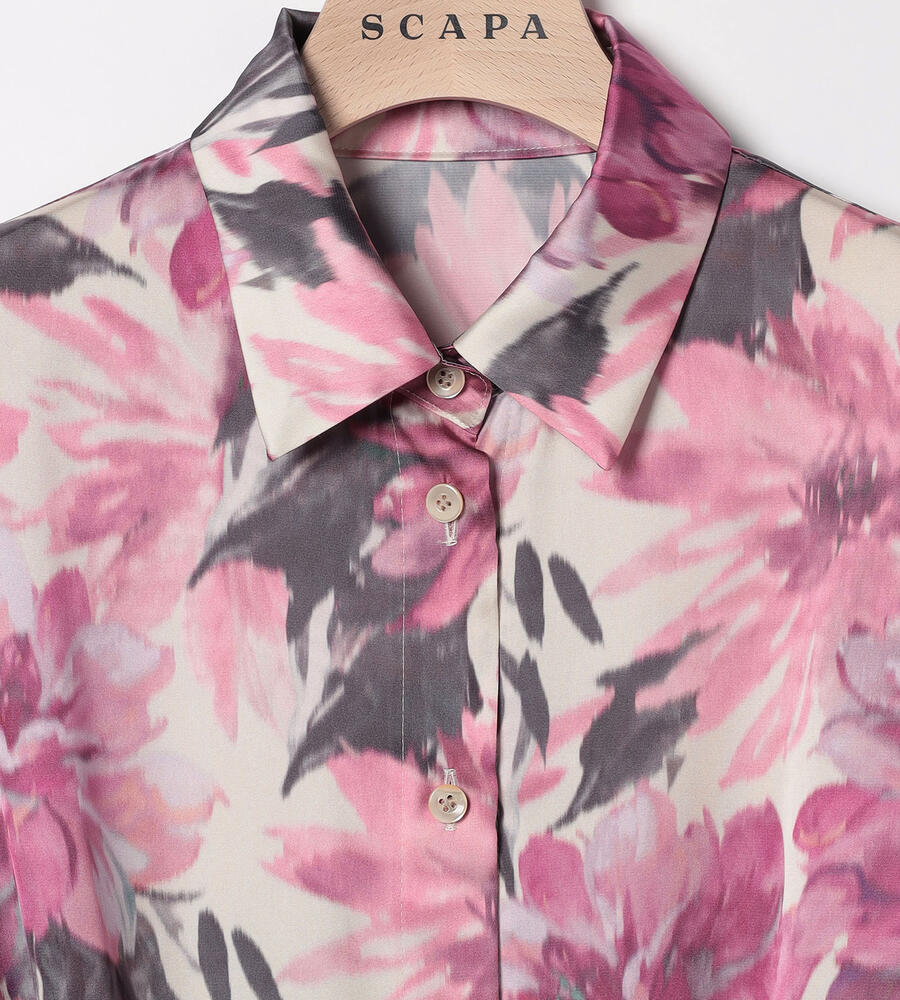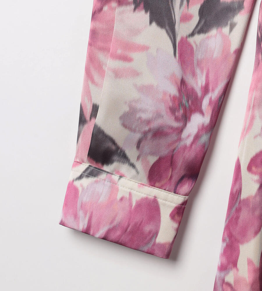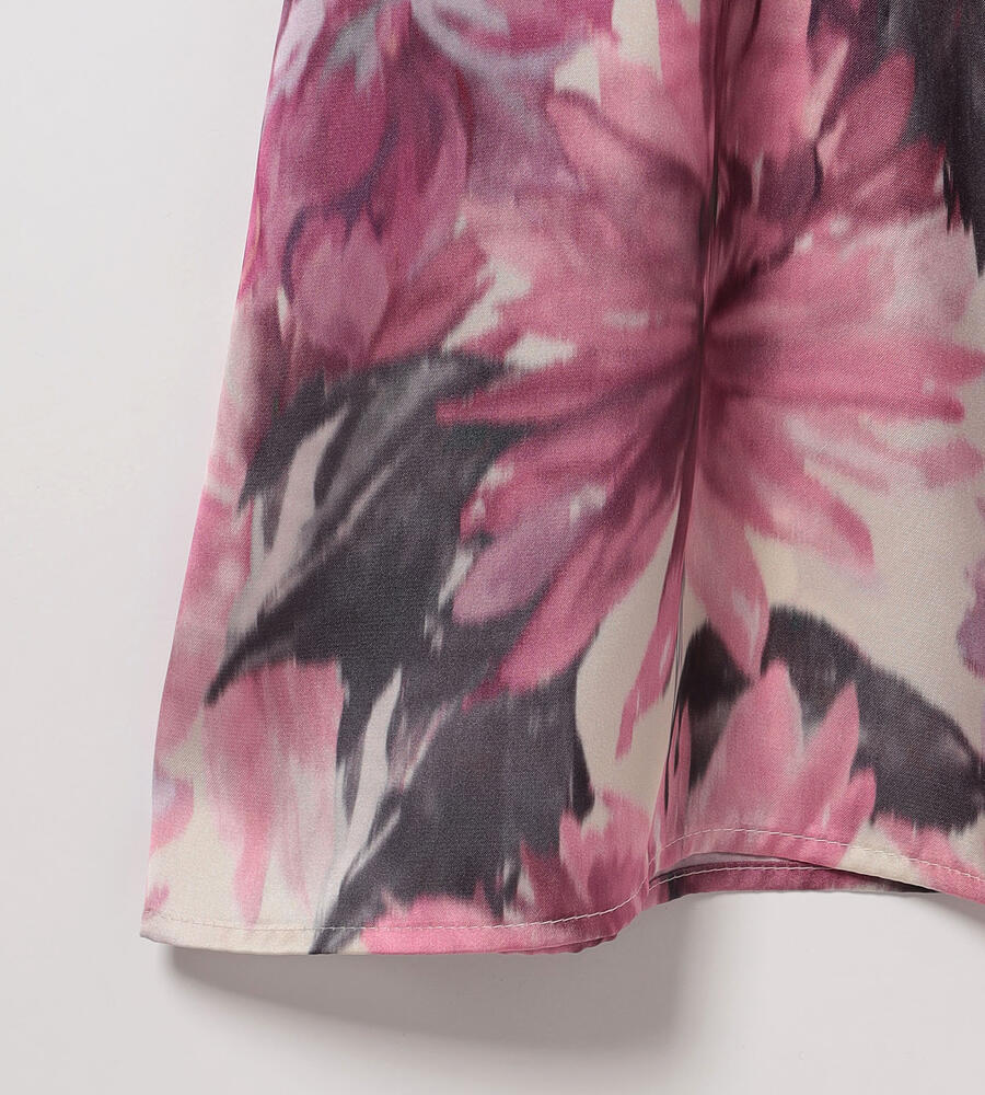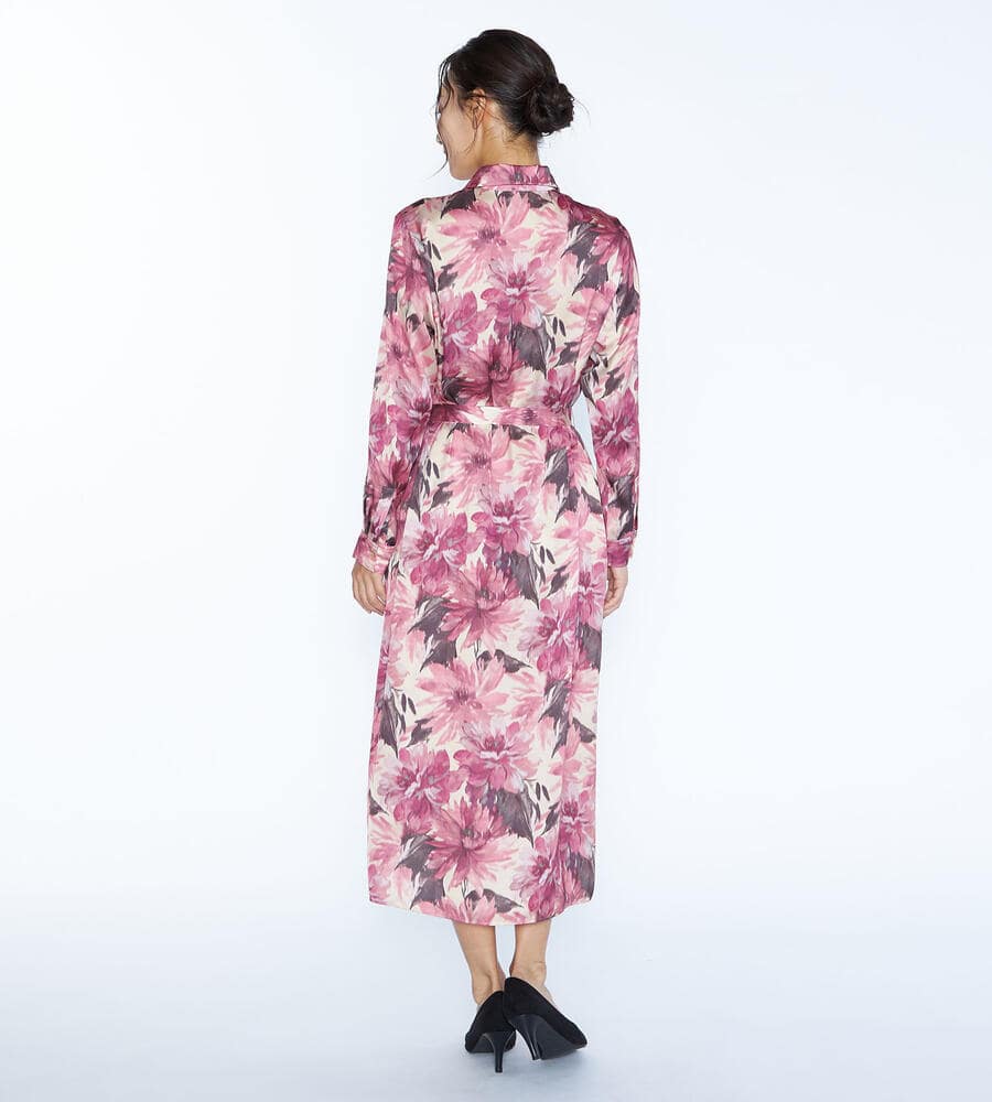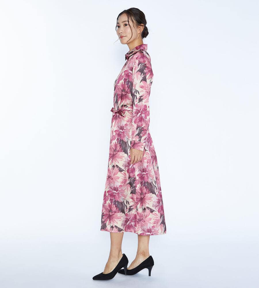 華やかなカラー使いが気分を高めてくれるフラワープリントワンピース。シャツライクなデザイン、程よく裾にフレアを入れたAラインシルエット。しなやかな素材感がエレガントな雰囲気に仕上げてくれるアイテム。ウエストベルトのオンオフでアレンジを楽しめます。