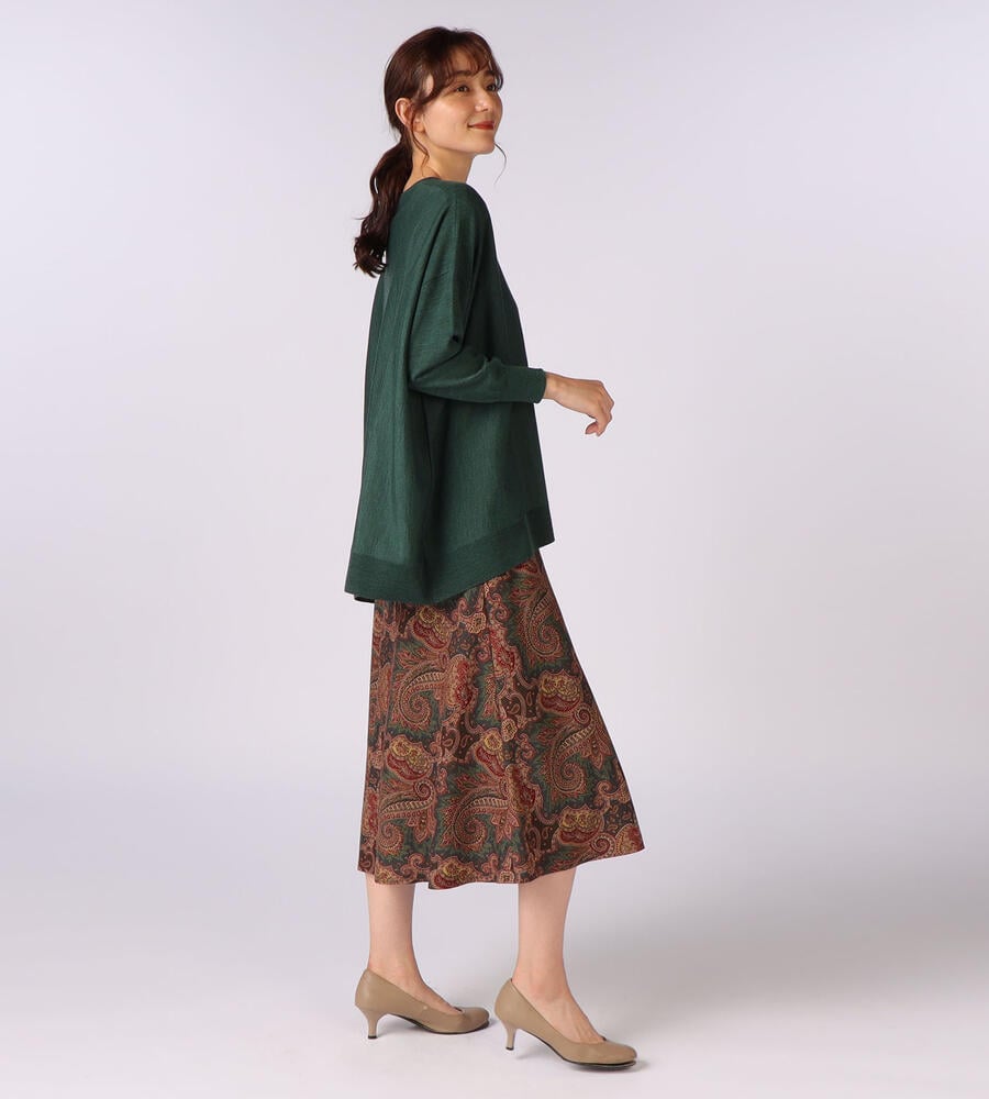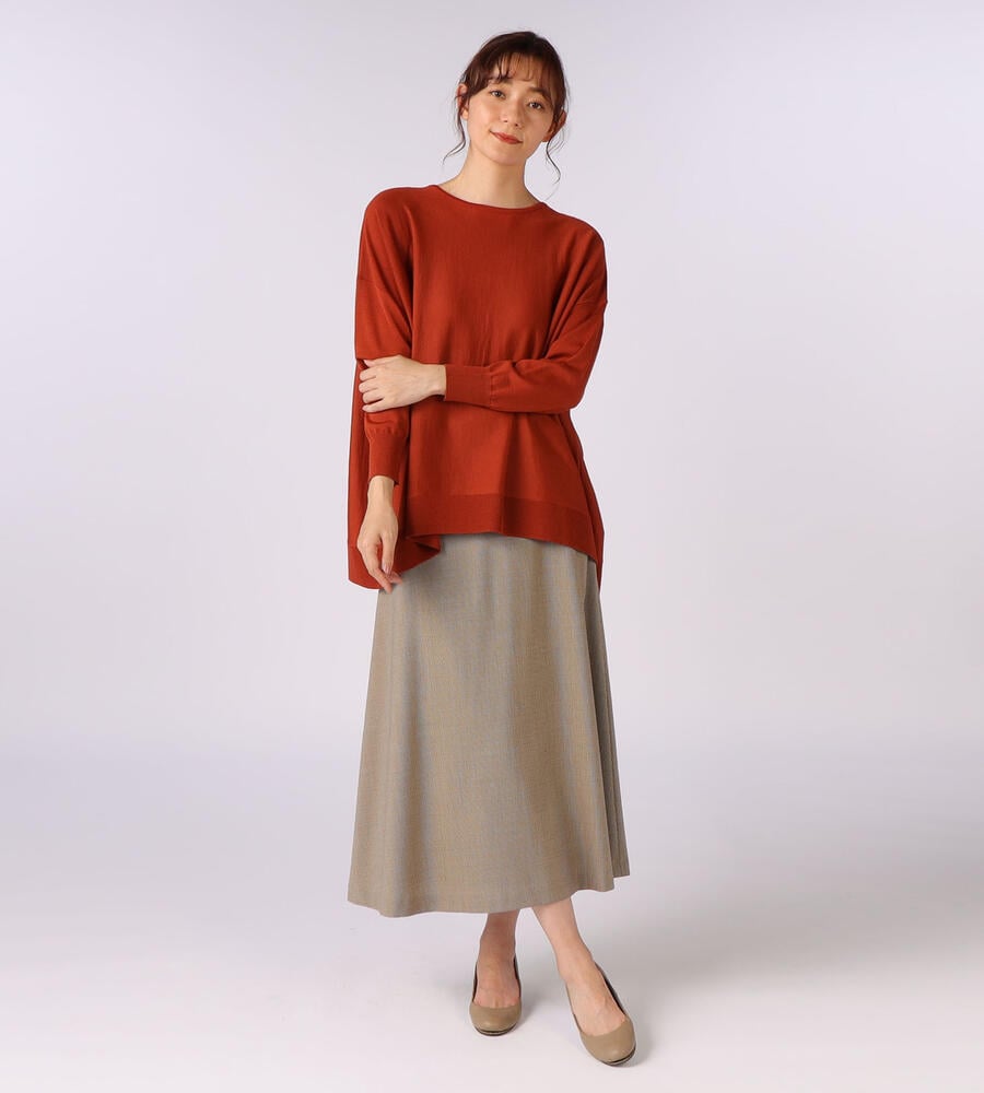 ドロップショルダーが抜け感のあるオーバーニットです。落ち感のある素材がゆったりとした印象。タイトなボトムスと合わせてバランスの良い着こなしがおすすめ。スカートはもちろん、パンツスタイルとも相性が良く、着回し力があります。裾と袖にリブが施され、シルエットにメリハリのある一着です。