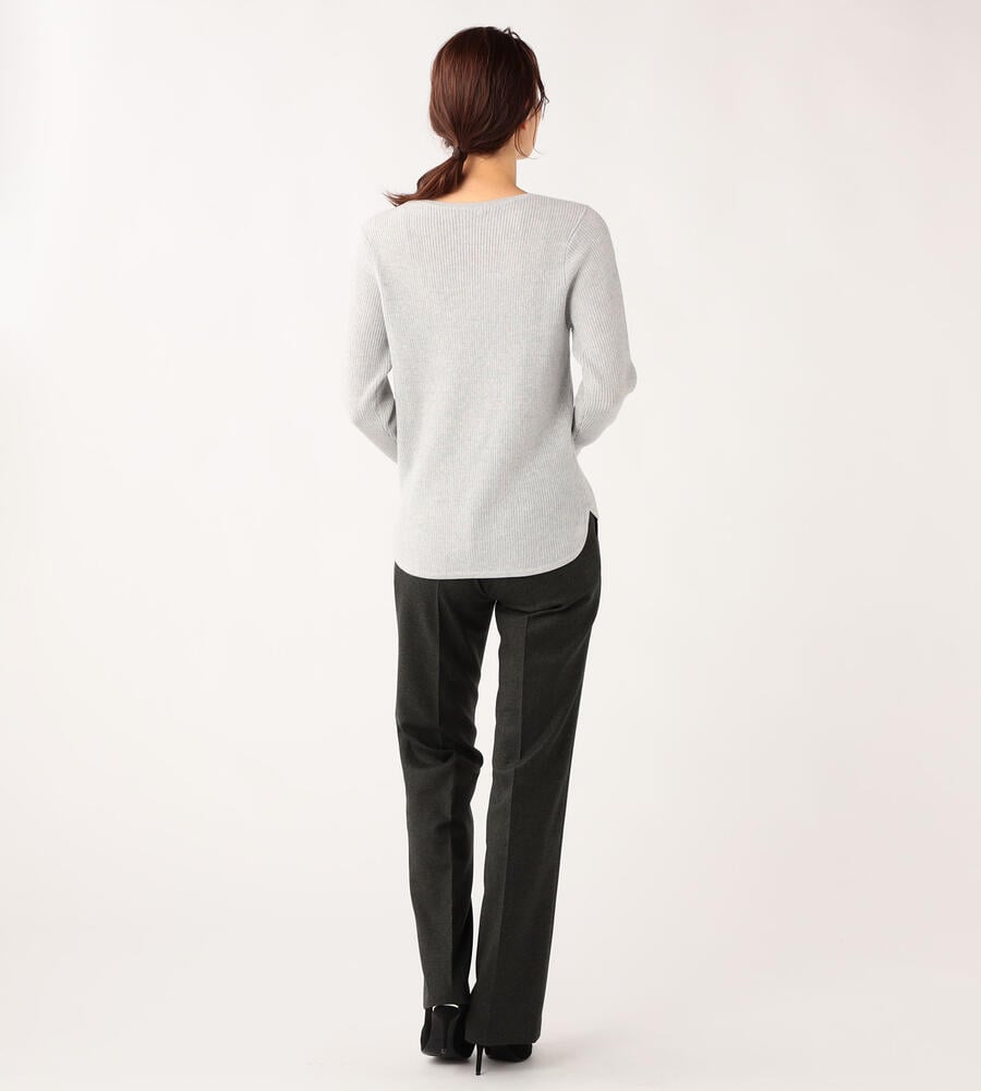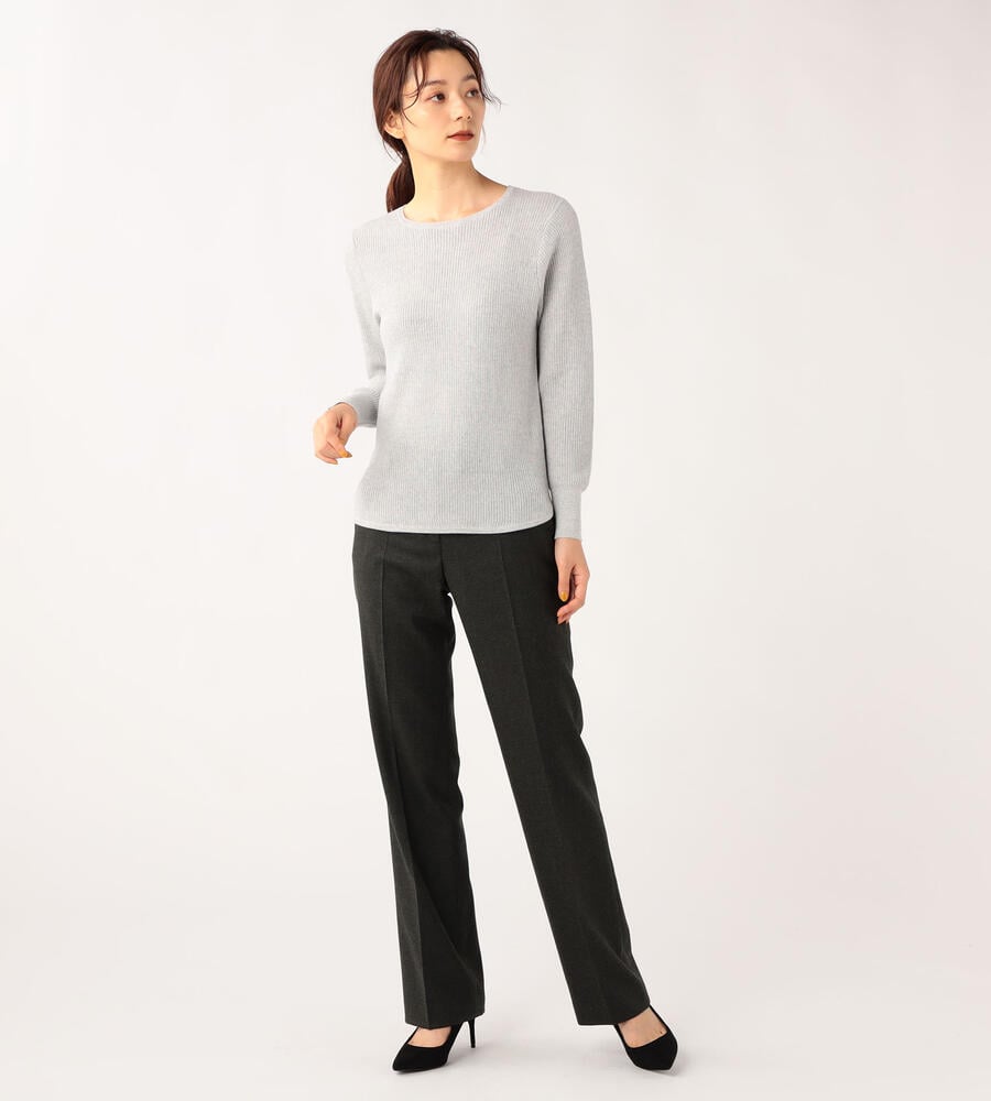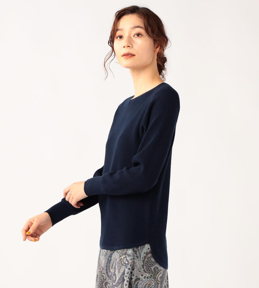 立体感のある編み地が印象的なニットプルオーバー。ボディラインを拾わないゆったりとしたシルエットと広めに開けた襟ぐりが女性らしい佇まいのアイテムです。 長くお使いいただける単色のシンプルなデザインで合わせるボトムを選ばず、幅広いコーディネートで活躍してくれる1枚となっています。