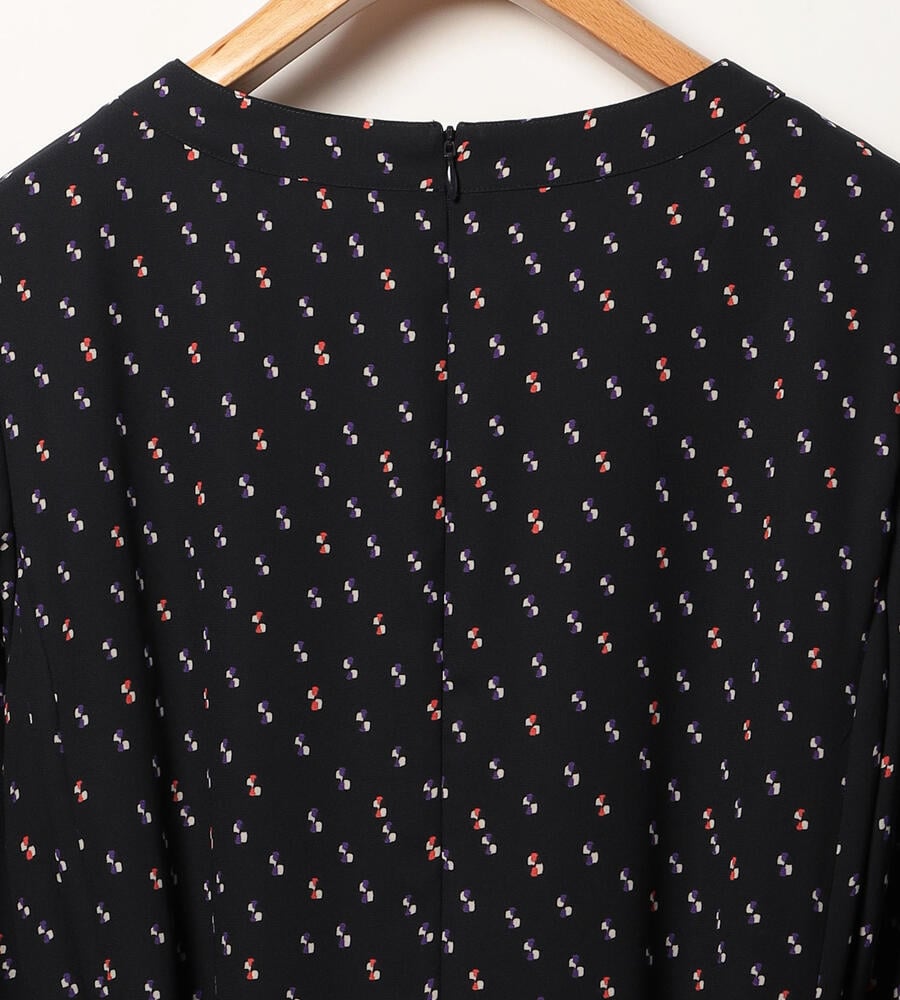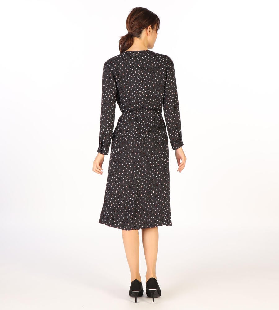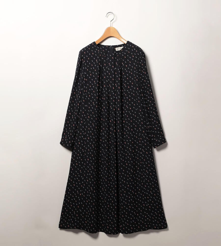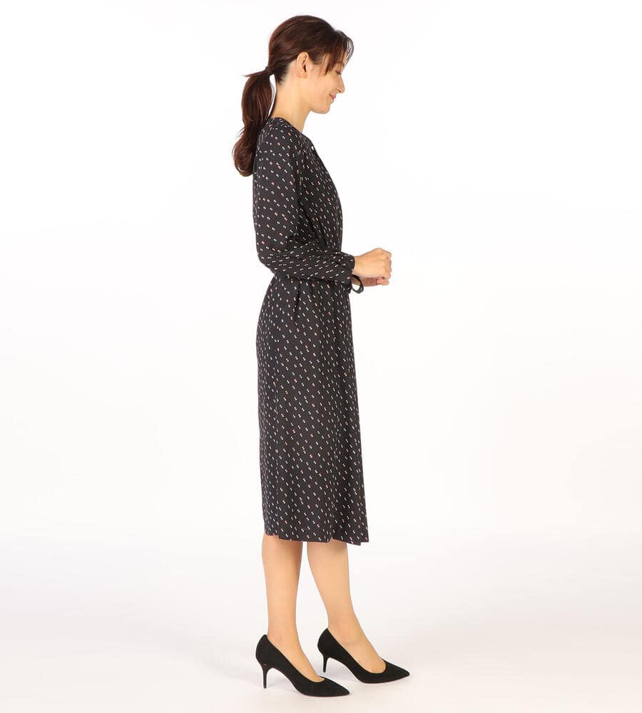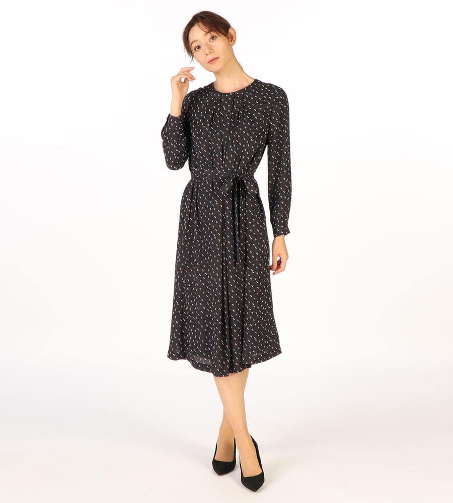 グラフィカルでレトロな雰囲気のドット柄プリントがおしゃれな長袖ワンピース。簡単に取り外し可能なウエストベルト付きで、異なる印象のシルエットを楽しめます。タックを入れた、ドレープ感のあるフェミニンでフレアなシルエットがポイント。一枚でスタイリッシュな着こなしが完成するアイテムです。