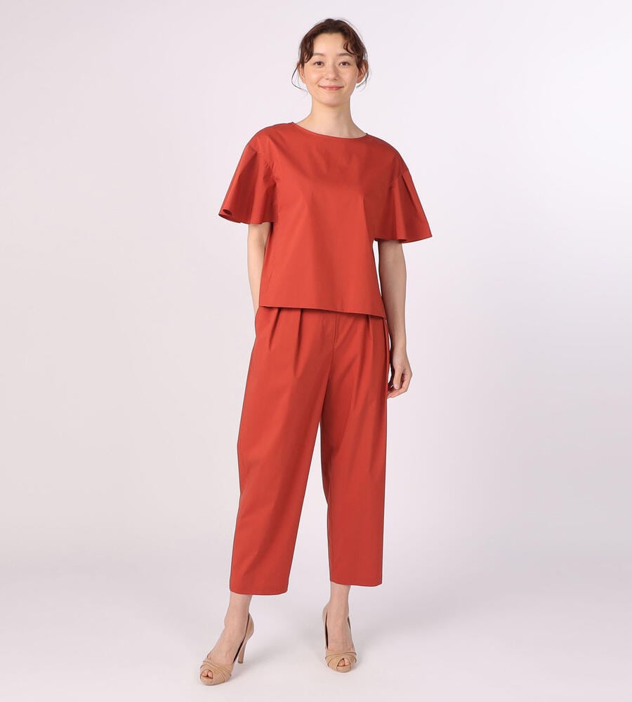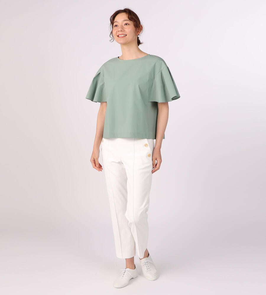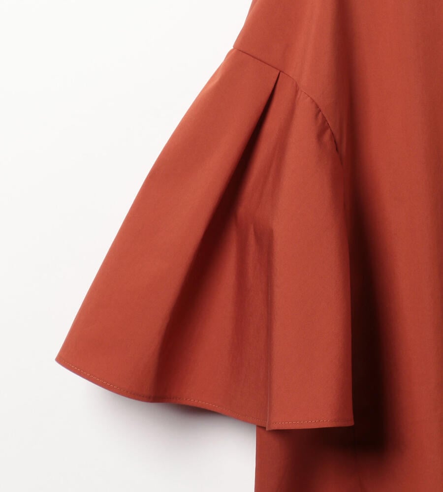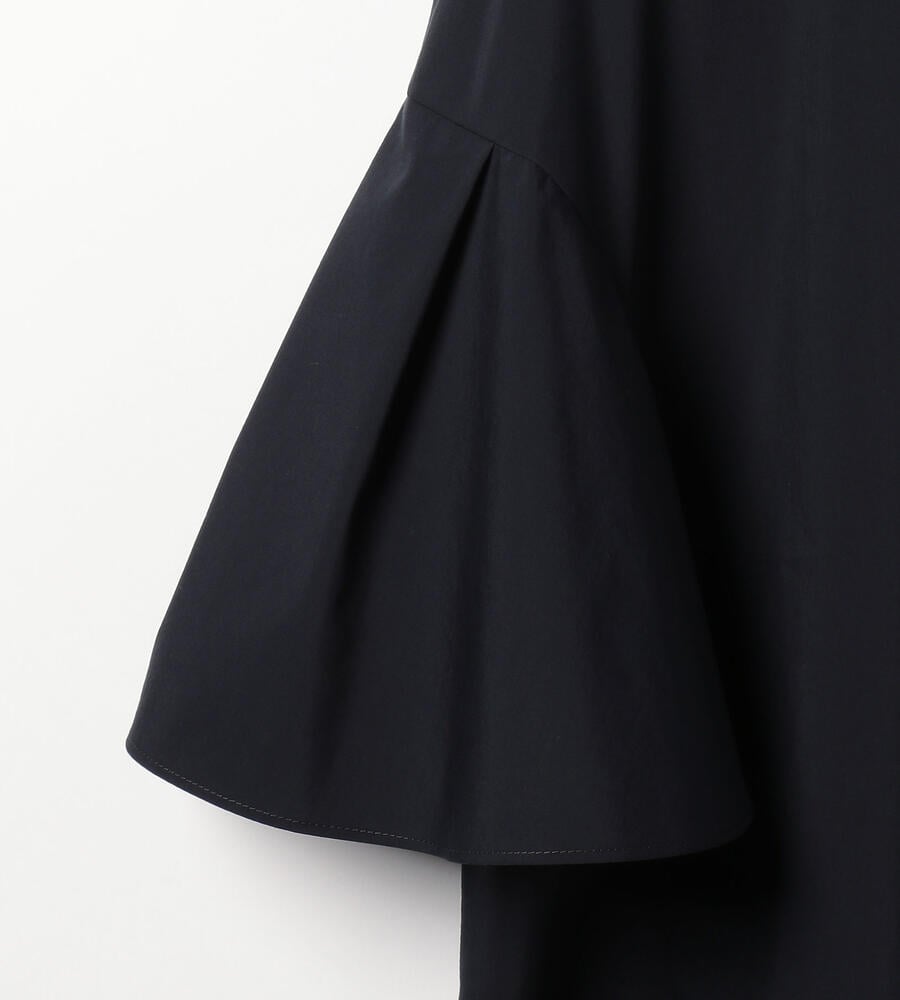 特有のハリ感が上品な佇まいのタイプライターブラウス。ボディラインをカバーしてくれるゆったりとしたシルエットは、どんなボトムともバランス良く合わせることができるのも魅力です。シンプルなワンカラーに、大振りのフリル袖が映える華やかな1枚に仕上がっています。カジュアルからきれいめまで幅広いコーディネートも可能です。
