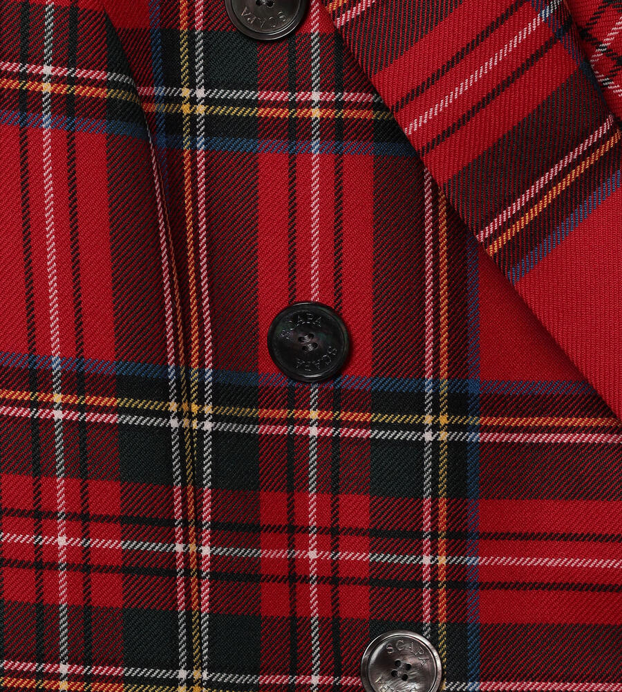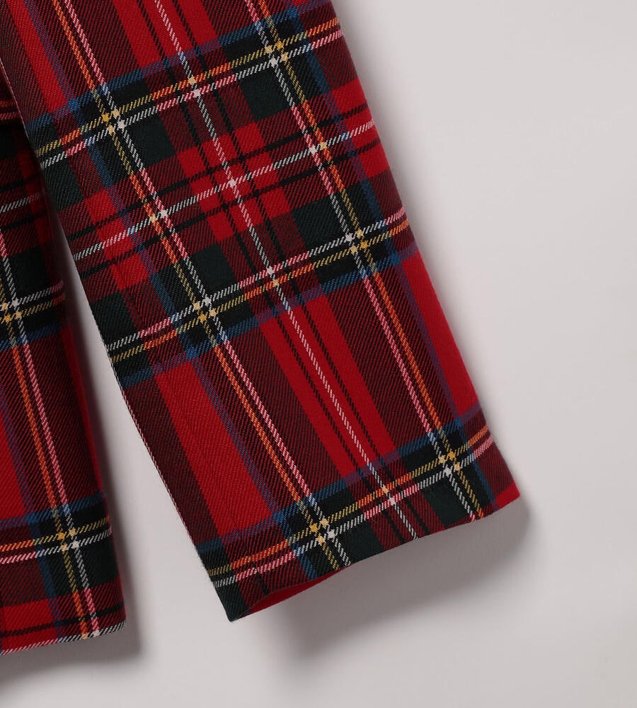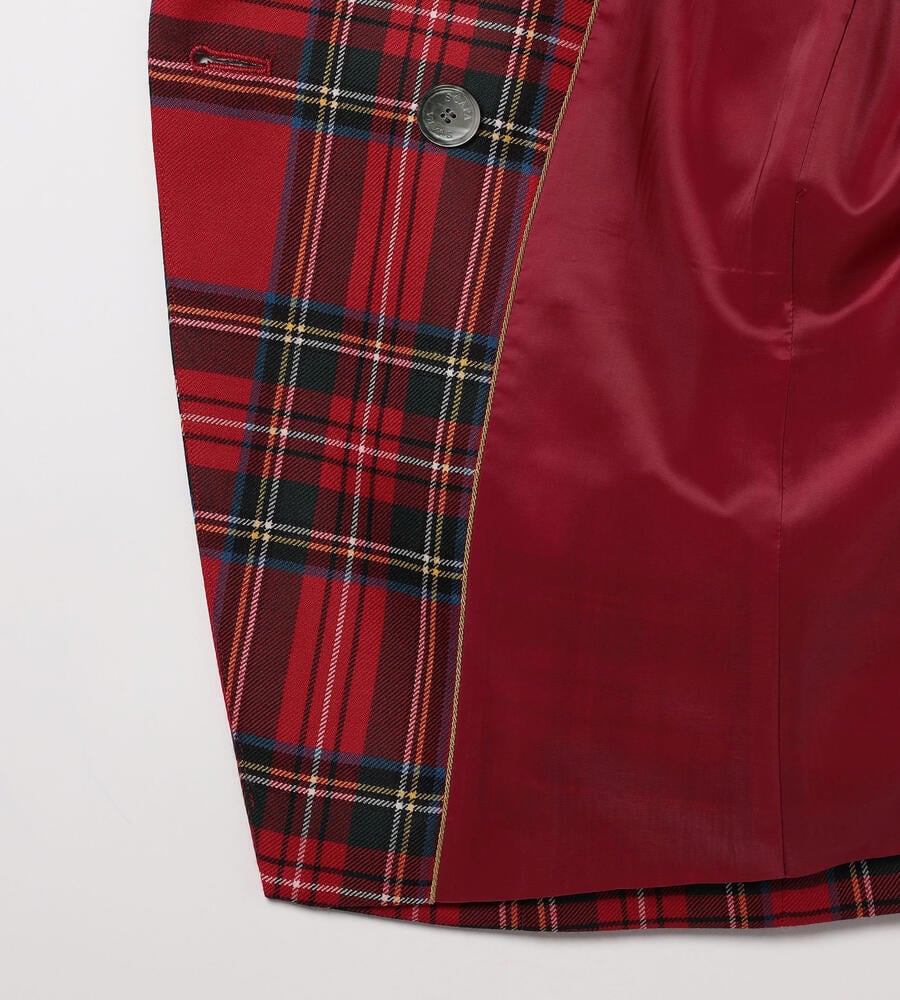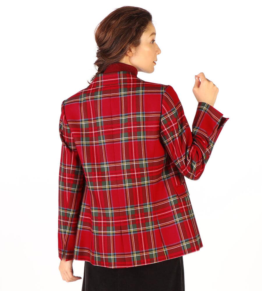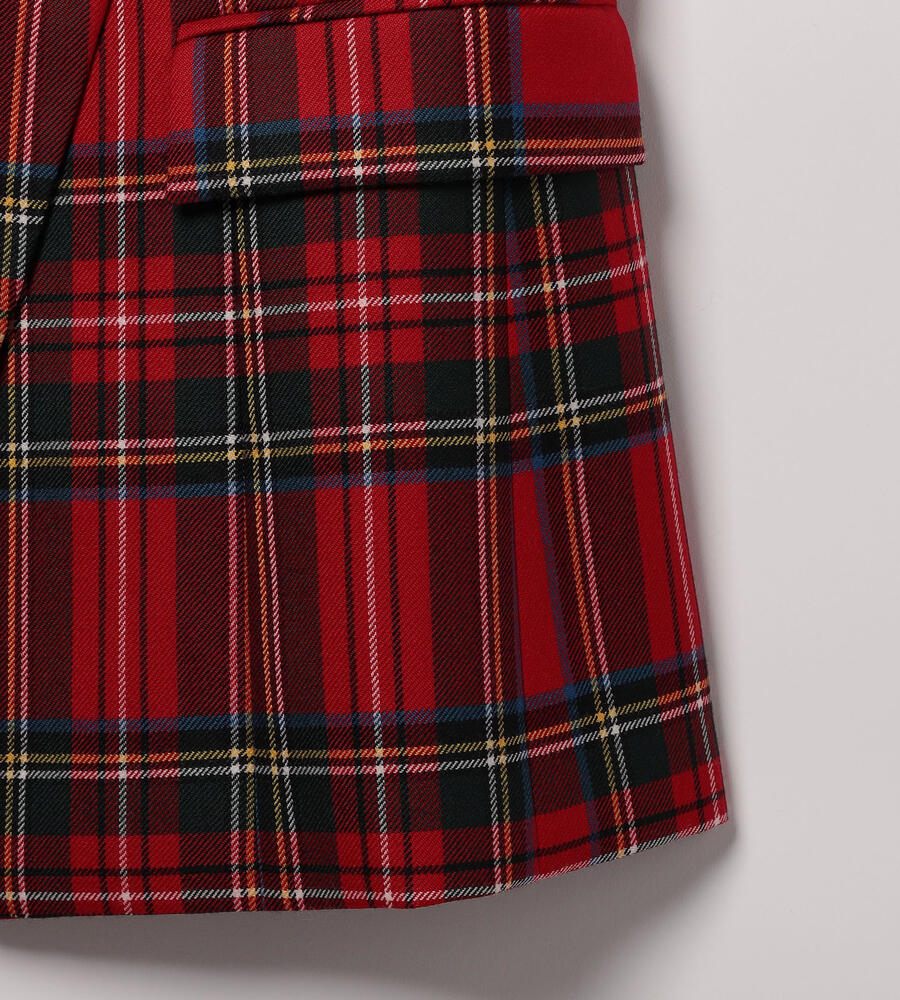 ダブルボタンのフロントがシックなムードのジャケット。華やかなチェック柄が着こなしのアクセントになるデザイン。ダーツ入りですっきりとしたシルエットで着こなせます。フロントを開けても閉めて着ても様になる印象的なフロントカットが魅力。スタイリッシュなコーディネートが実現するアイテムです。