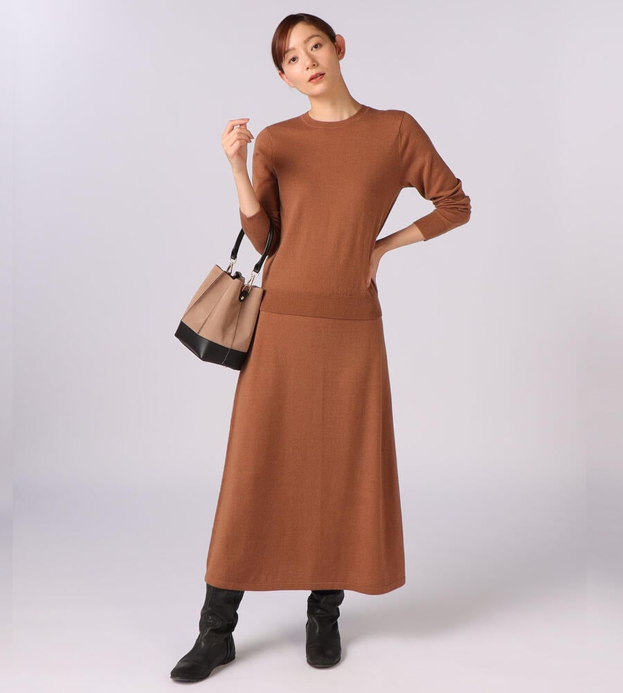 上品な印象で着こなせるハイゲージニットで仕上げた、シンプルなデザインがコーディネートに活躍するロングスカート。裾に向かって緩やかに広がるフレアシルエット。ウエストの締め付けがなく、心地よくおしゃれを楽しめるのもポイントです。毛100%素材を採用しています。