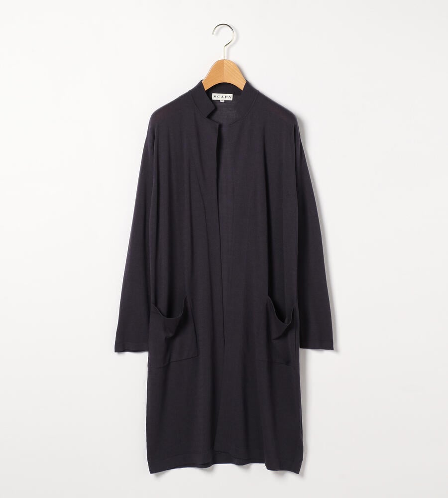 優しい肌触りのシルク混ニットを使用したロングカーディガン。コンパクトなスタンドカラーが印象を引き締めつつ、首周りをさりげなくカバーします。パンツスタイルからワンピースまで様々なアイテムに合わせやすく、日々の着回しに大活躍。細ベルト付きで、外すとリラックス感のある着流しスタイルも楽しめます。