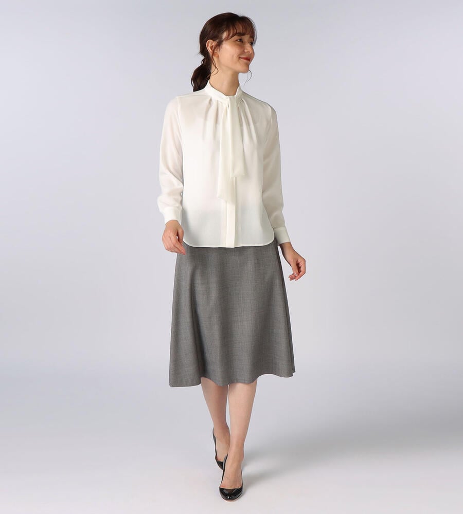 シンプルな中にもエレガントな雰囲気が漂うウールシャンブレースカート。裾に向かって緩やかに広がるAラインシルエット。膝下を美しく見せる絶妙な丈感もポイントに。同素材のジャケットとセットアップで着こなしていただけるアイテムです。
