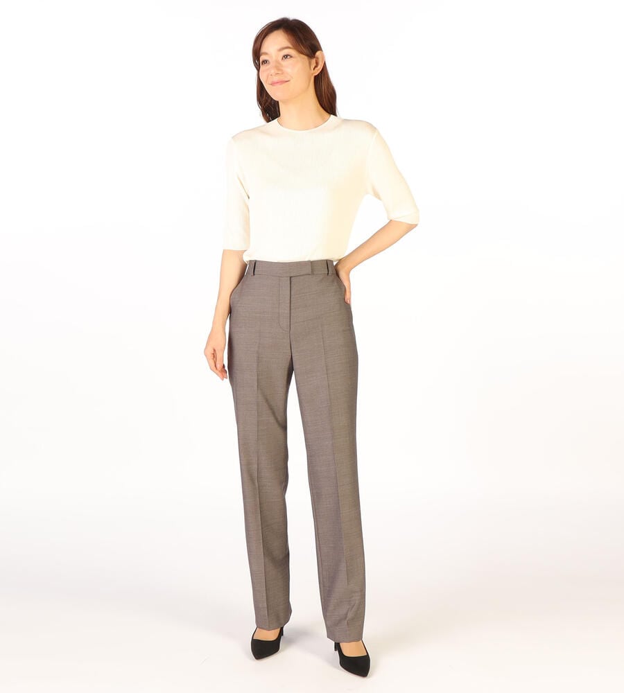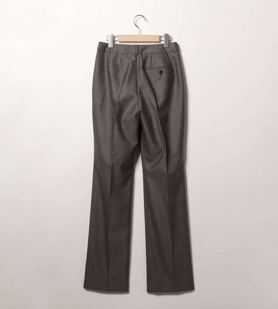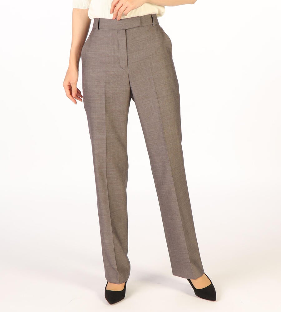 風合いとハリ感のあるウールシャンブレー生地で仕立てた、シックな雰囲気のパンツ。自然で適度な光沢感がエレガントなムードを演出。センタープレス入りで、キレイ目な印象の着こなしに。トレンドレスで着こなせるシンプルなデザインで、お手持ちのトップスと合わせてエレガントなスタイルが実現するアイテムです。