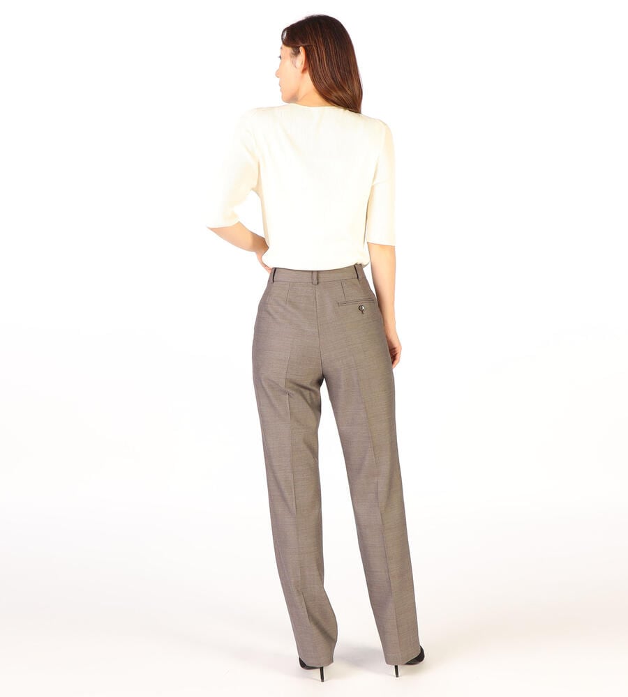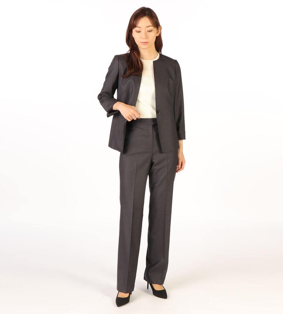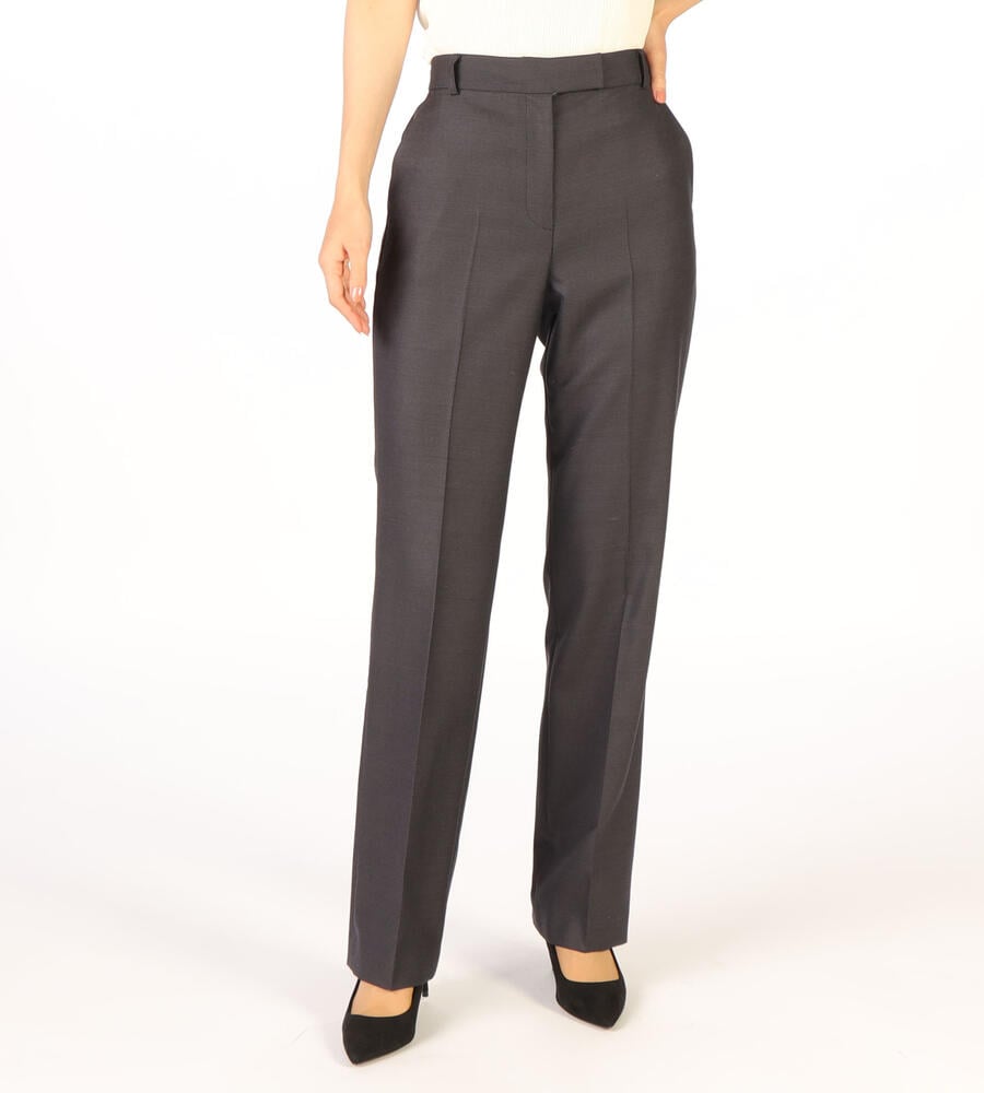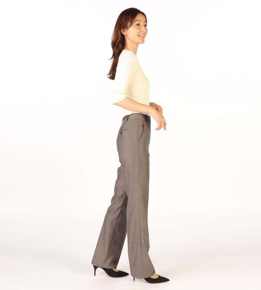 風合いとハリ感のあるウールシャンブレー生地で仕立てた、シックな雰囲気のパンツ。自然で適度な光沢感がエレガントなムードを演出。センタープレス入りで、キレイ目な印象の着こなしに。トレンドレスで着こなせるシンプルなデザインで、お手持ちのトップスと合わせてエレガントなスタイルが実現するアイテムです。