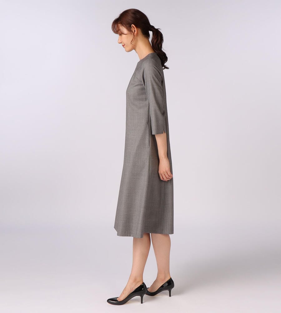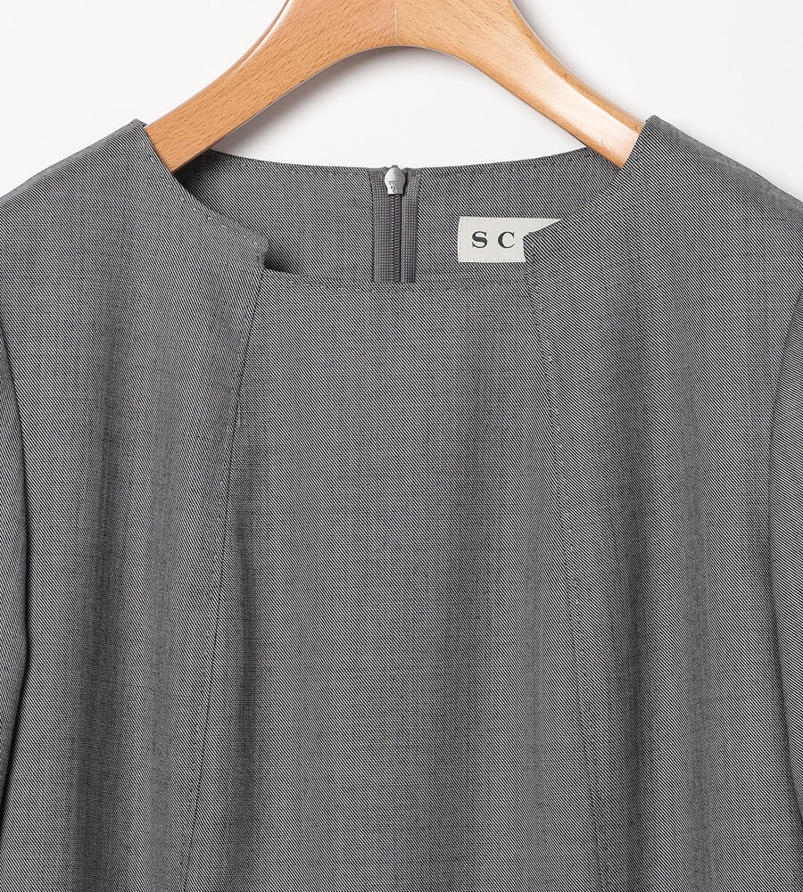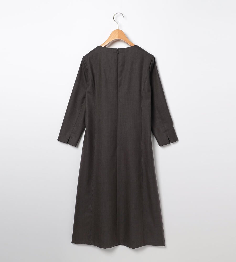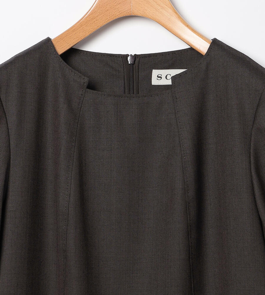 ネックラインのディテールに個性が光るウールシャンブレーワンピース。裾に向かって緩やかに広がるAラインシルエット。軽やかな丈感のスリーブは、後ろ裾にスリットがあしらわれています。同素材のジャケットとセットアップで着こなしていただけるアイテムです。