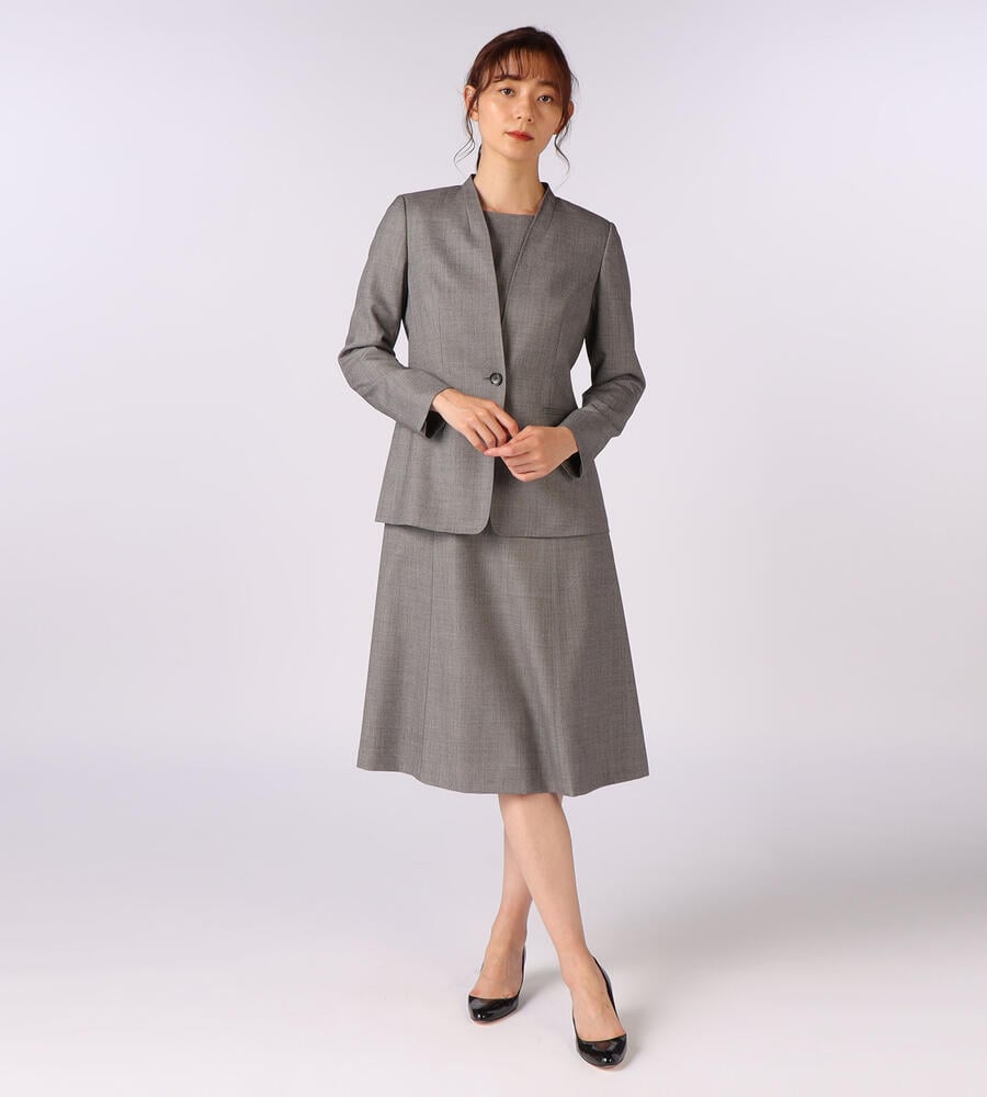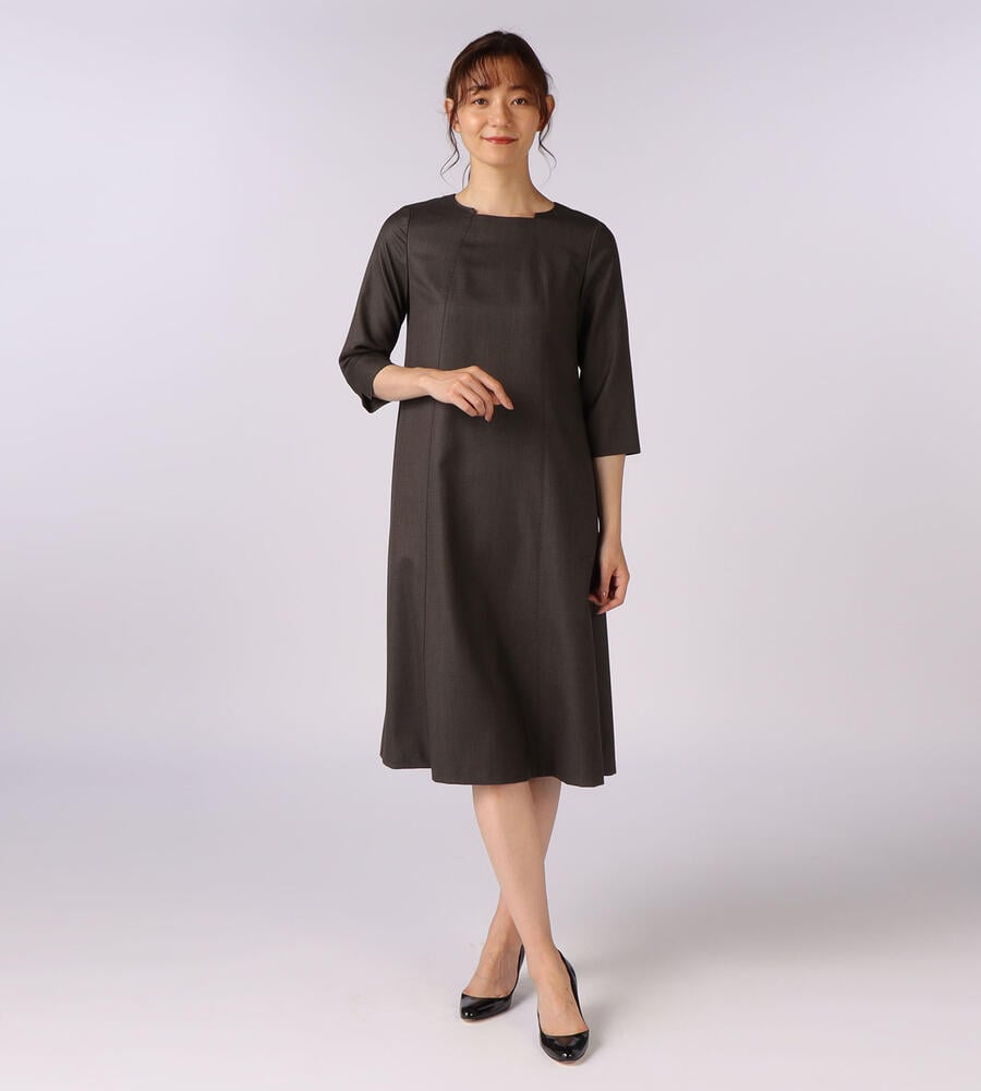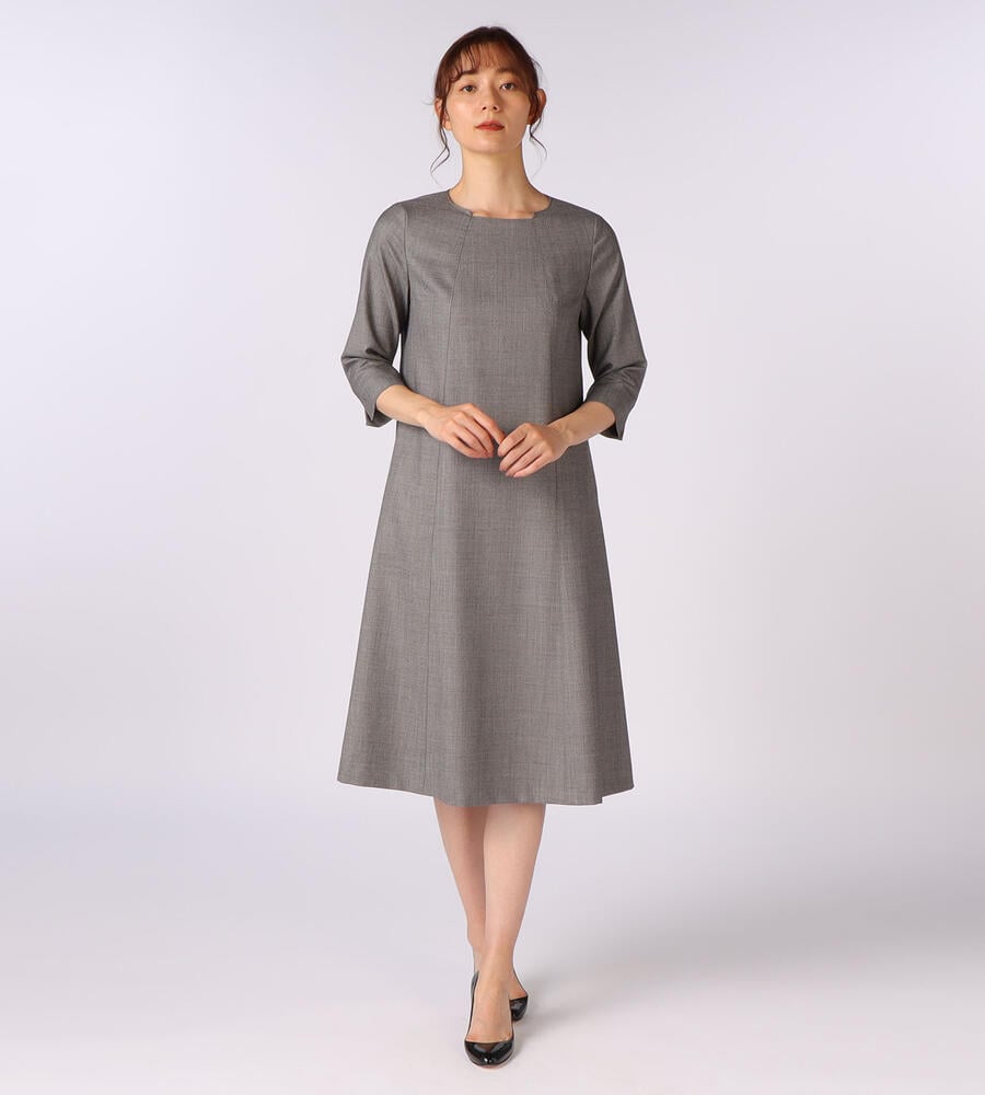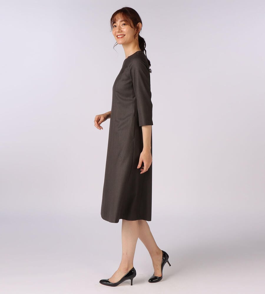 ネックラインのディテールに個性が光るウールシャンブレーワンピース。裾に向かって緩やかに広がるAラインシルエット。軽やかな丈感のスリーブは、後ろ裾にスリットがあしらわれています。同素材のジャケットとセットアップで着こなしていただけるアイテムです。