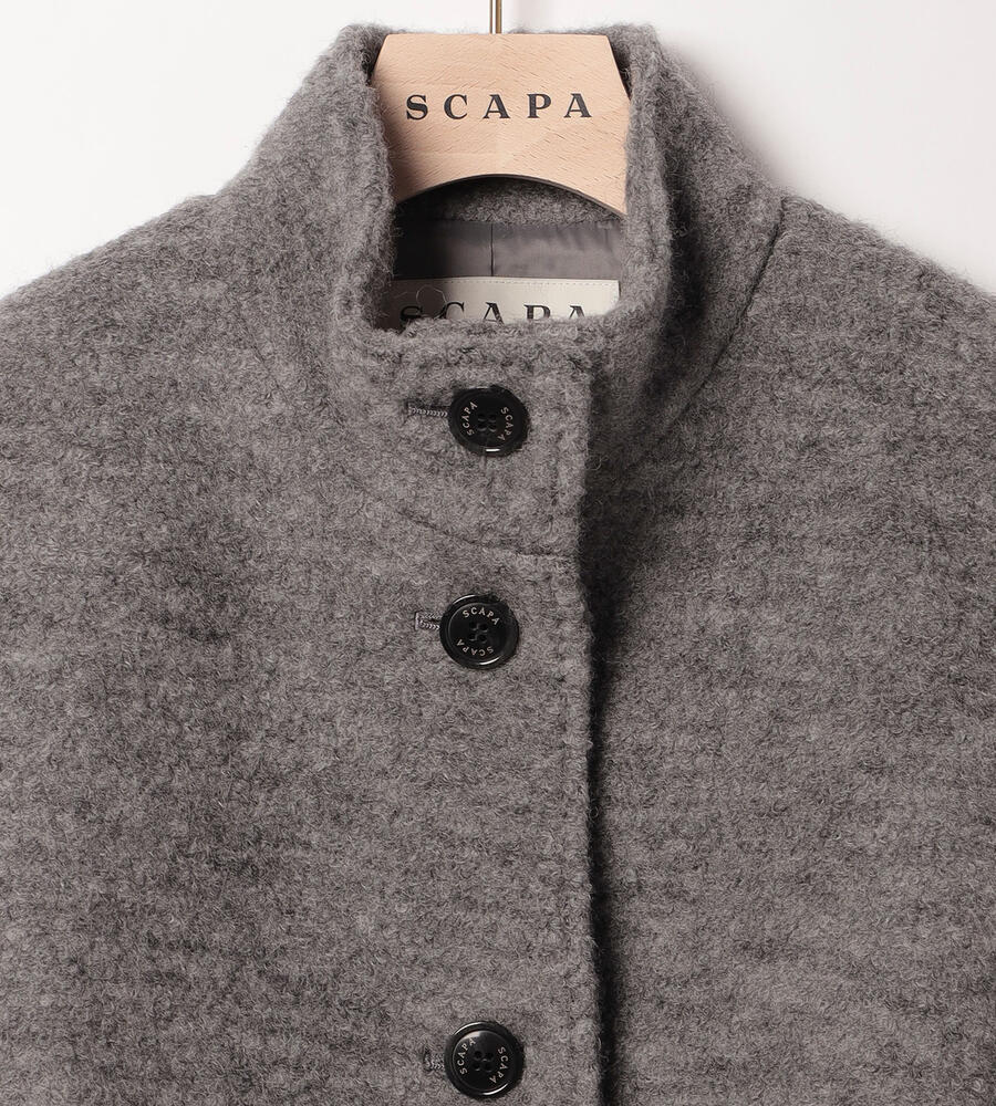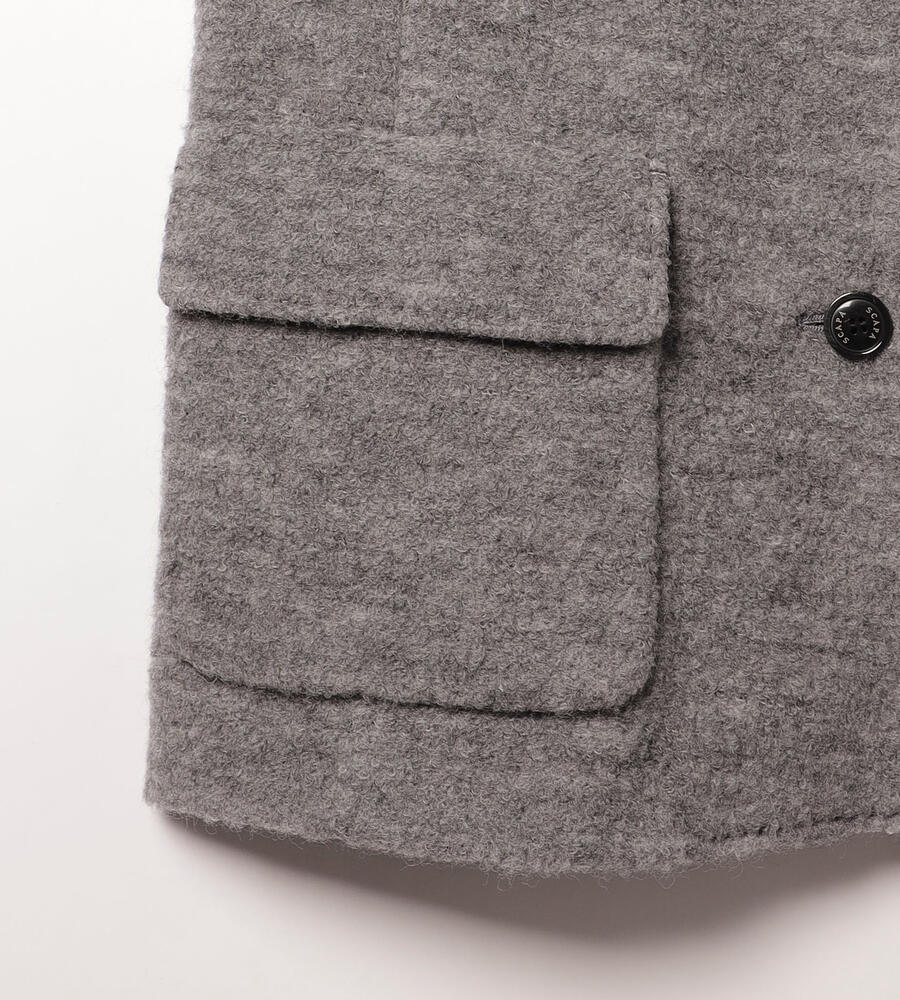 ふっくらあたたかなウールパイルで仕立てたコートです。首まわりをカバーしてくれるスタンドカラーデザイン。フロントに配置したフラップポケットがアクセントに。ボタンにはブランドロゴをさりげなくあしらっています。さらりと羽織れる軽やかな着丈がポイントです。