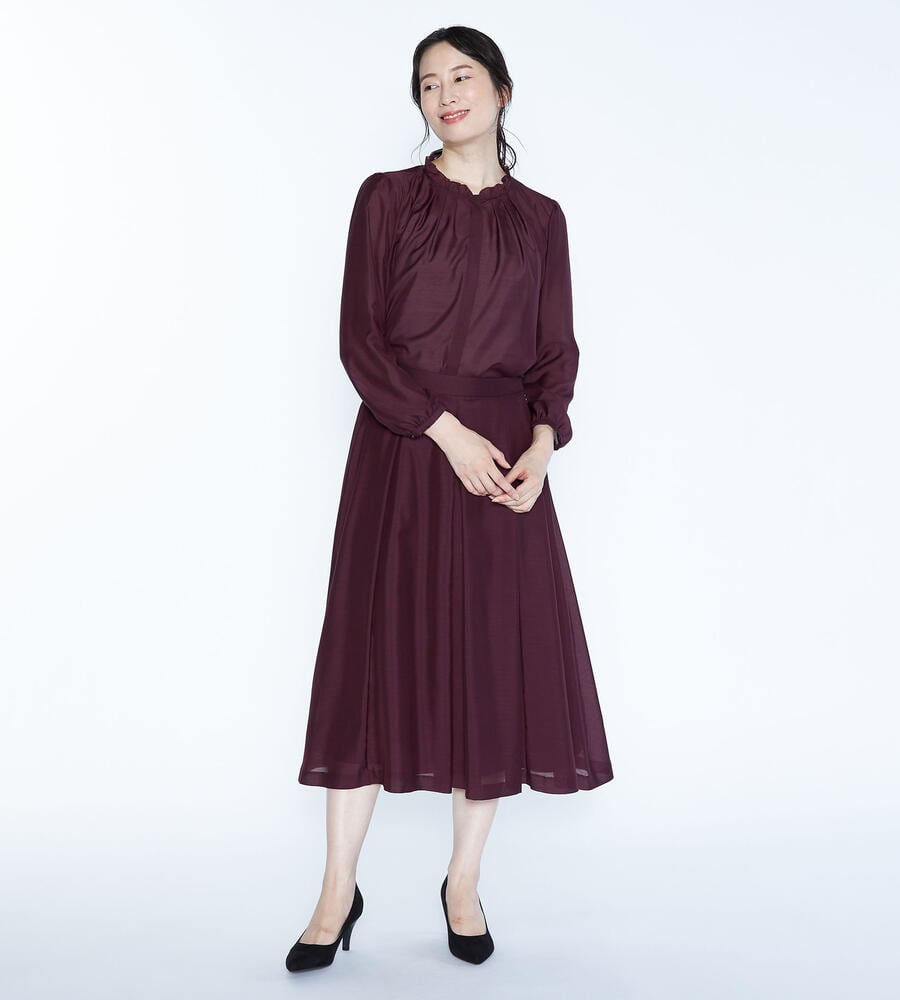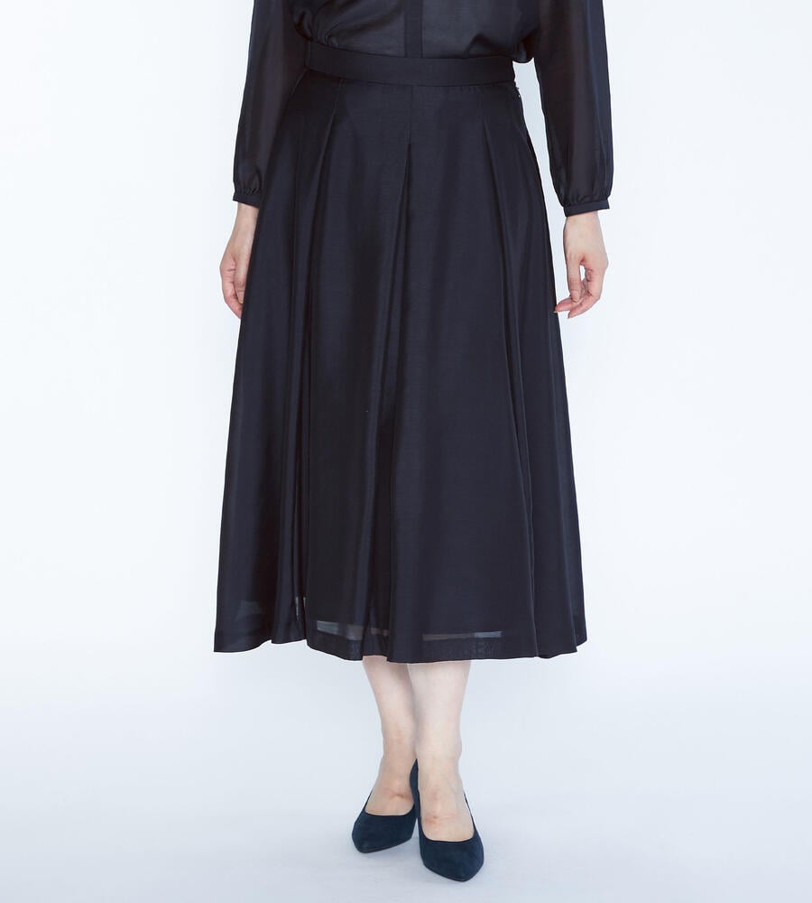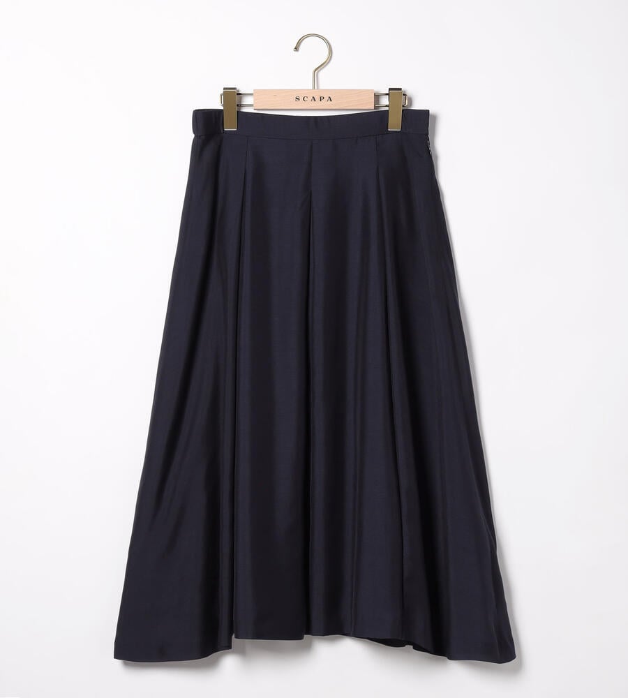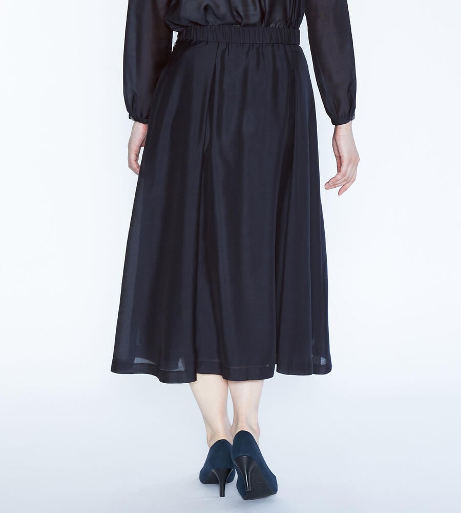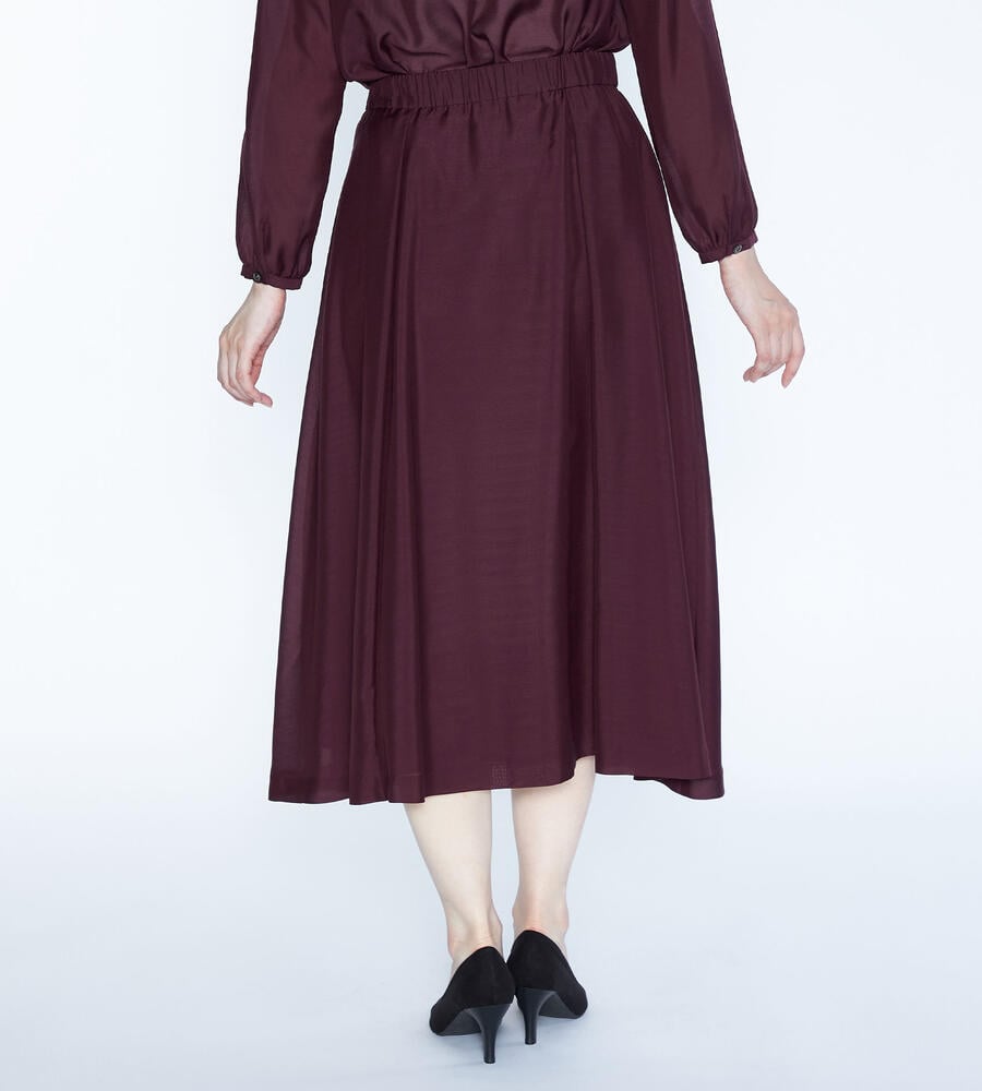 穿きこなしやすくアレンジ多彩な無地のスカート。程よいボリュームのフレアシルエットや長めの丈感は女性らしくエレガントな印象が魅力です。しなやかな風合いで揺れ感やドレープがきれいに出るのも特徴。後ろウエストにはゴムが入り、フィット感良く着用できます。デイリーコーディネートにもおすすめです。