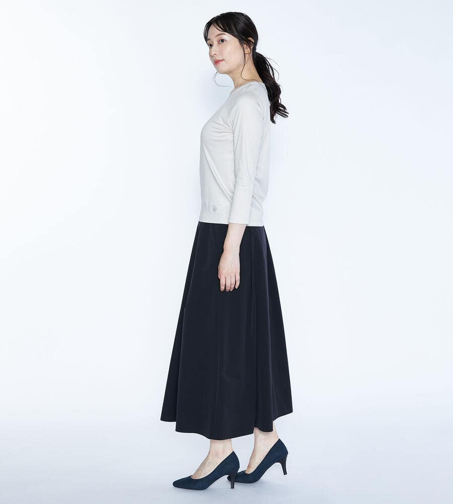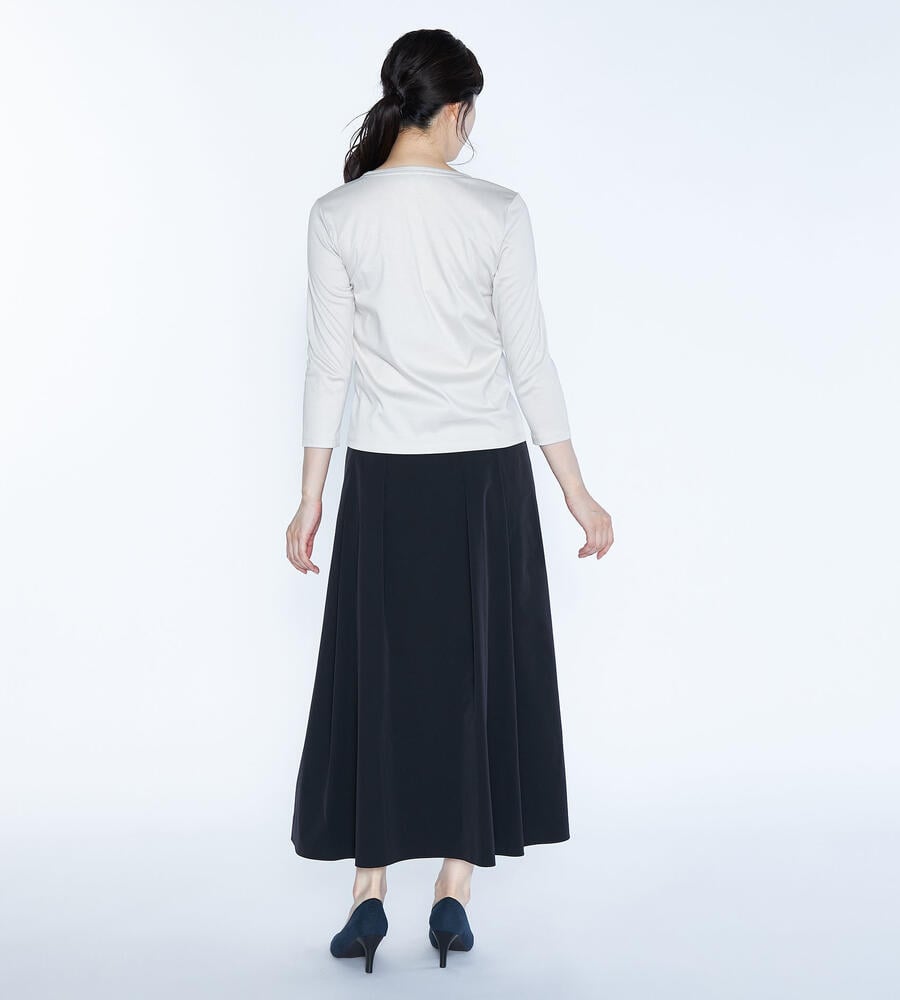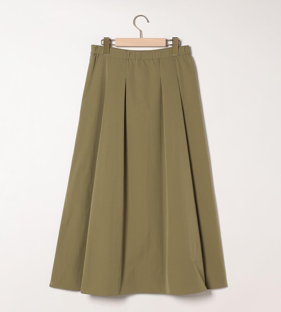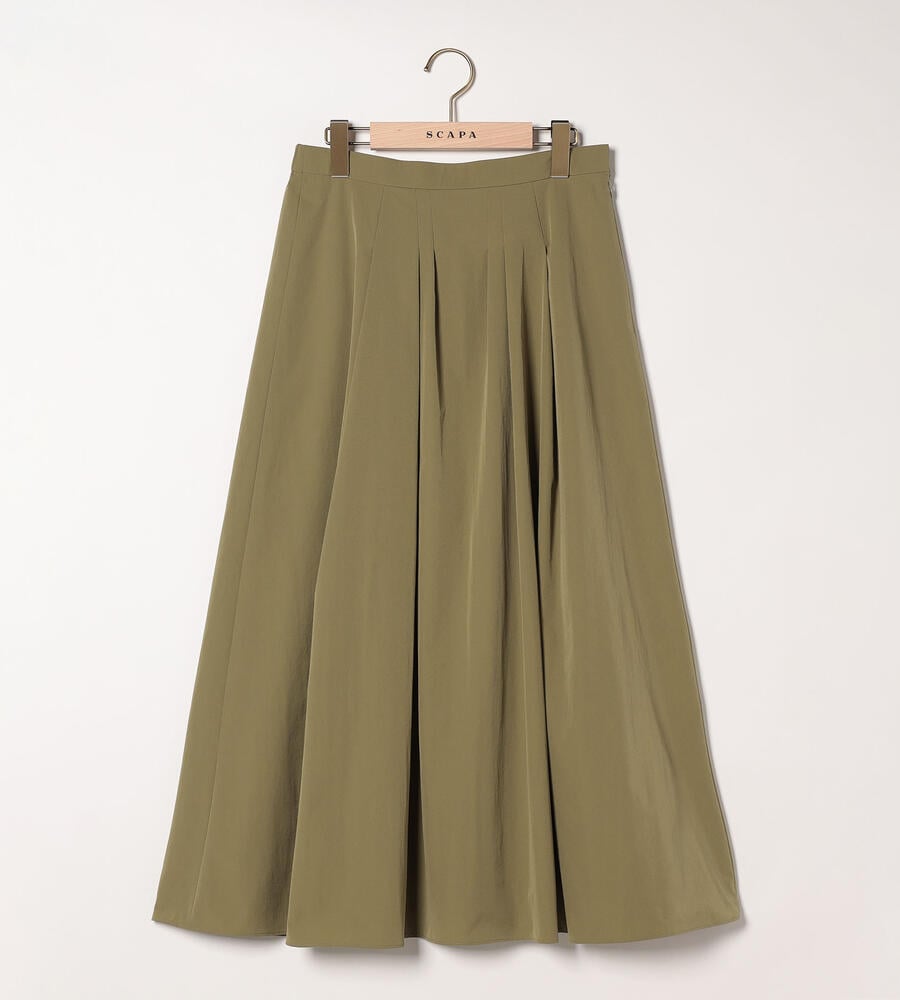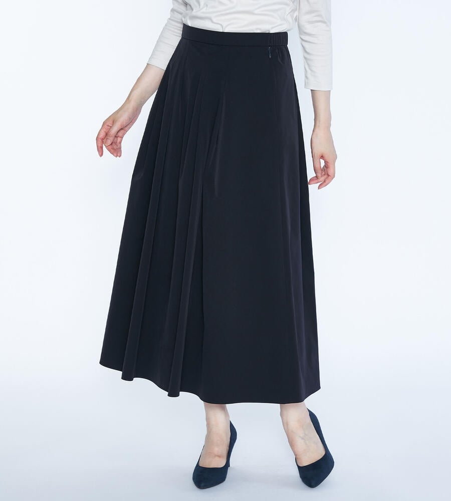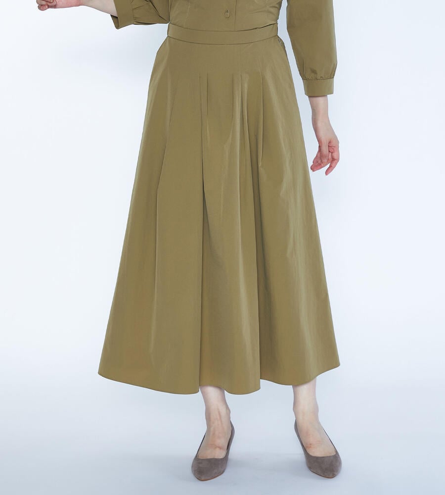 上品で適度な光沢感が魅力のタフタ生地で仕立てたスカート。生地の特徴を活かしたふわっと広がる美しいシルエットとフレアなドレープ感が魅力。きちんと感がありながら、後ろウエストはゴム仕様で履き心地快適。お手持ちのトップスに合わせて、レディなムードのコーディネートが完成するアイテムです。