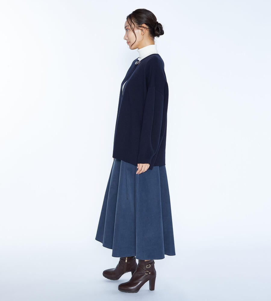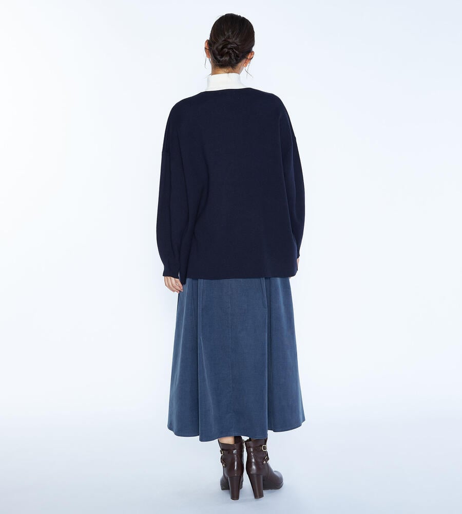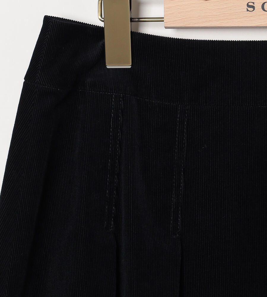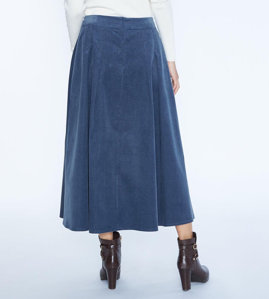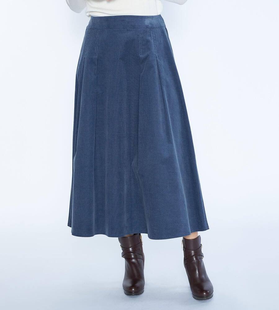 こっくりとした色使いに光沢感、そして温もりを感じさせる起毛感を併せ持つコーデュロイ素材を用いたスカート。ウエスト直下にプリーツを添えて、優雅なフレアが広がるシルエットに仕立てています。足首に届く程度の長めの着丈でも、軽やかな動きで重く見えないのが特徴。足元にブーツを合わせると、よりバランスの取れた着こなしを楽しめます。
