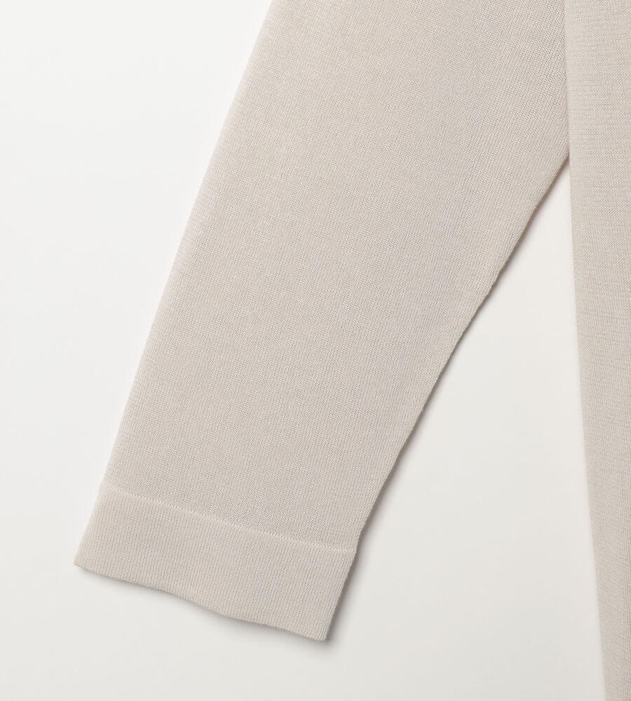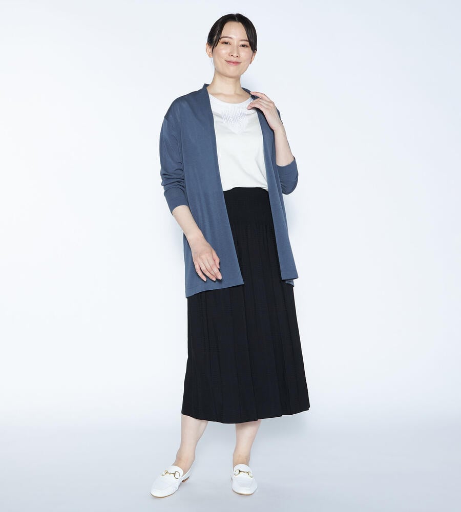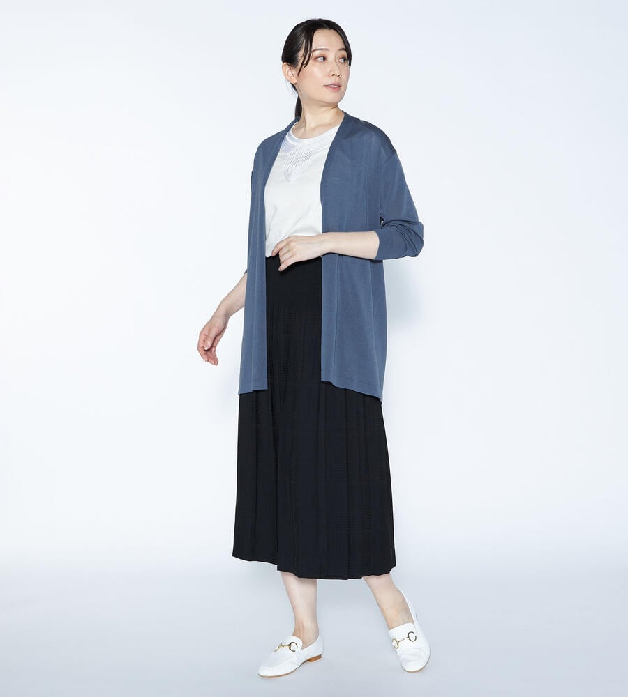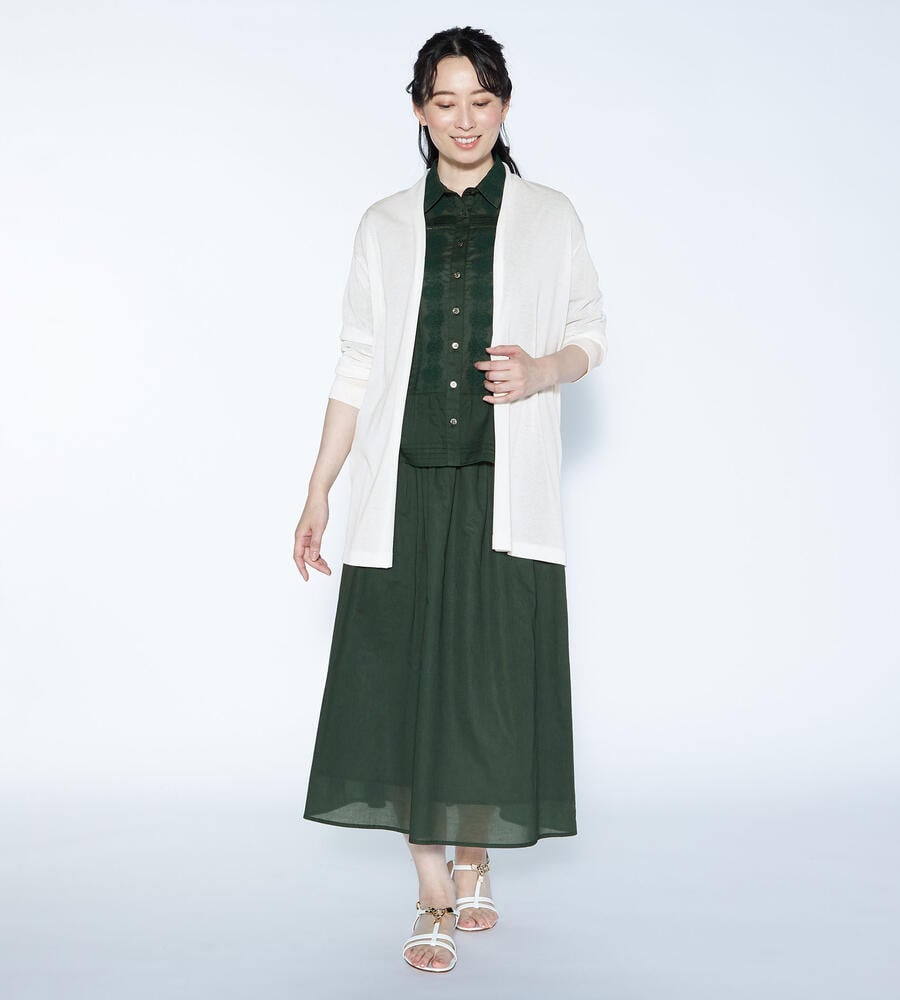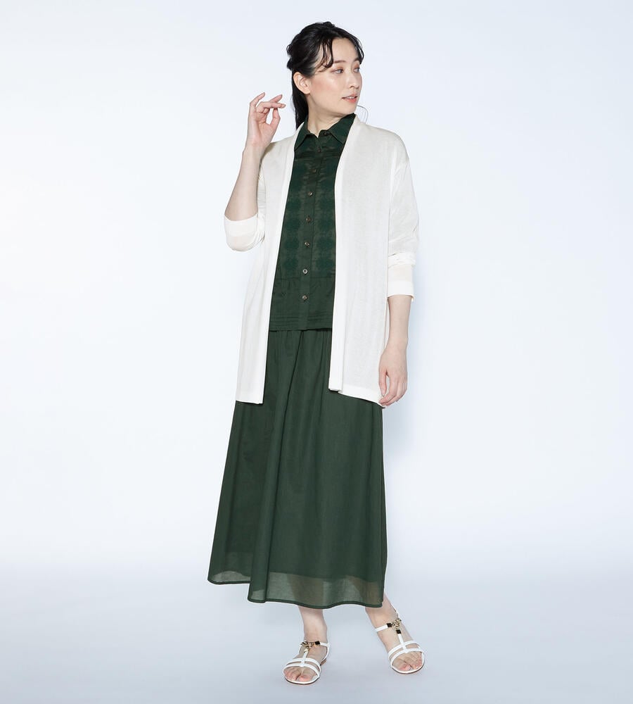 コットン混合生地で春夏らしいさわやかな素材感のニットカーディガン。ほどよい光沢感がエレガントなムード。シンプルなデザインで、様々なスタイリングとマッチ。ロング丈で軽い羽織としても活躍する一枚です。ほんのり透け感がある軽やかなムードの生地感で、おしゃれな重ね着コーディネートが実現します。