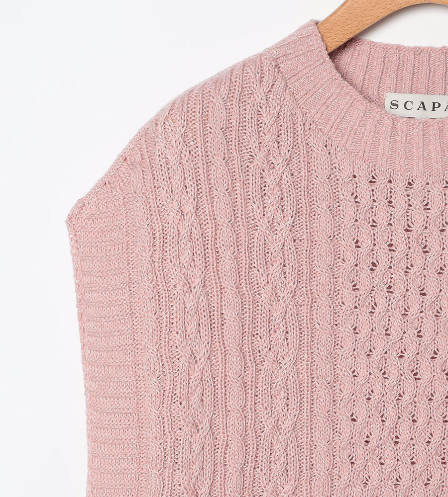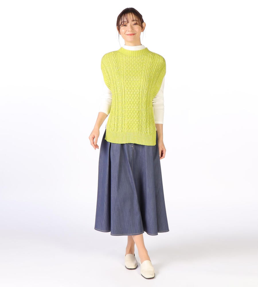 おしゃれな重ね着コーディネートが完成するノースリーブニット。ケーブル編みが着こなしに暖かみのあるアクセントを与えます。サイドのスリットが今年らしいデザインディティール。お手持ちのトップスを合わせてトレンド感ある着こなしに。インナーアイテム次第で異なる印象を楽しめ、着こなしの幅が広がるアイテムです。