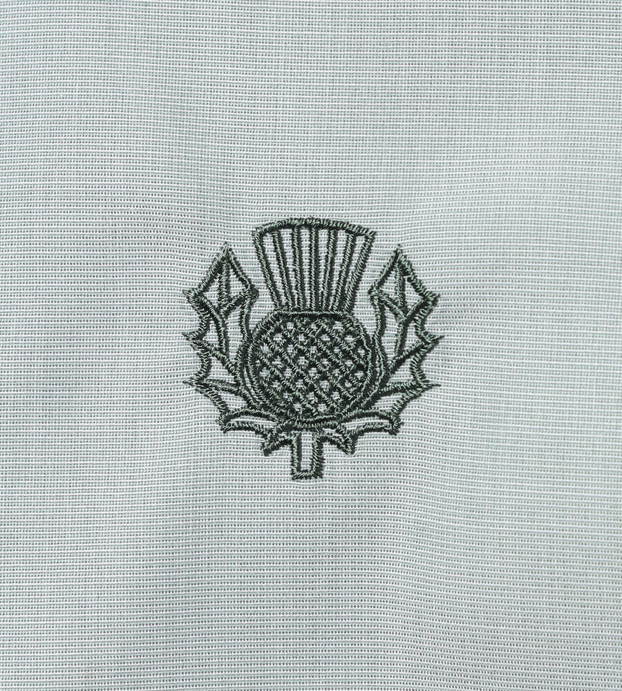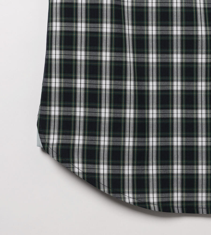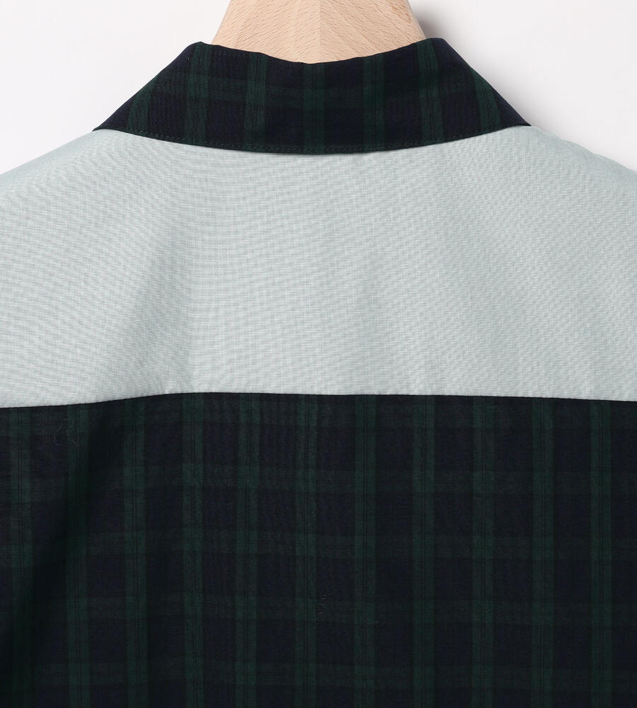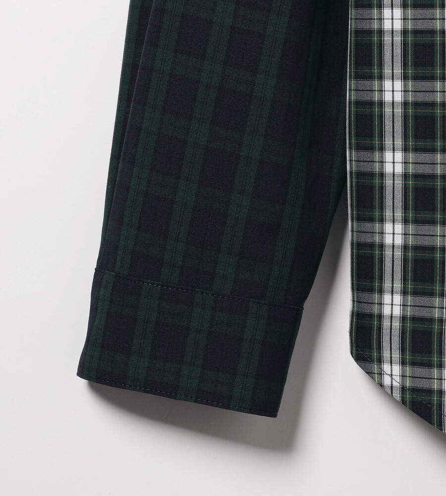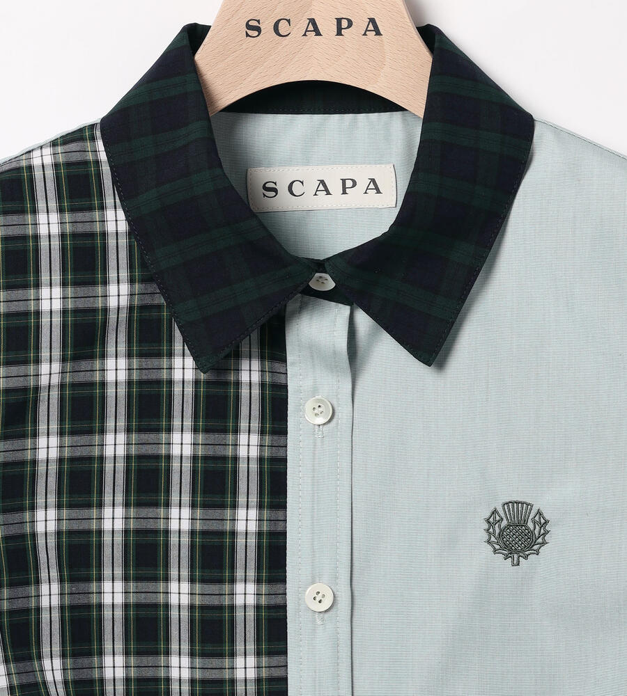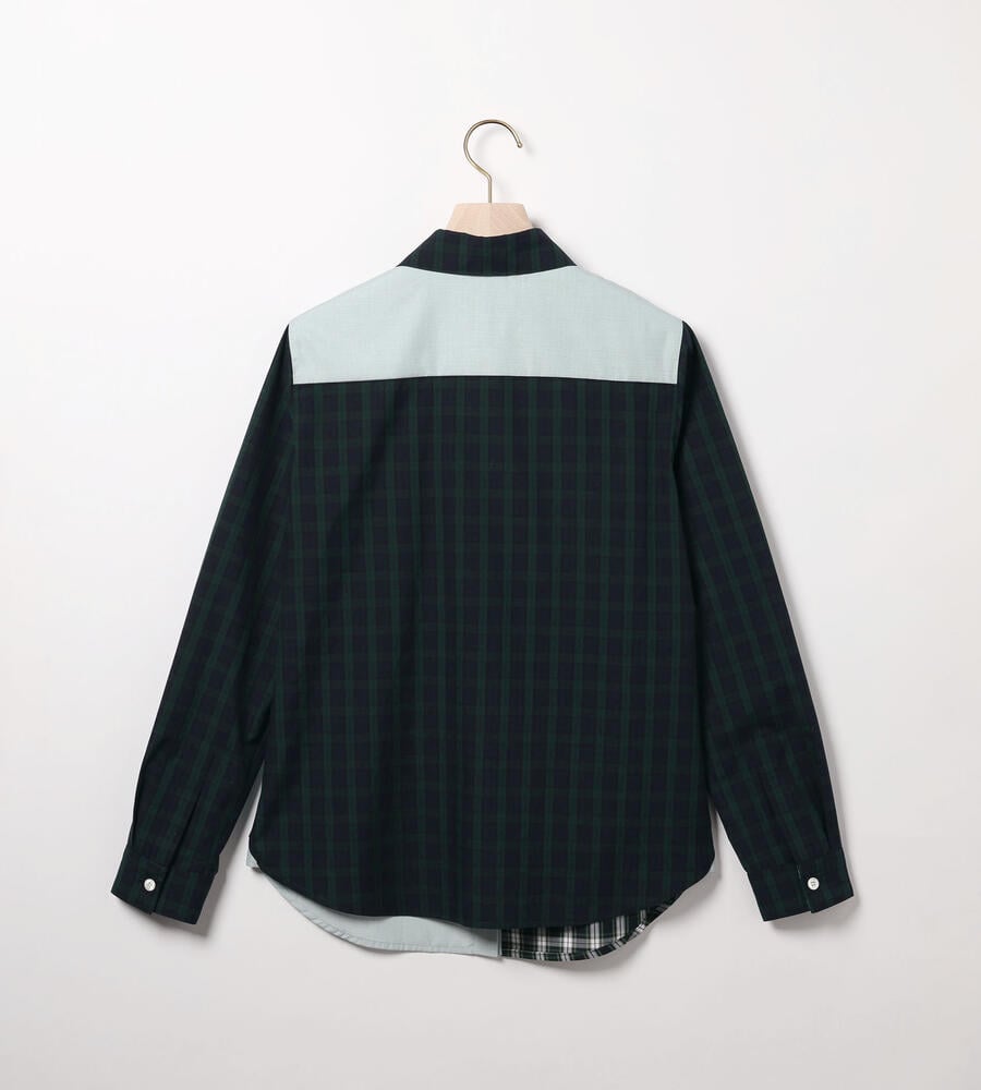 種類の異なるチェック柄や無地も交えた、クレイジーパターンのパッチワークシャツ。シンプルなレギュラーカラーに、立体感のあるプラケットフロントを組み合わせました。女性のからだのラインに自然に沿うよう、前身頃にはダーツを施しています。左胸のクレスト刺繍が、高級感を与えるワンポイントです。全方向からのルックを楽しめるアイテムは、シンプルな一枚着に最適。