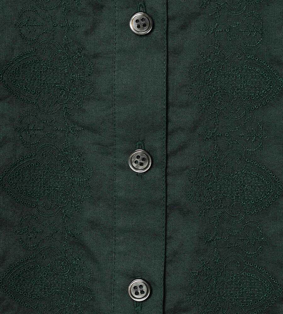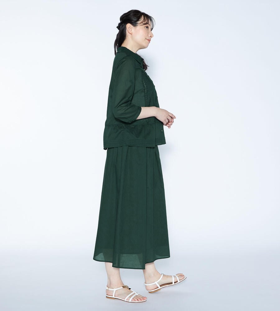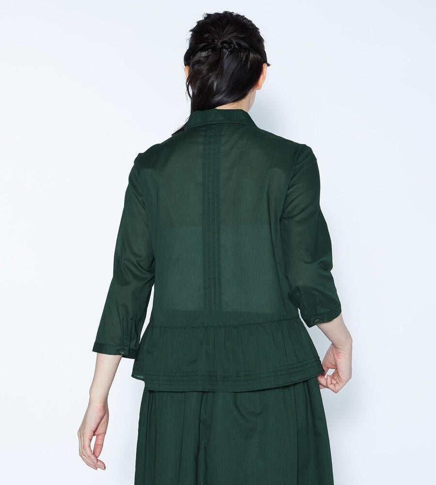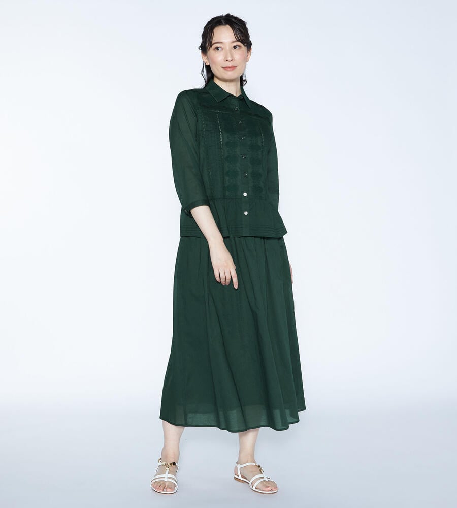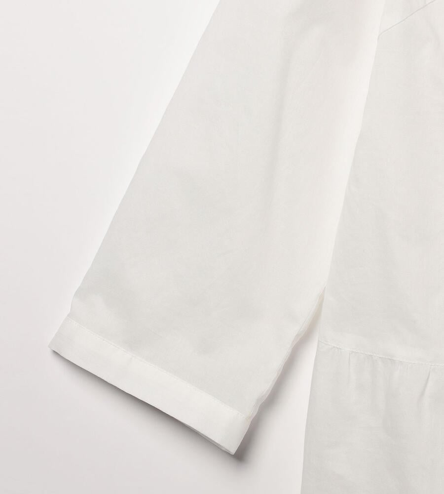 薄手の素材で春夏らしい軽やかなムードのコットンローン生地で仕立てた七分袖ブラウス。刺繍、タック、裾フレアのデザインがエレガントなデザインポイント。ほどよいハリ感と光沢感のある生地で、美しいシルエットを実現。透け感のある生地で、おしゃれな重ね着コーディネートが実現するアイテムです。
