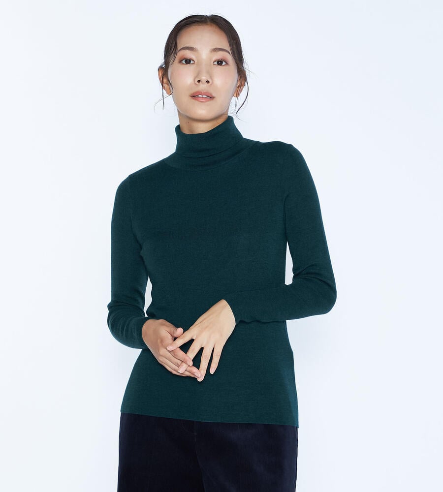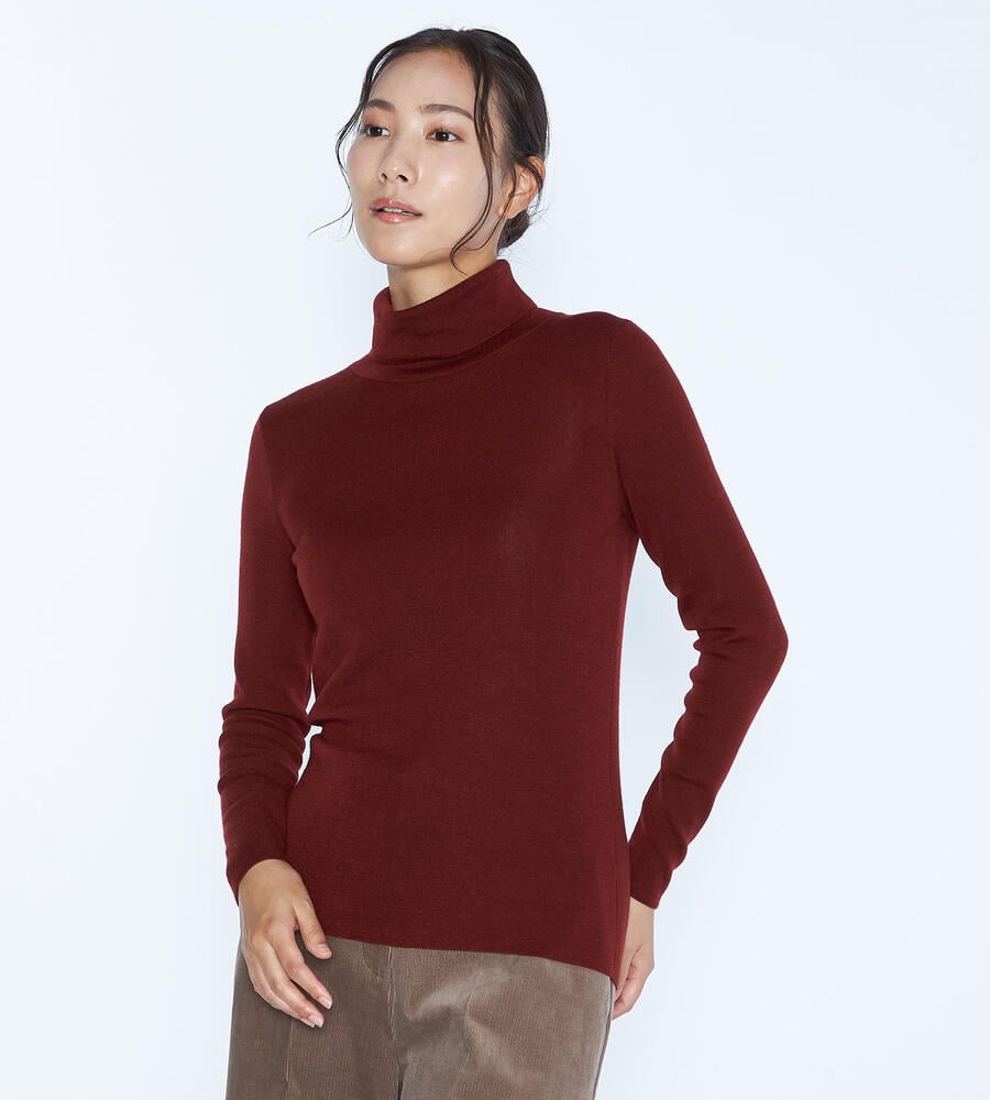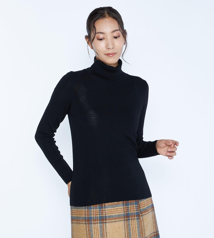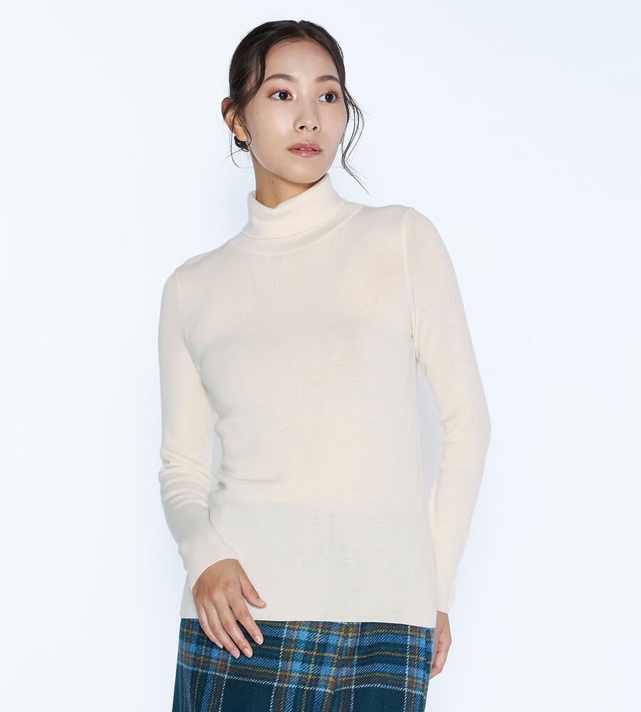 ウール100%素材で仕立てた、秋冬シーズンに最適な長袖ハイネックニット。引き続きトレンドのリブ編み仕様で、身体に適度に調和するすっきりとしたスリムフィットのシルエット。一枚で着るのはもちろん、ジャケットなどにも合わせやすく、重ね着や様々なコーディネートで活躍する便利なアイテムです。