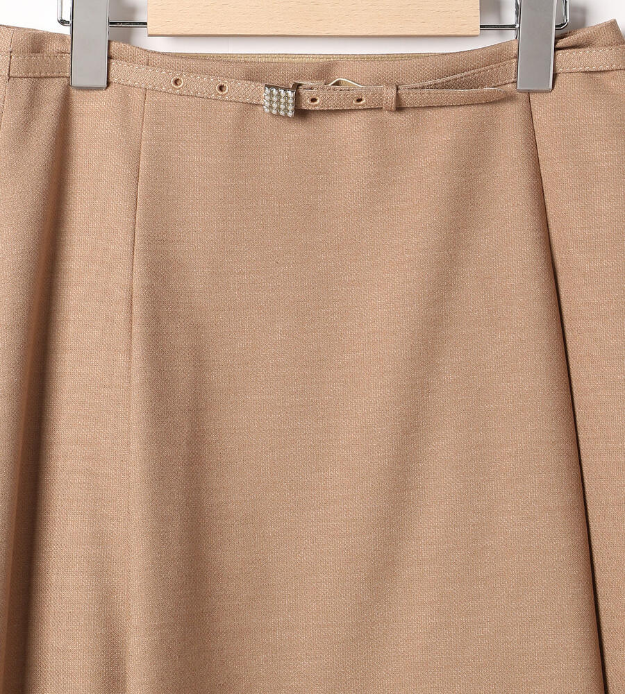 シンプルで洗練された無地カラーのフレアスカートです。表面感のあるストレッチ生地を使用しており、上品な印象と快適さをあわせもった一枚です。着脱式の共布ベルトやタックによるドレープラインも女性らしい雰囲気。合わせるトップスを選ばず、幅広い季節のさまざまなコーディネートに重宝します。