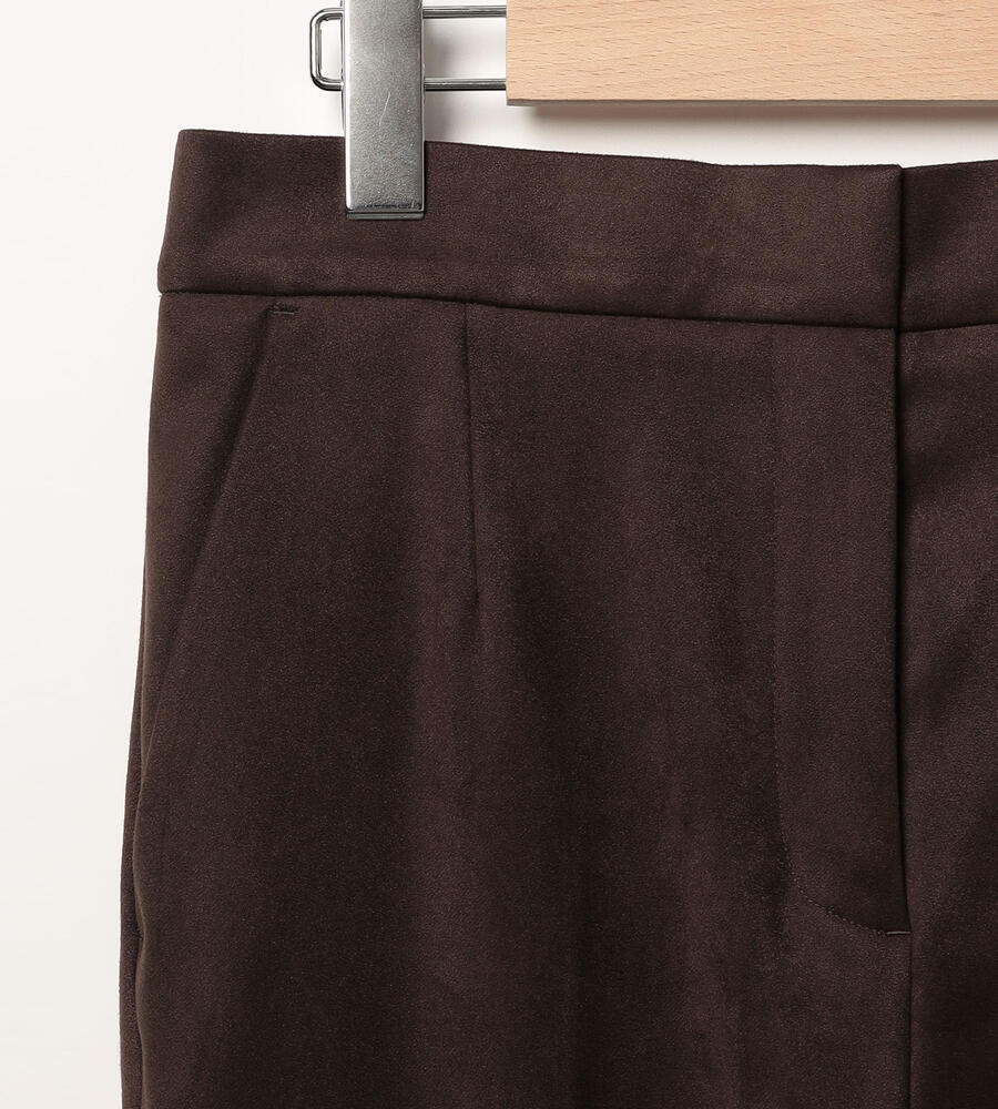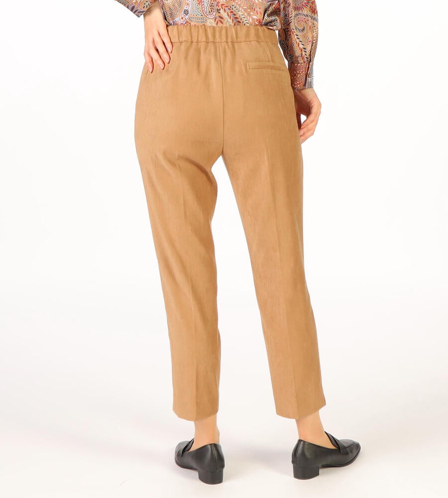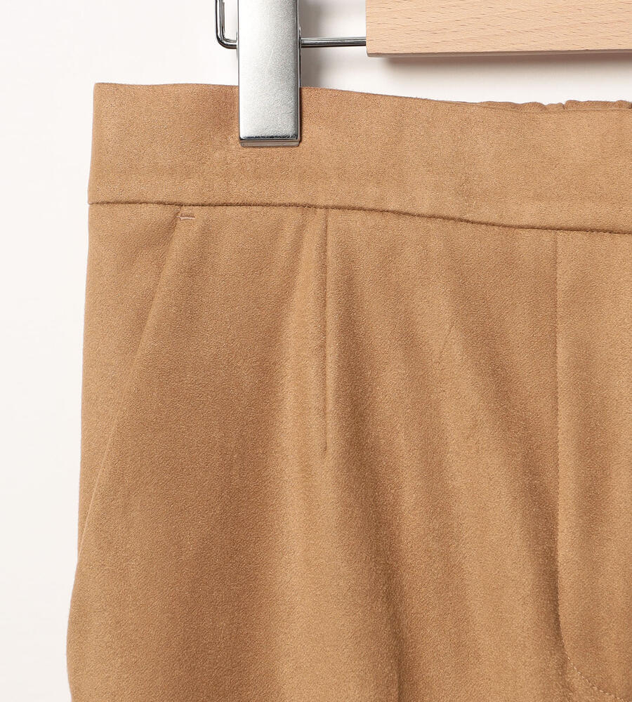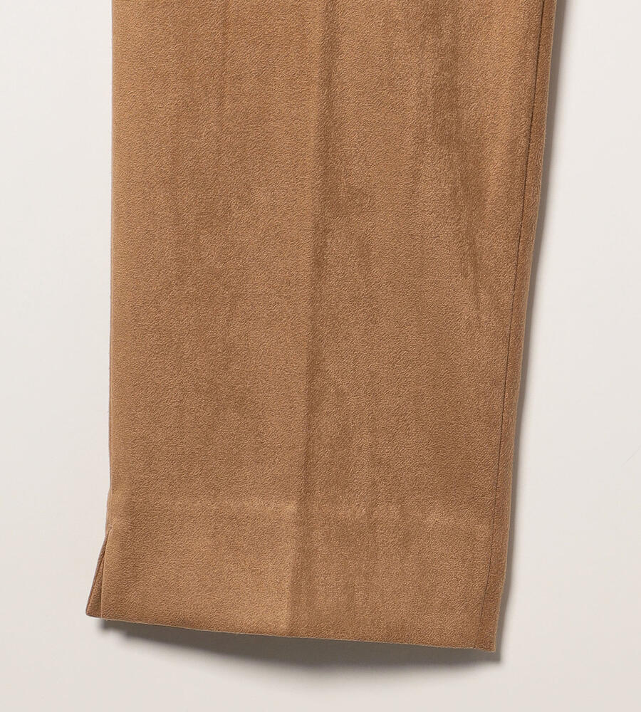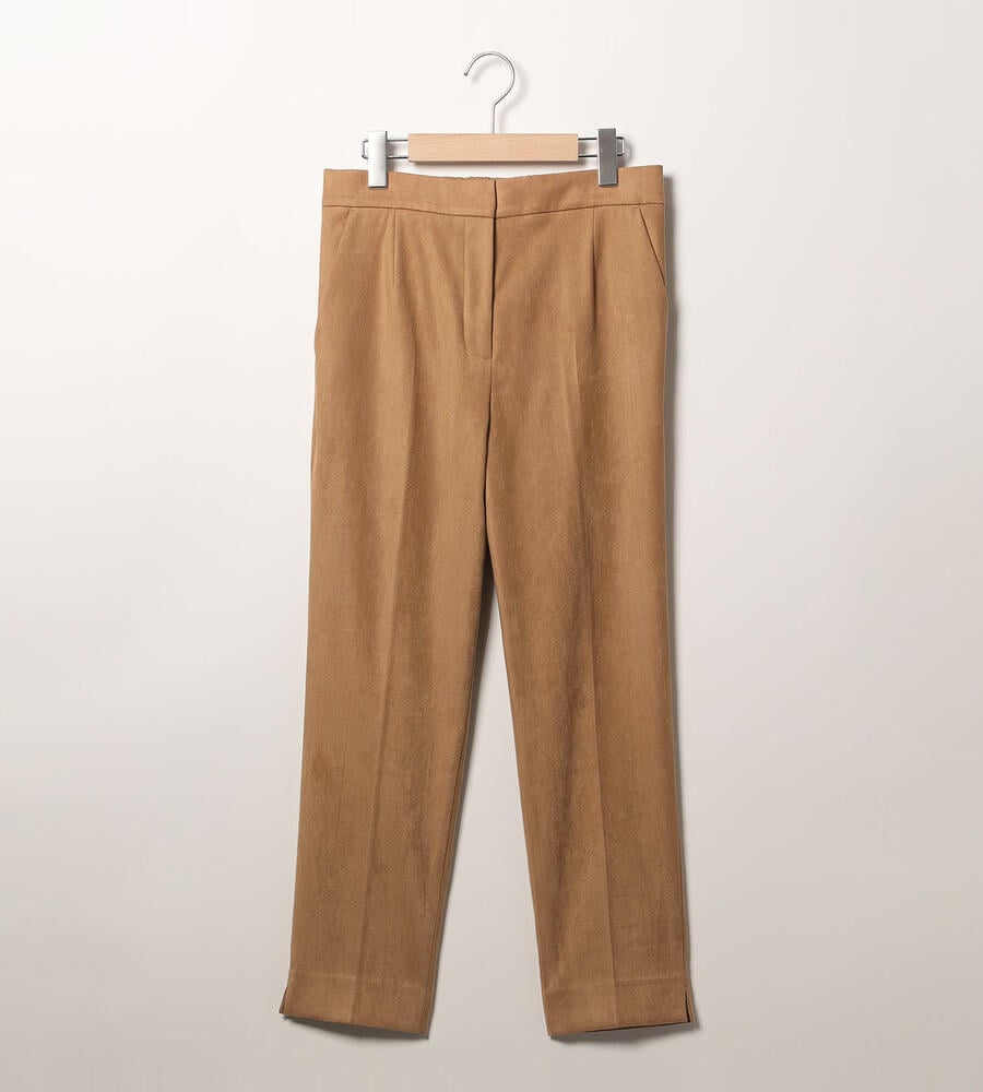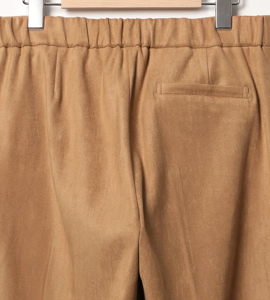 シーズンムードを高める上品な素材感のソフトスエード調パンツ。裾に向かってスリムになるテーパードシルエット。足首の見える軽やかな丈感はシューズとのバランスが取りやすくおすすめです。サイド、バックにポケットを配置。ウエストがゴム仕様になっているためリラックスして着こなしていただけます。