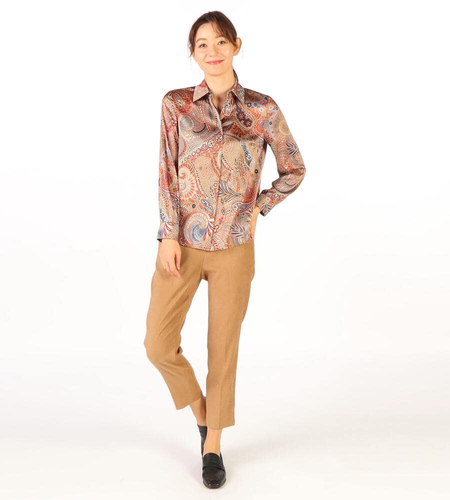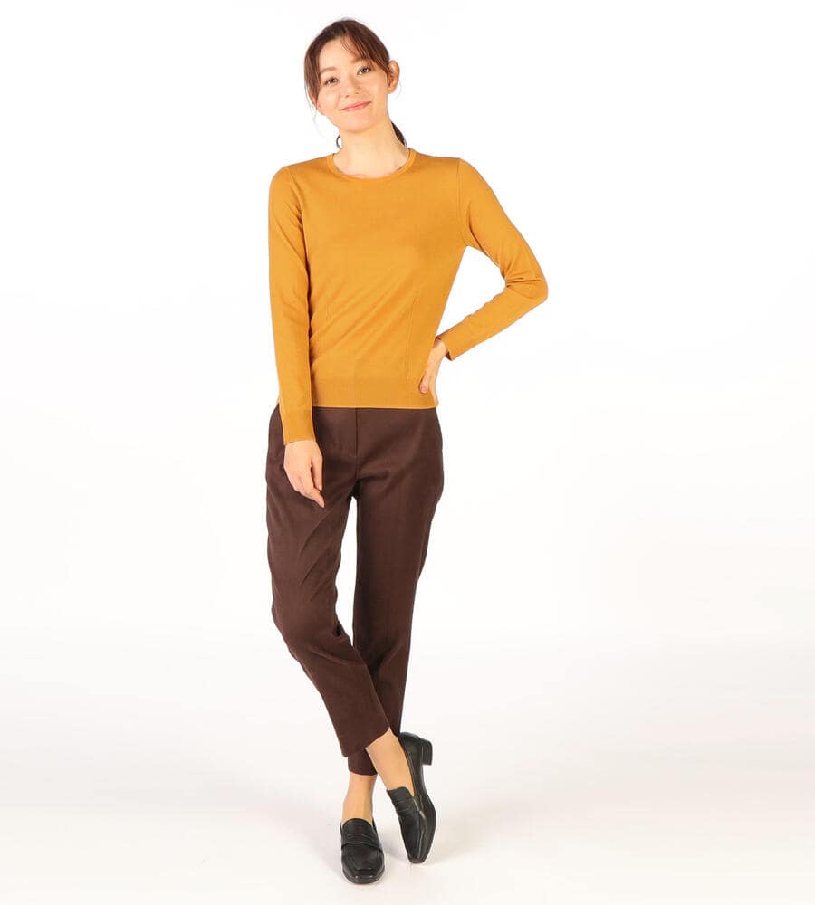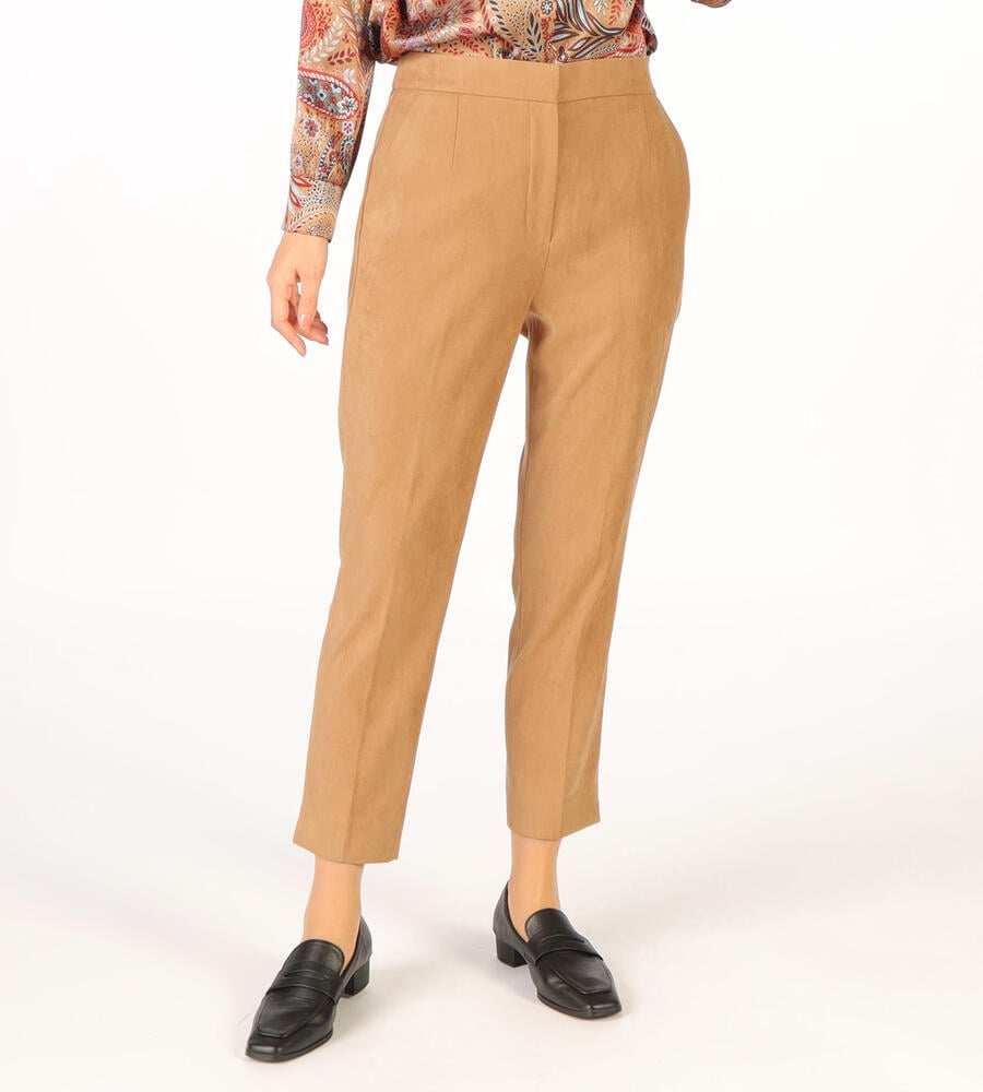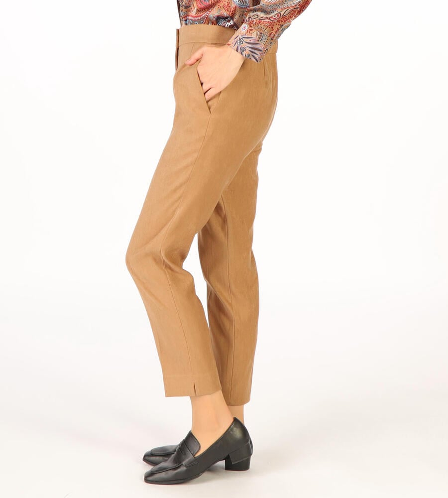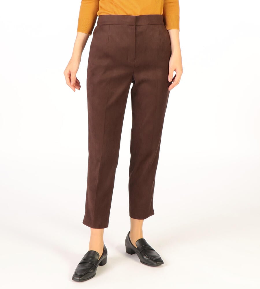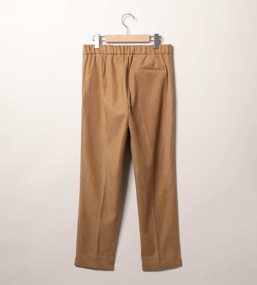 シーズンムードを高める上品な素材感のソフトスエード調パンツ。裾に向かってスリムになるテーパードシルエット。足首の見える軽やかな丈感はシューズとのバランスが取りやすくおすすめです。サイド、バックにポケットを配置。ウエストがゴム仕様になっているためリラックスして着こなしていただけます。