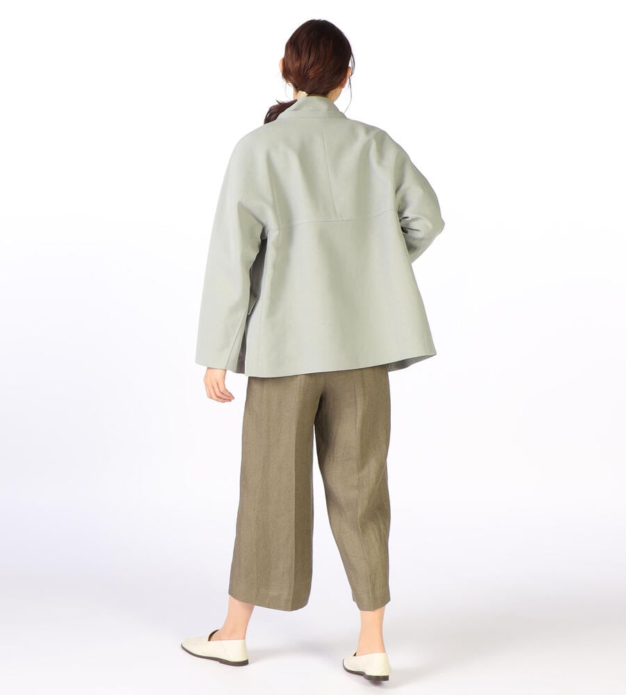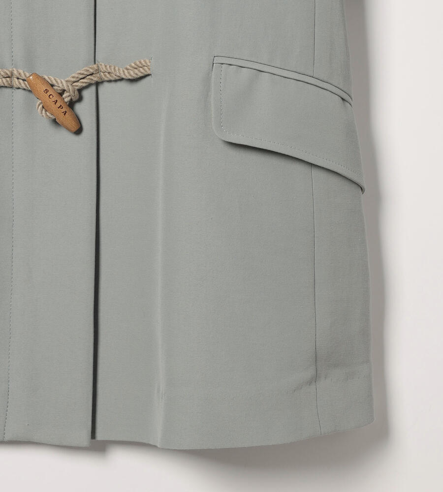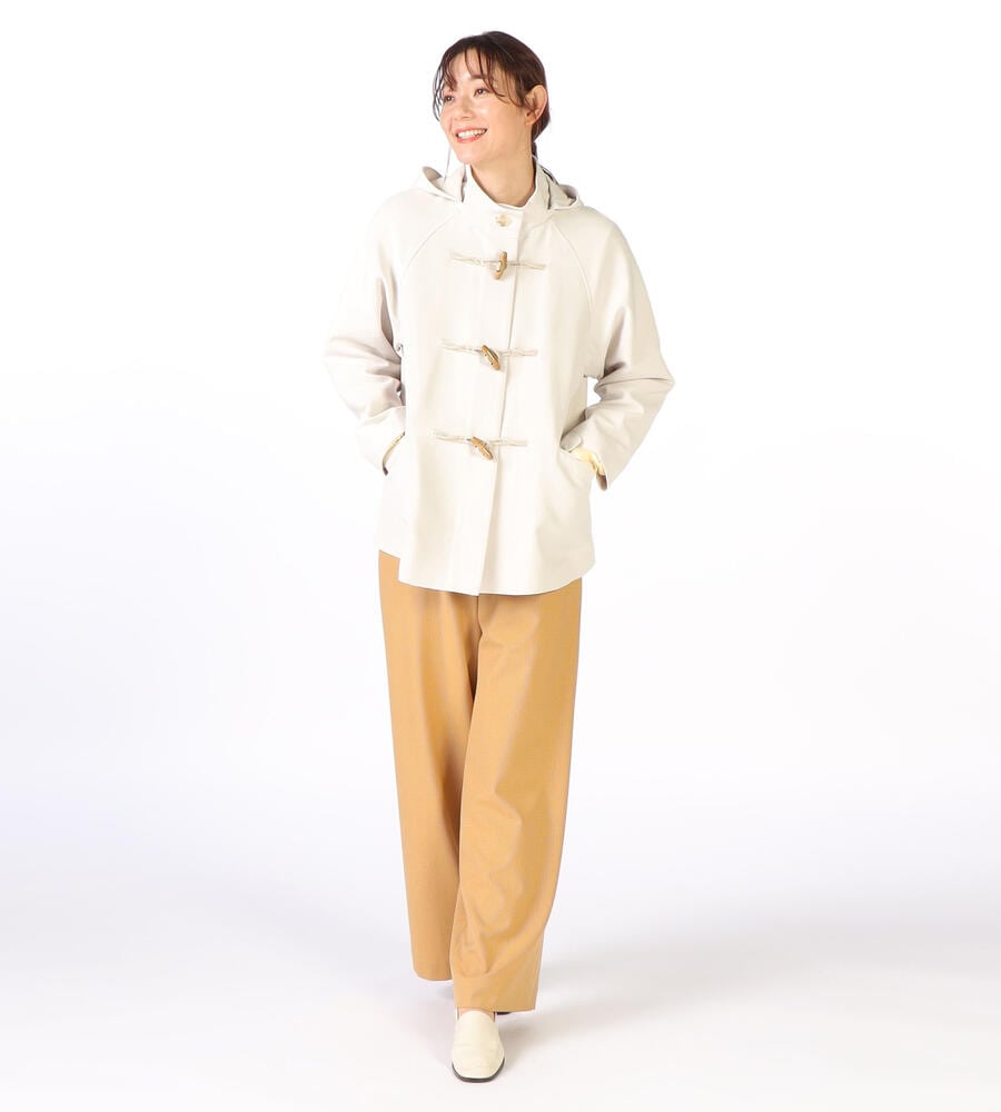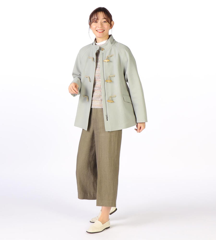 ダッフルコートをアレンジしたスタイリッシュなデザインの一枚。取り外し可能なフード付きで、フード付き・無しと、異なる印象の着こなしが楽しめます。少しフレアで、オーバーサイズなシルエットが今年らしいデザインポイント。様々なアイテムになじむ、さわやかなカラーで、毎日の着こなしで活躍するアイテムです。