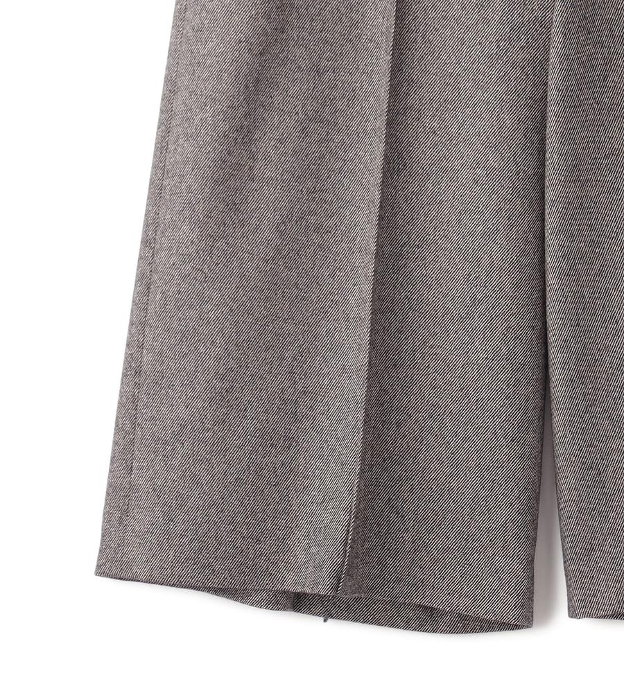 ハリ感がありシックでクラシカルなムードのあるツイルツィード生地で仕立てたミディ丈パンツ。引き続きトレンドのワイド幅のシルエット。センタープレス加工できちんと感のある印象を演出。ウエスト後ろ部分はゴム仕様で履き心地快適。お手持ちのトップスと合わせて、スタイリッシュなコーディネートが実現します。
