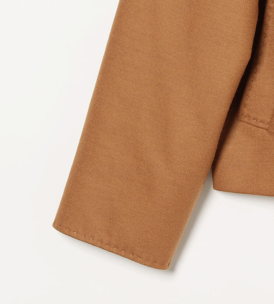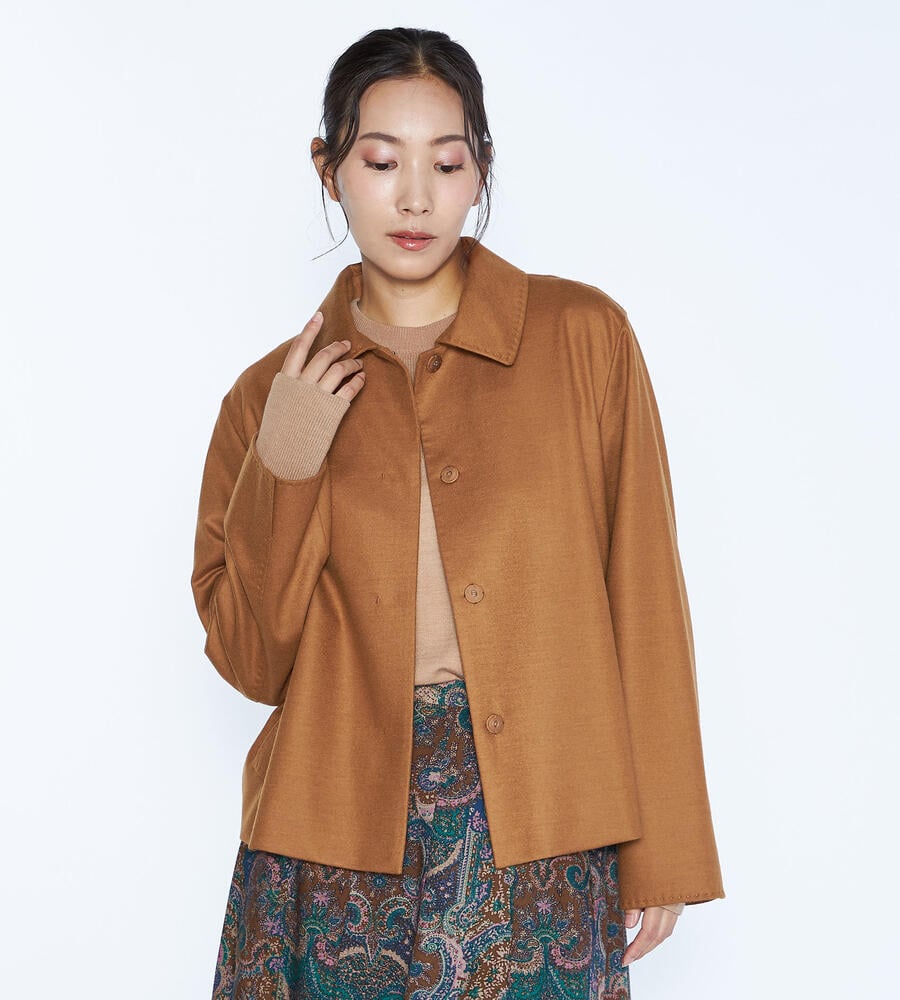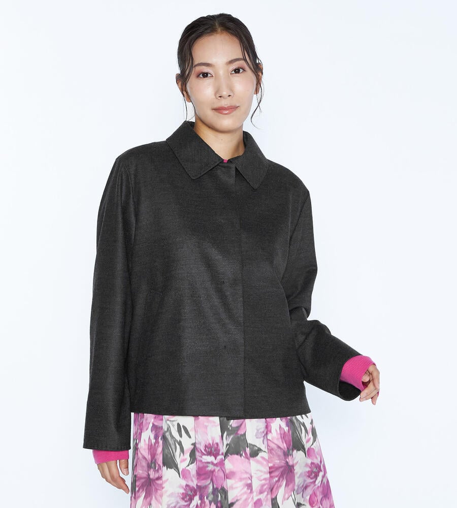 程よい光沢感のある毛とナイロンのブレンド素材で仕立てた衿つきジャケット。フロントは表から見えないスナップボタン仕様ですっきりとしたルックスに仕上げています。衿や袖口にあしらったステッチワークがさりげないポイントに。さらりと羽織れるライトなアウターは季節の変わり目から活躍します。