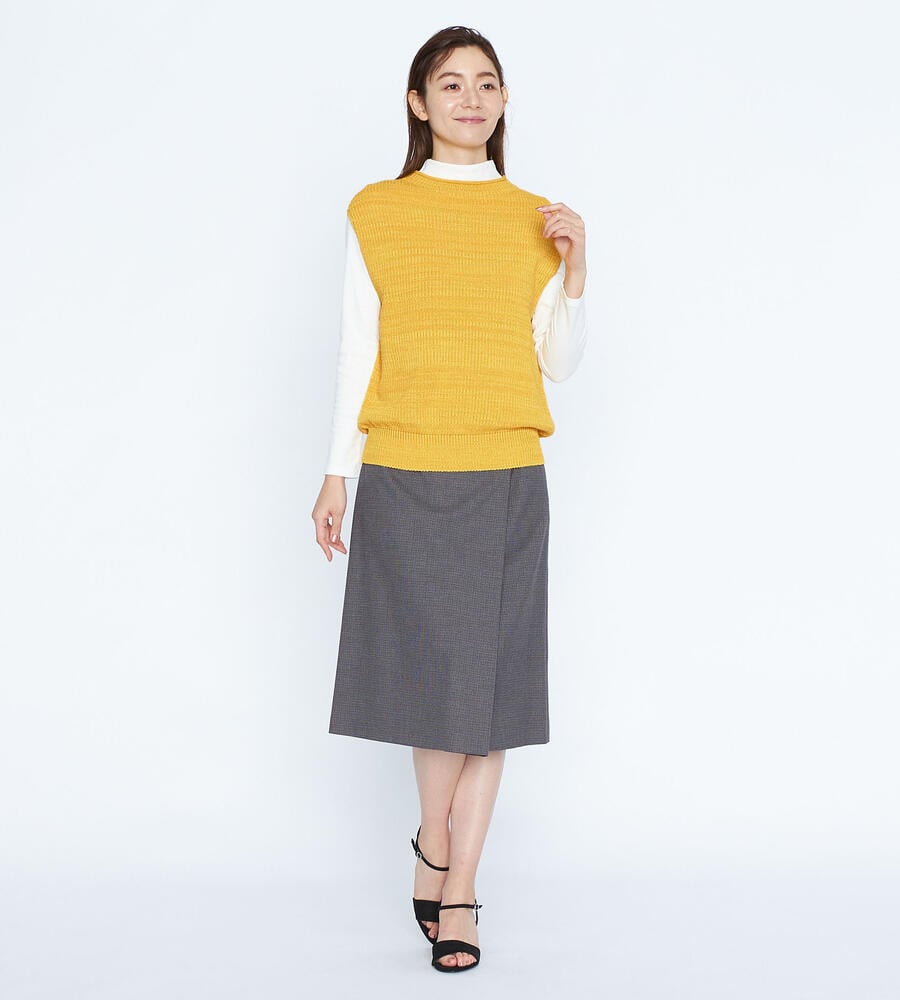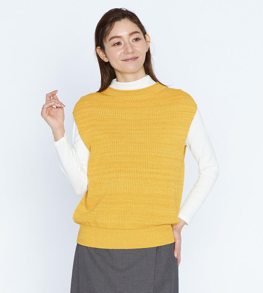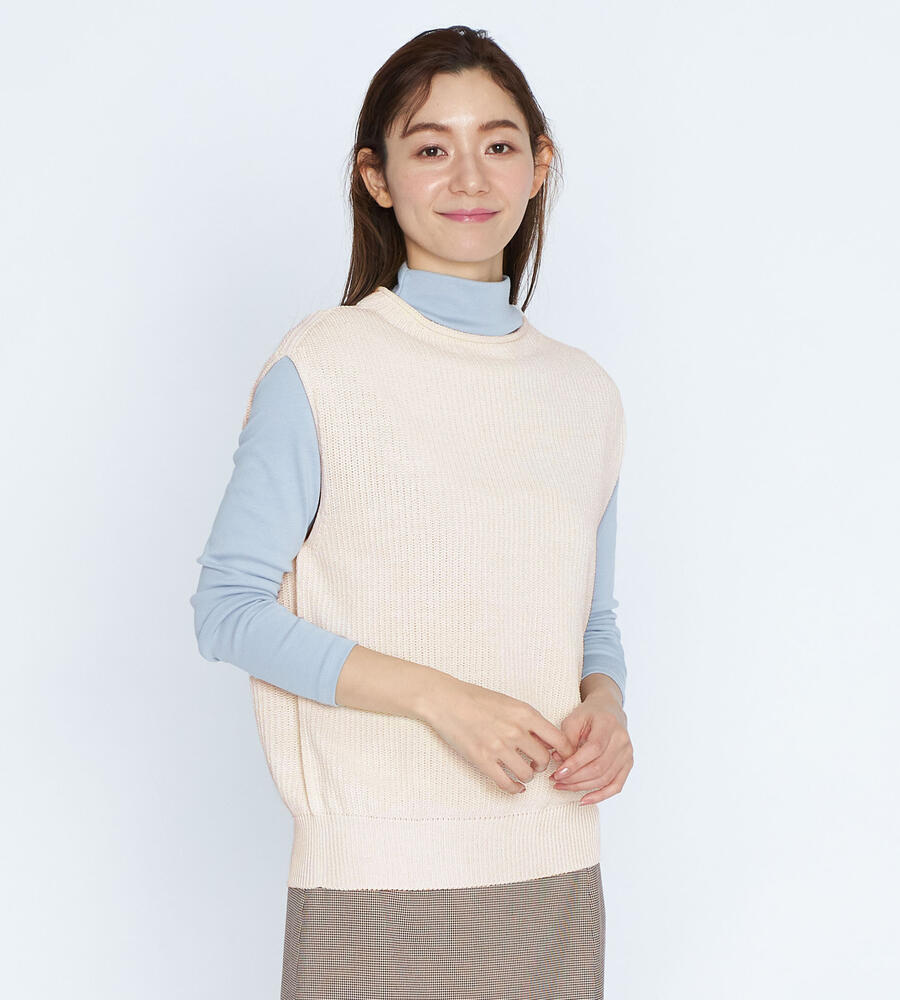 ニュアンスカラーが美しいニットベスト。裾はシルエットにメリハリを与えるリブ編みを採用。コーディネート次第で、カジュアルにもシックにも着こなせるシンプルなデザイン。ビジネスシーンにはブラウスを合わせて、デイリーユースでは長袖カットソーと重ね着等、コーディネートの幅が広がるアイテムです。