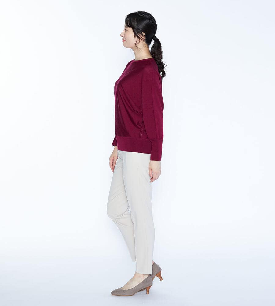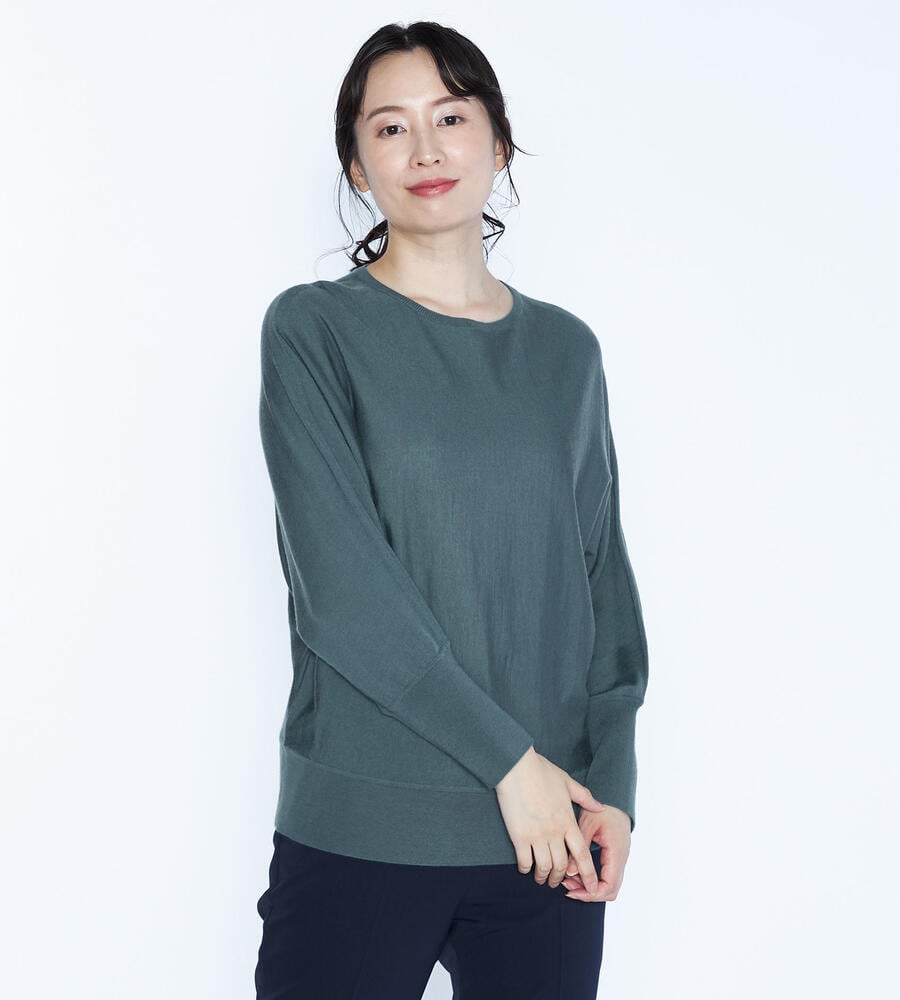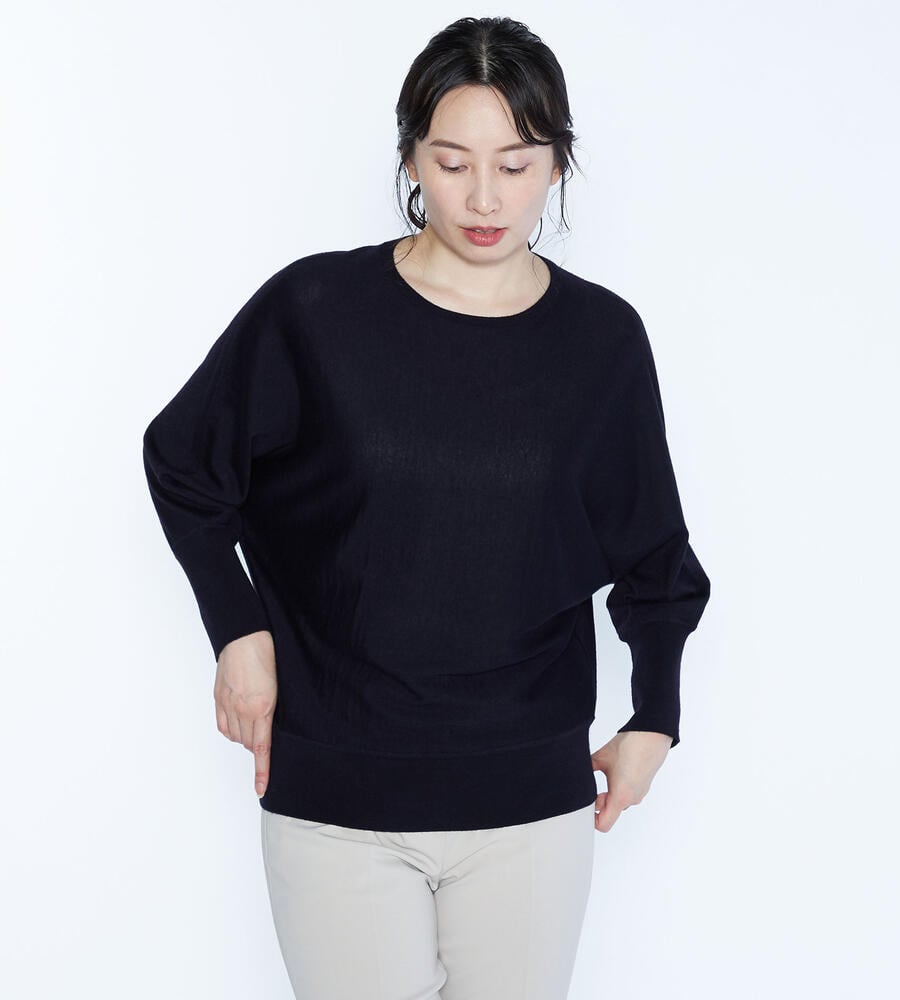 さりげない光沢感が美しい、ブラッキーニットプルオーバー。シンプルな中にも大人の余裕を感じられる上質なアイテムです。肌触りの良い毛100%素材を採用。ゆったりとしたシルエットが心地良く、大人のカジュアルシックな装いにフィットします。袖先のロングリブ切り替えもポイントです。